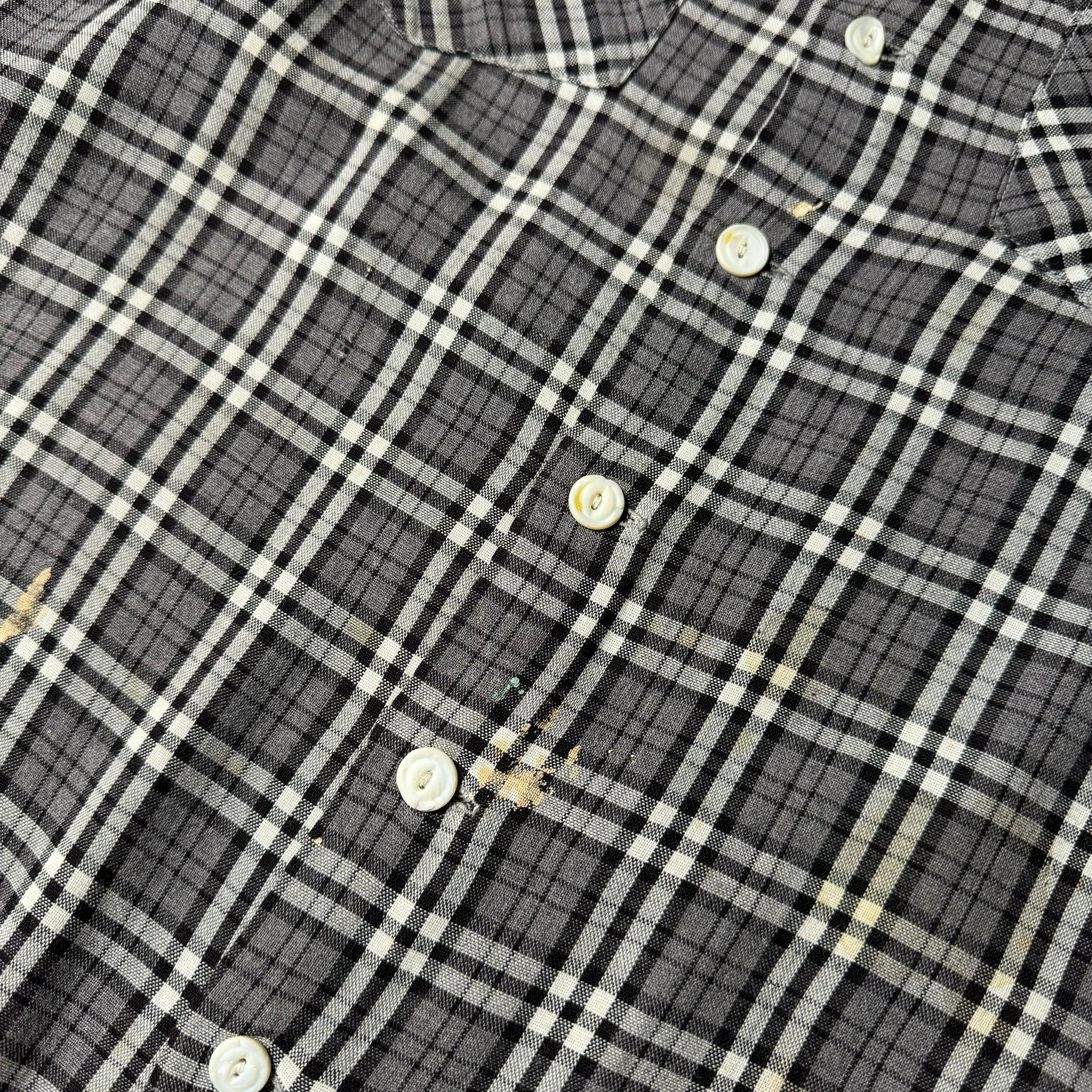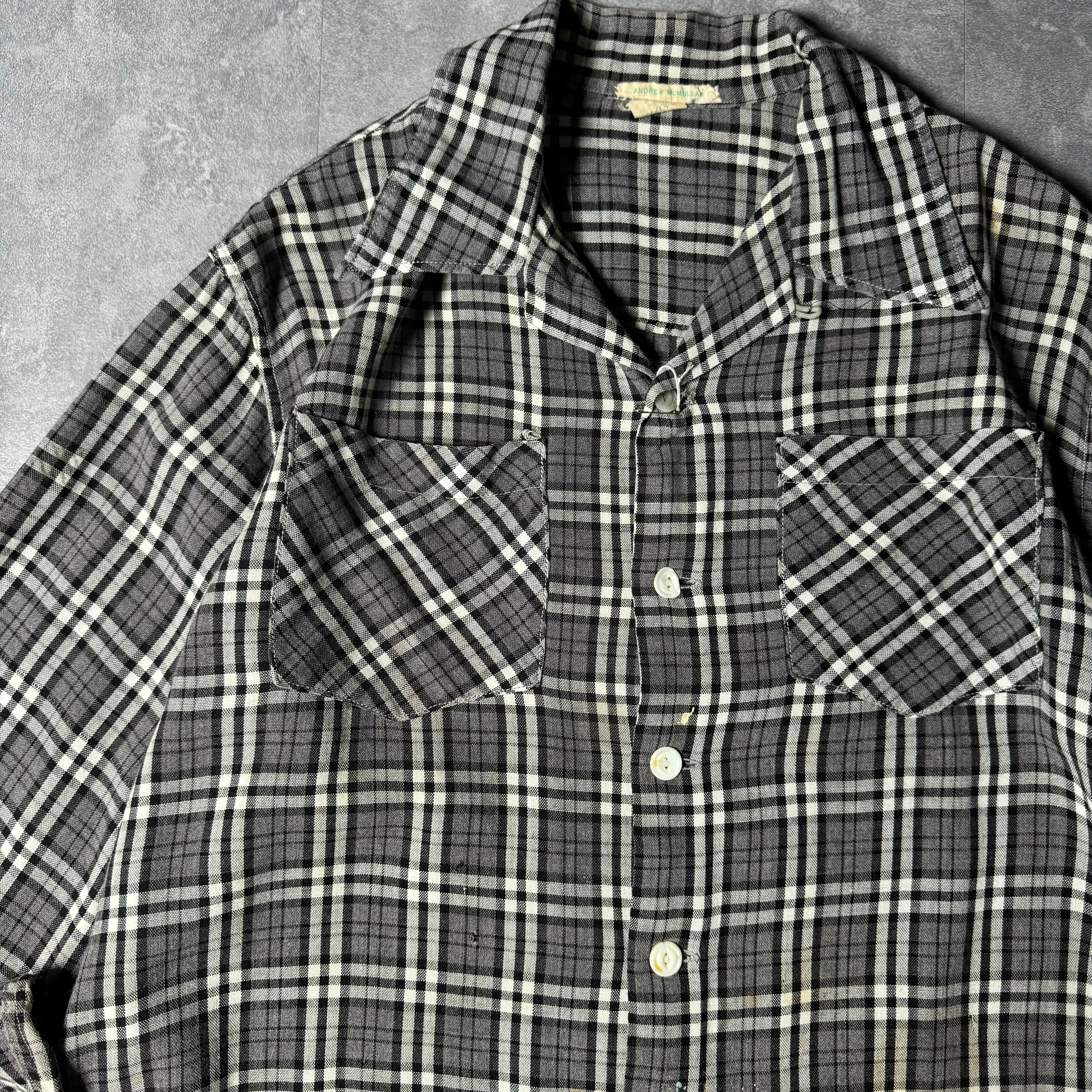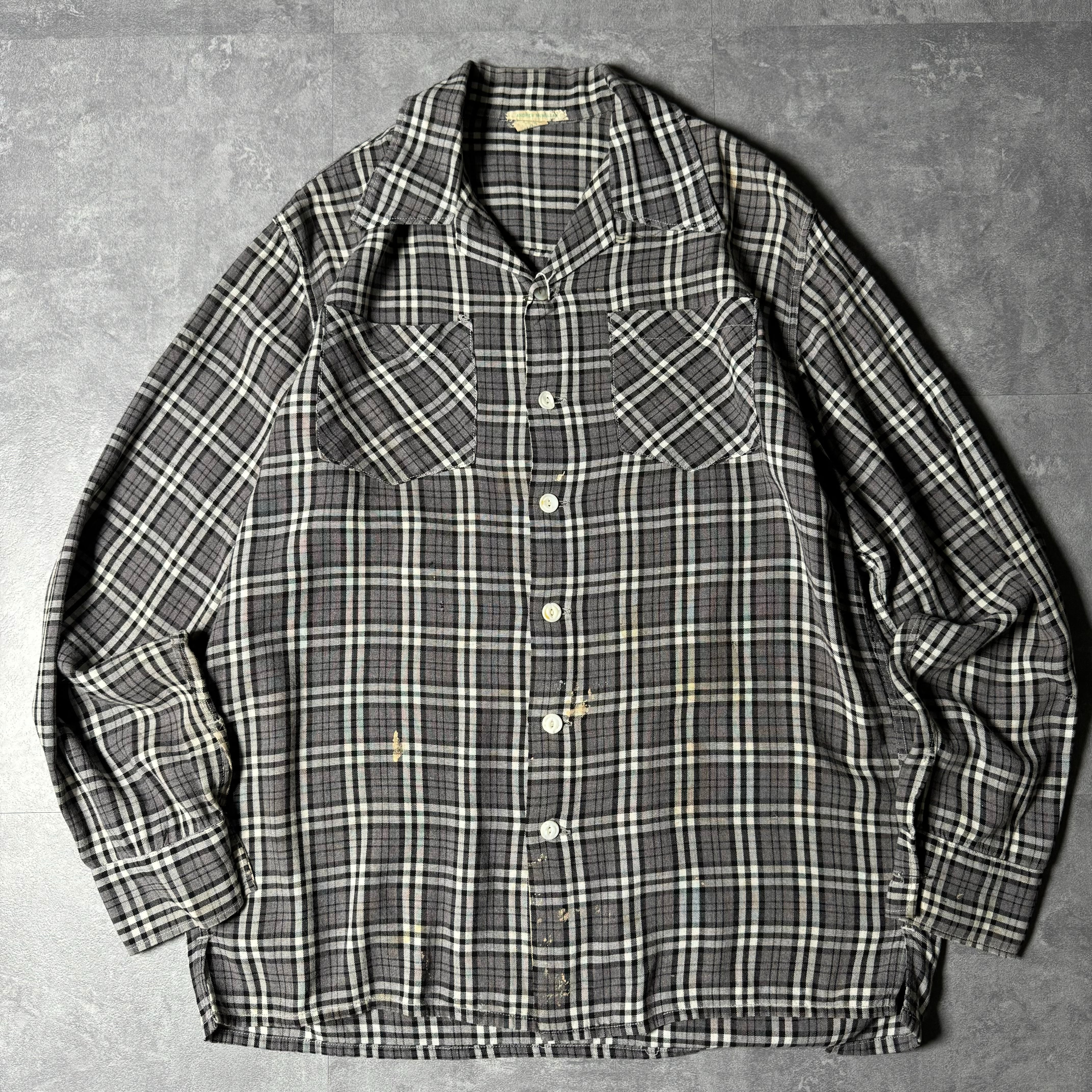 1950's Vintage Rayon Loop Collar Shirt BLK×White / 50年代 ビンテージ レーヨン 開襟シャツ ブラック×ホワイト×グレー