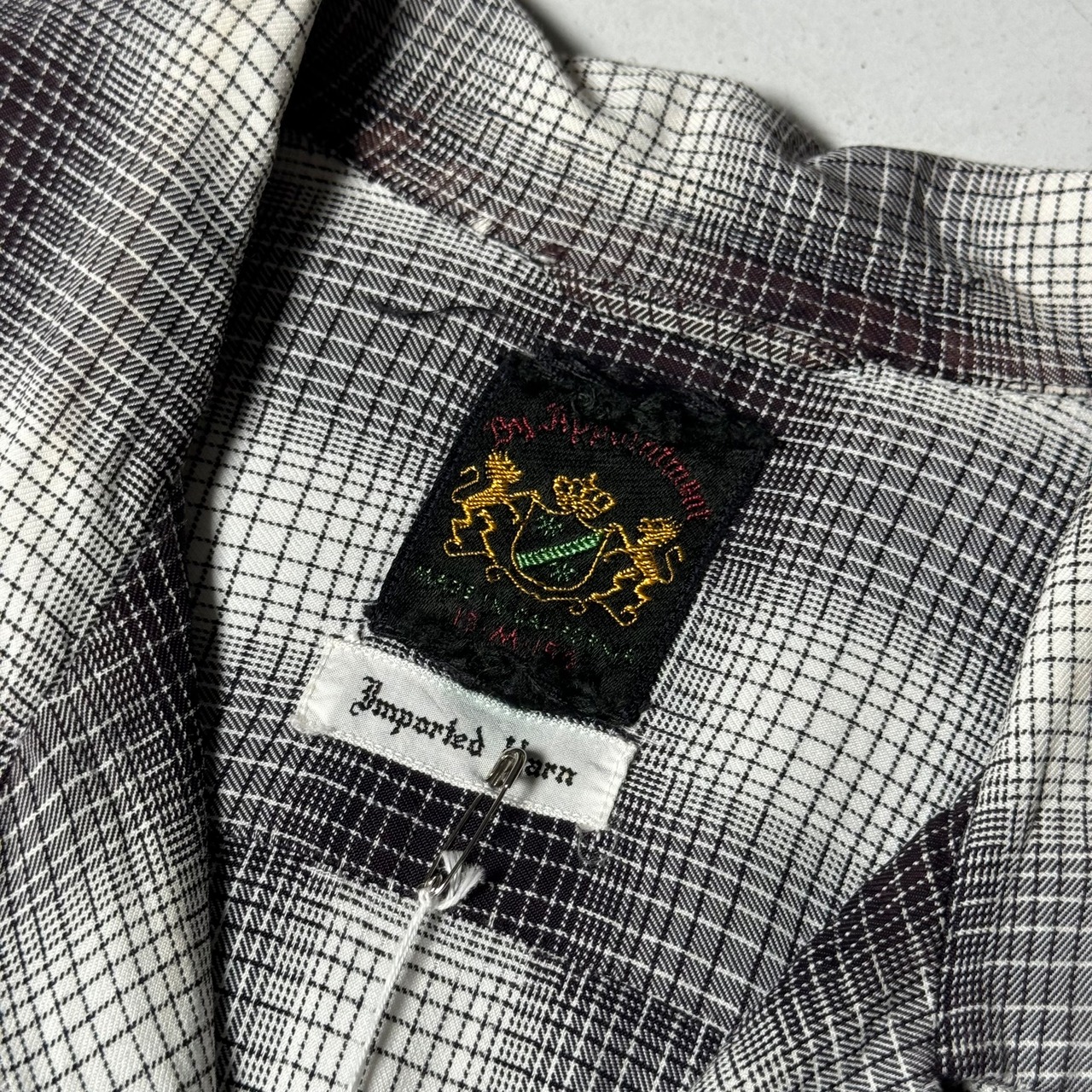 1950's Ombre Shadow Plaid Rayon Loop Collar Shirt made in California / 50年代 オンブレシャドーチェック レーヨン開襟シャツ 白黒 カリフォルニア製