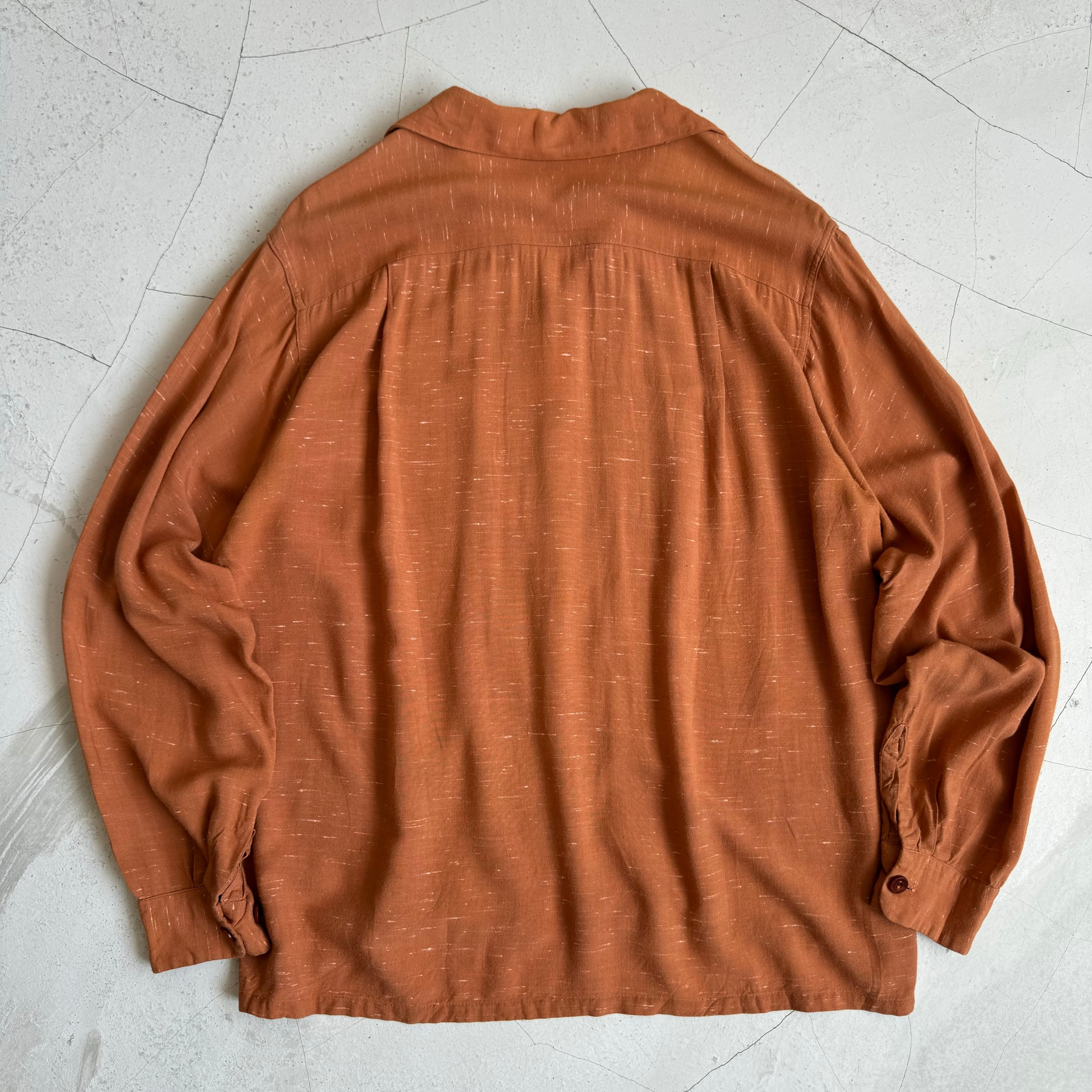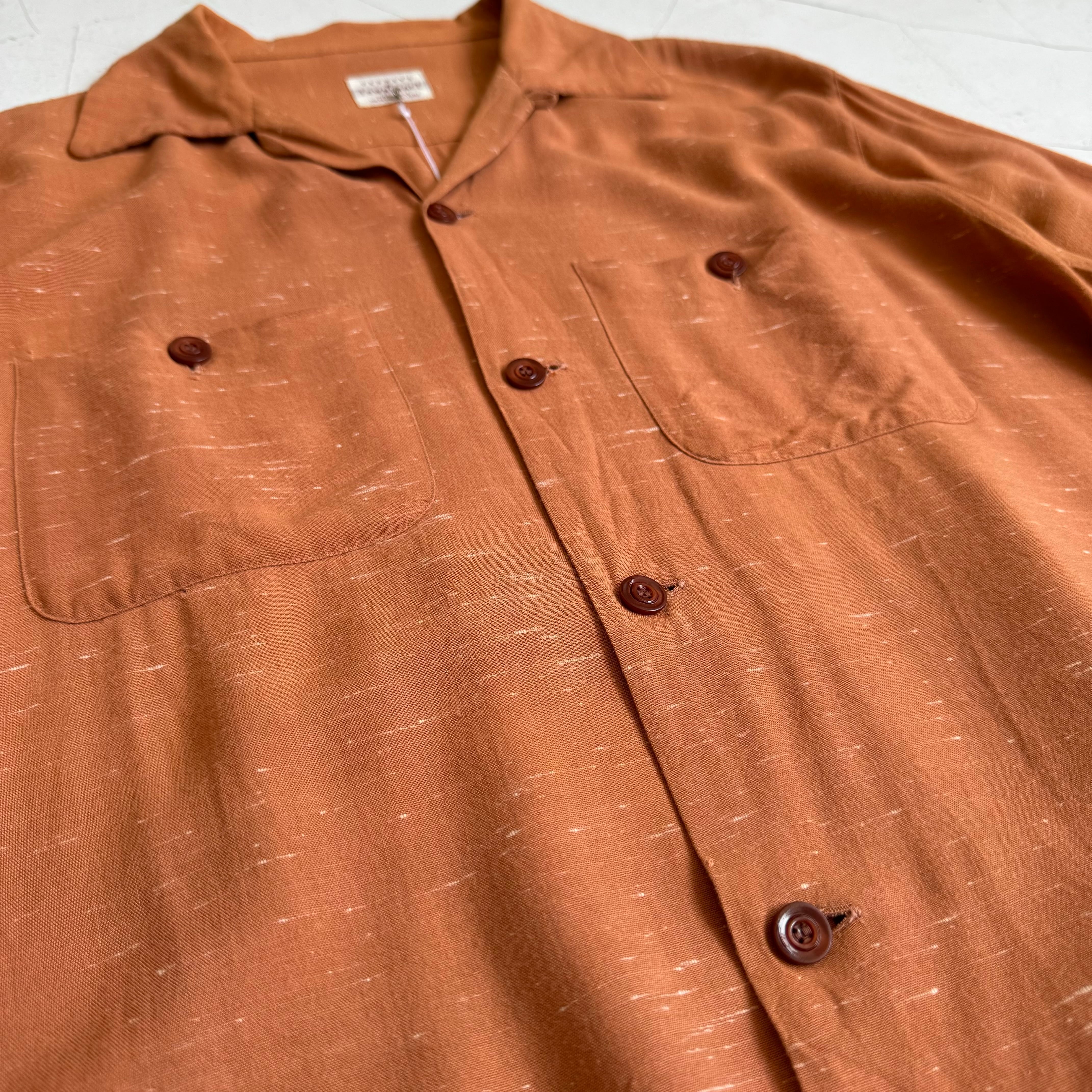 1950's "Townclaft" Kasuri Pattern Rayon Gabardine Loop Collar Shirt / 50年代 "タウンクラフト" 絣柄 レーヨン ギャバジン 開襟シャツ