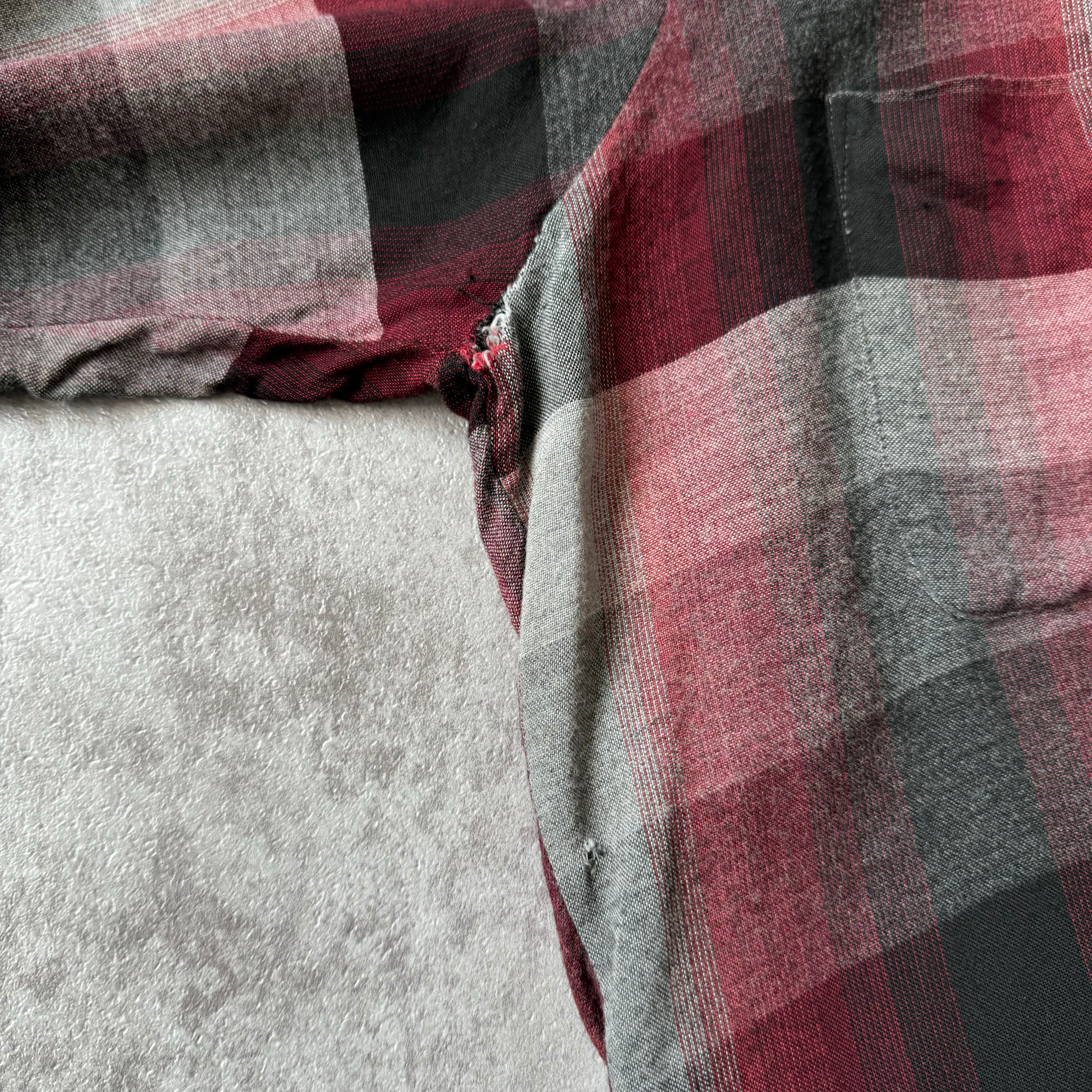 1960's "Arrow" Ombre Shadow Plaid Rayon Loop Collar Shirt / 60年代 "アロー" オンブレシャドーチェック レーヨン 開襟シャツ 2ポケット