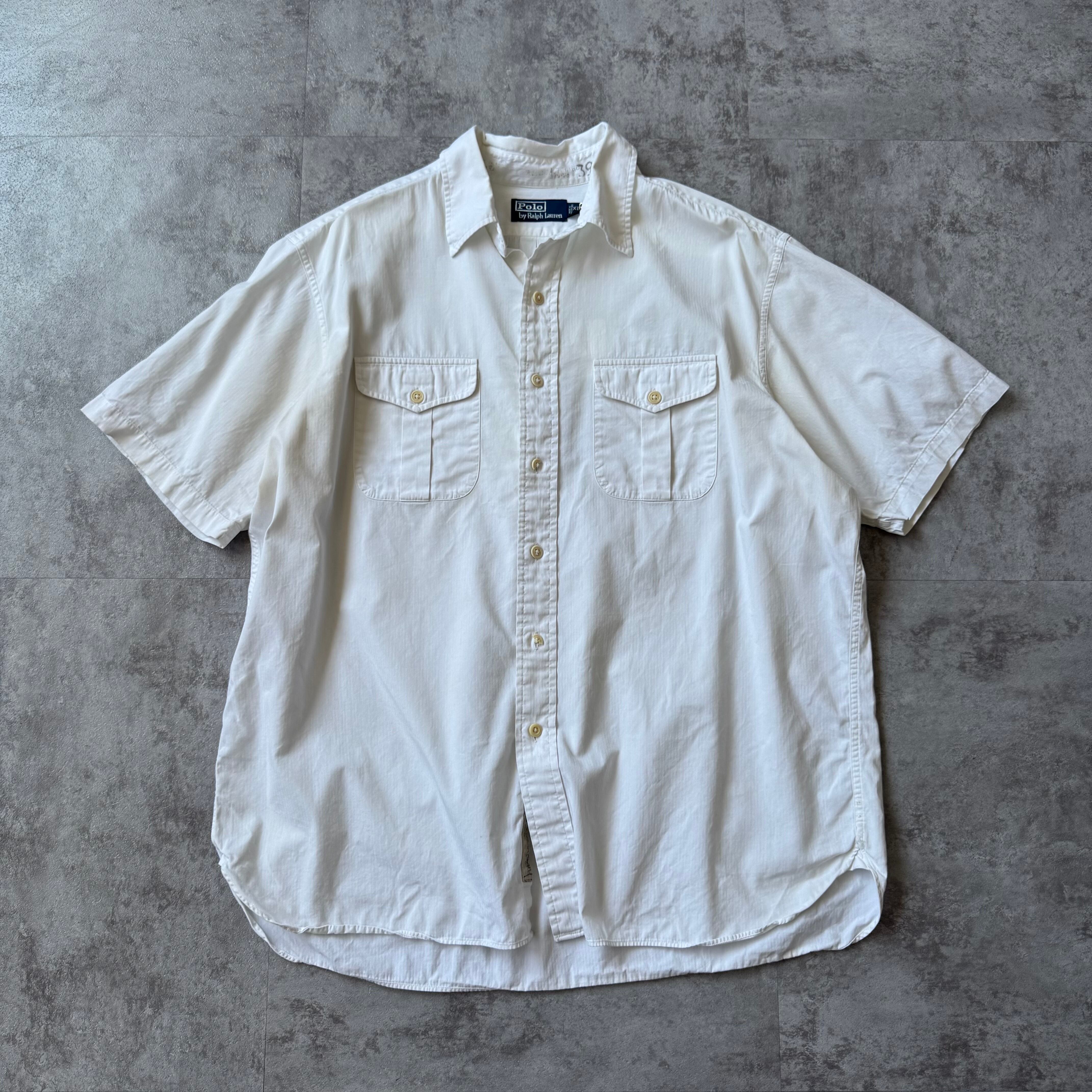 1990's "Polo by Ralph Lauren" HBT Work Shirt / 90年代 "ポロバイラルフローレン" ヘリンボーンタイル コットン ワークシャツ マチ付き