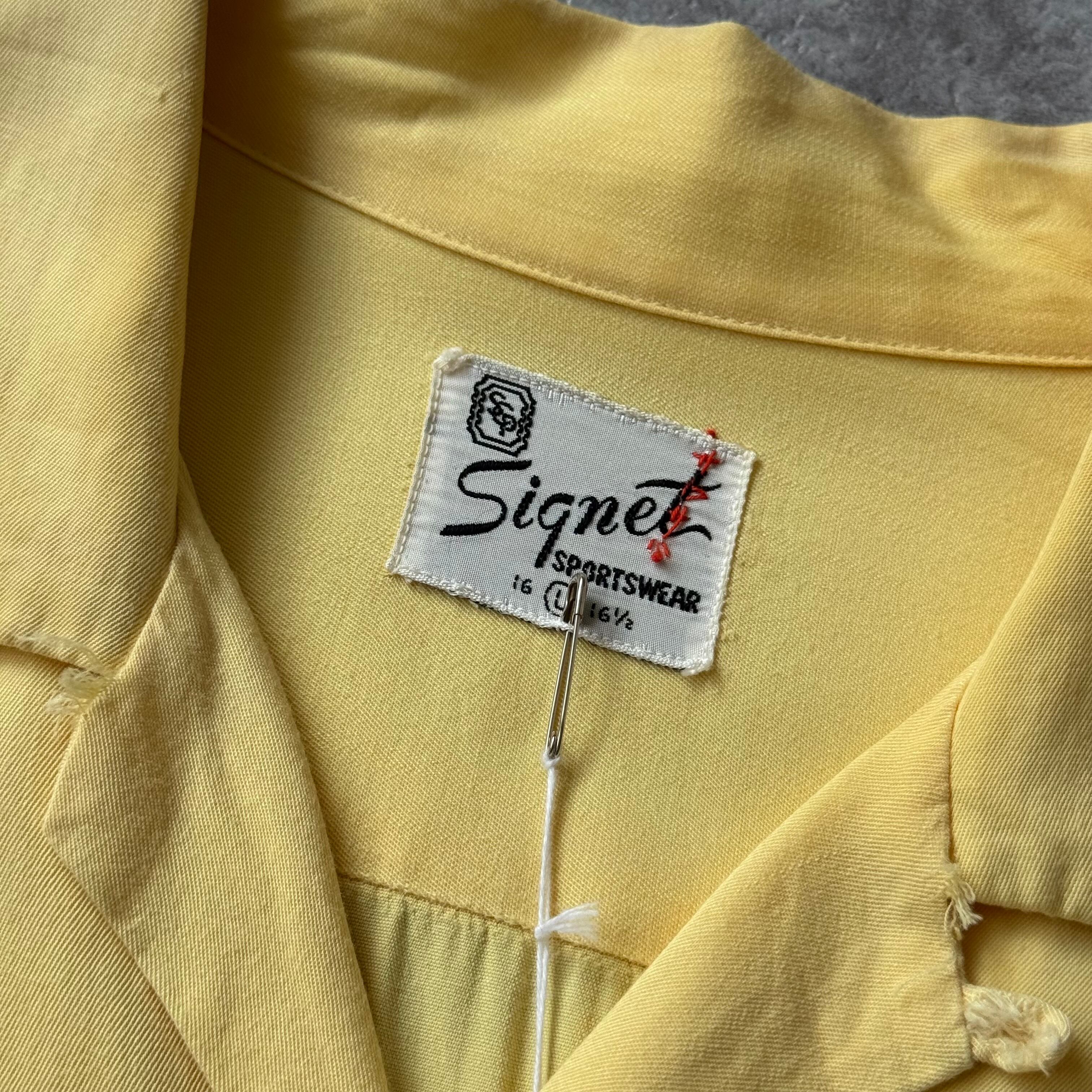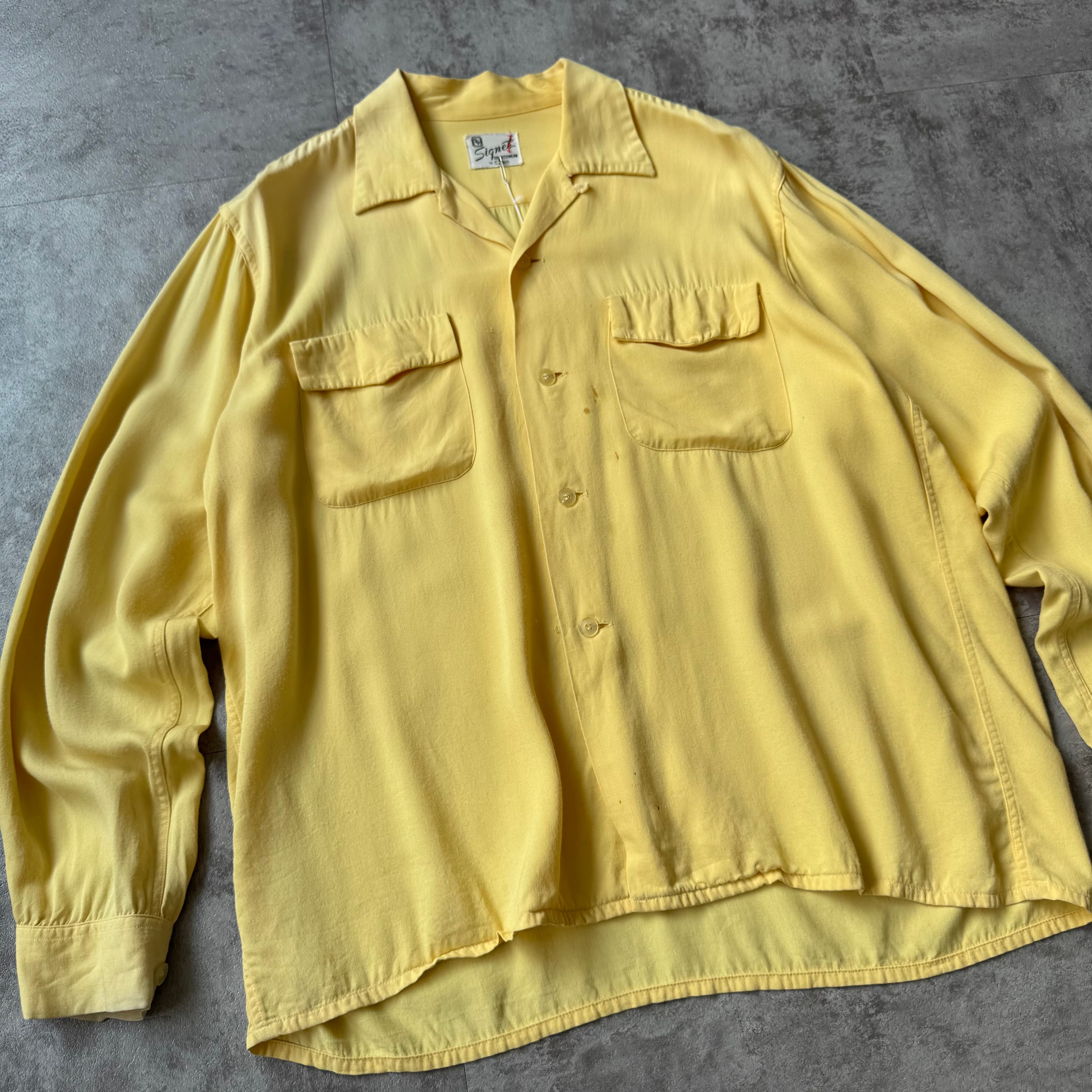 1950's "Signet" Rayon Gabardine Loop Collar Shirt / 50年代 レーヨン ギャバジン 開襟 シャツ ロケットカフス