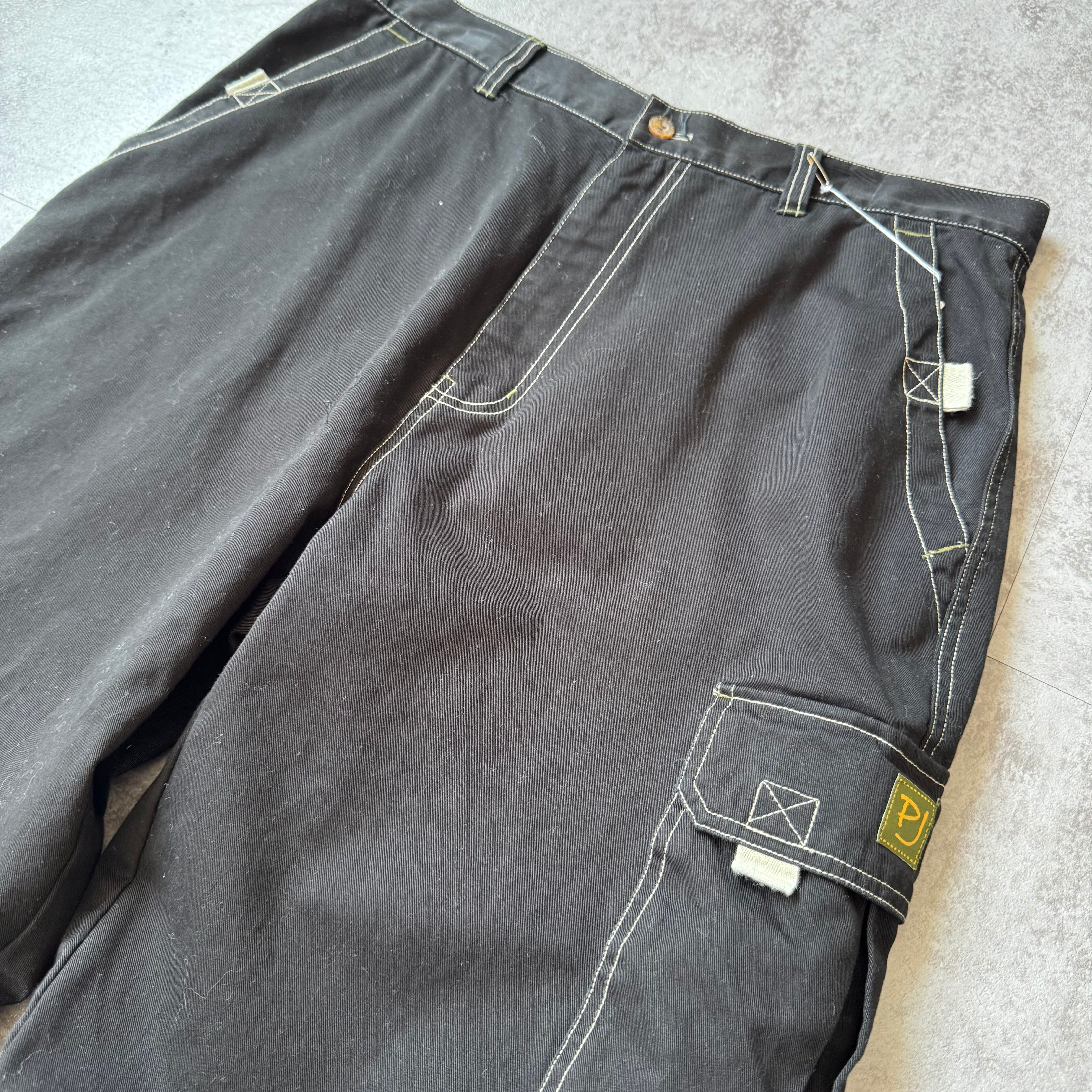 00's "PJ MARK" Gimmick Wide Cargo Pants made in Russia / 2000年代 "ピージェイマーク" ギミック ワイド カーゴ パンツ ブラック ロシア製