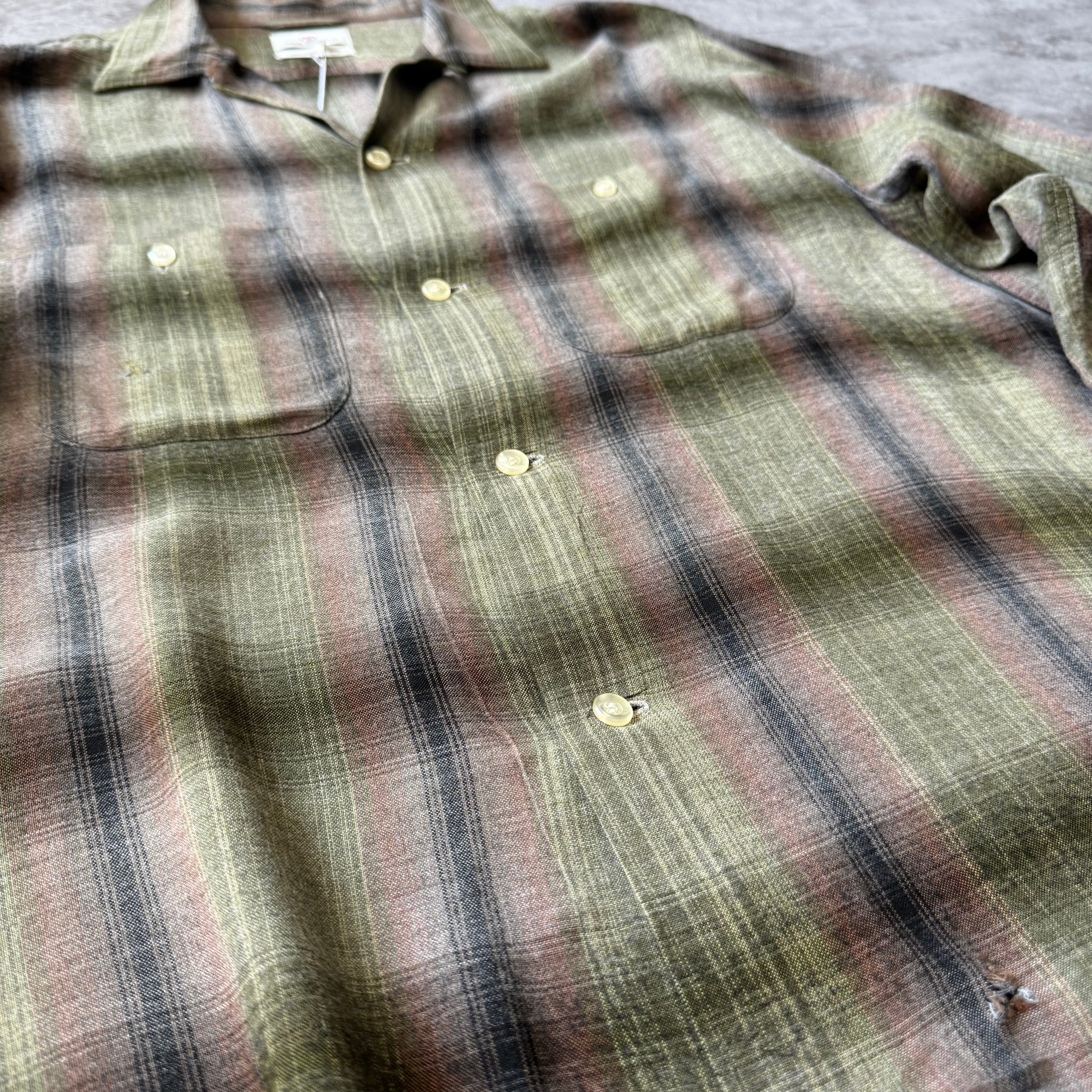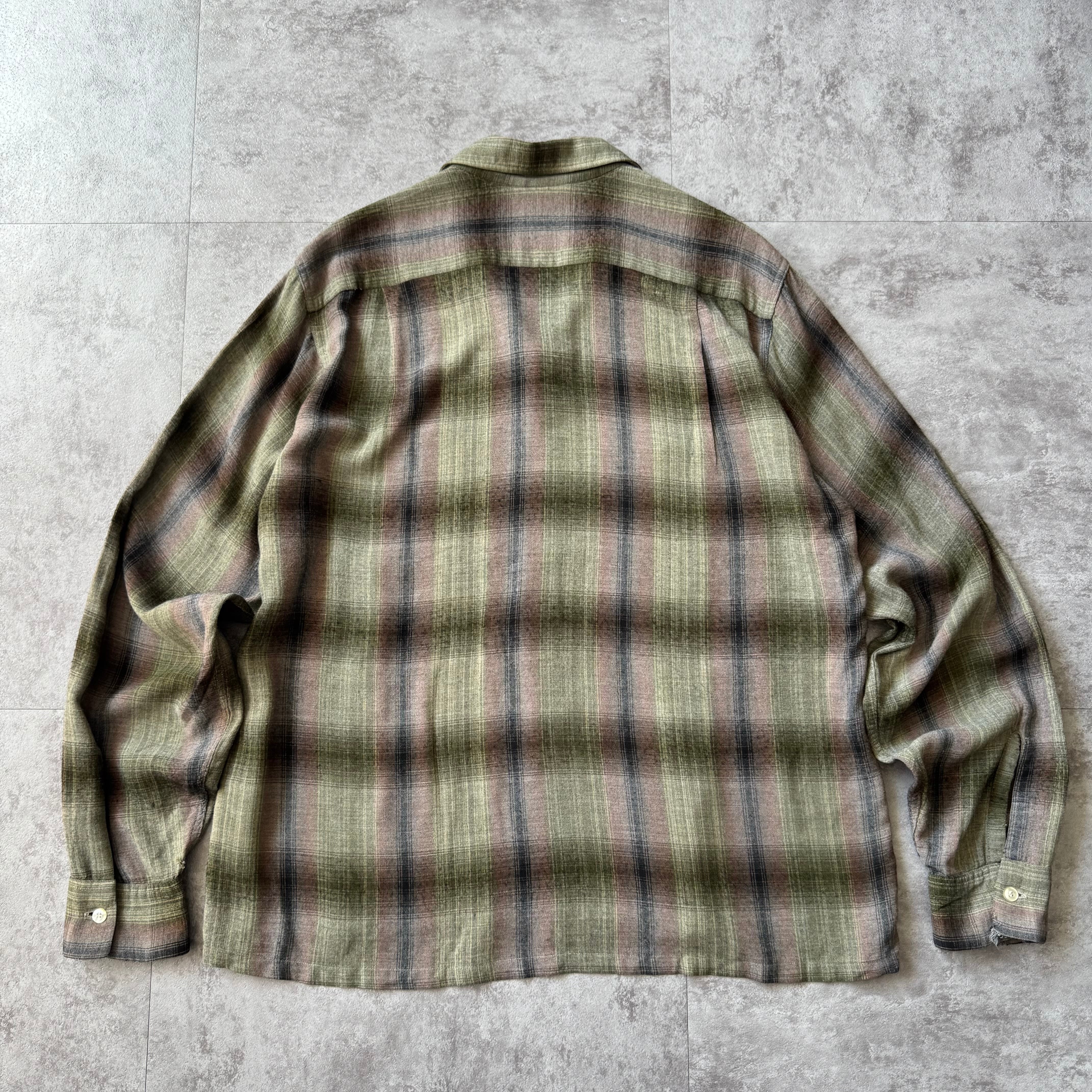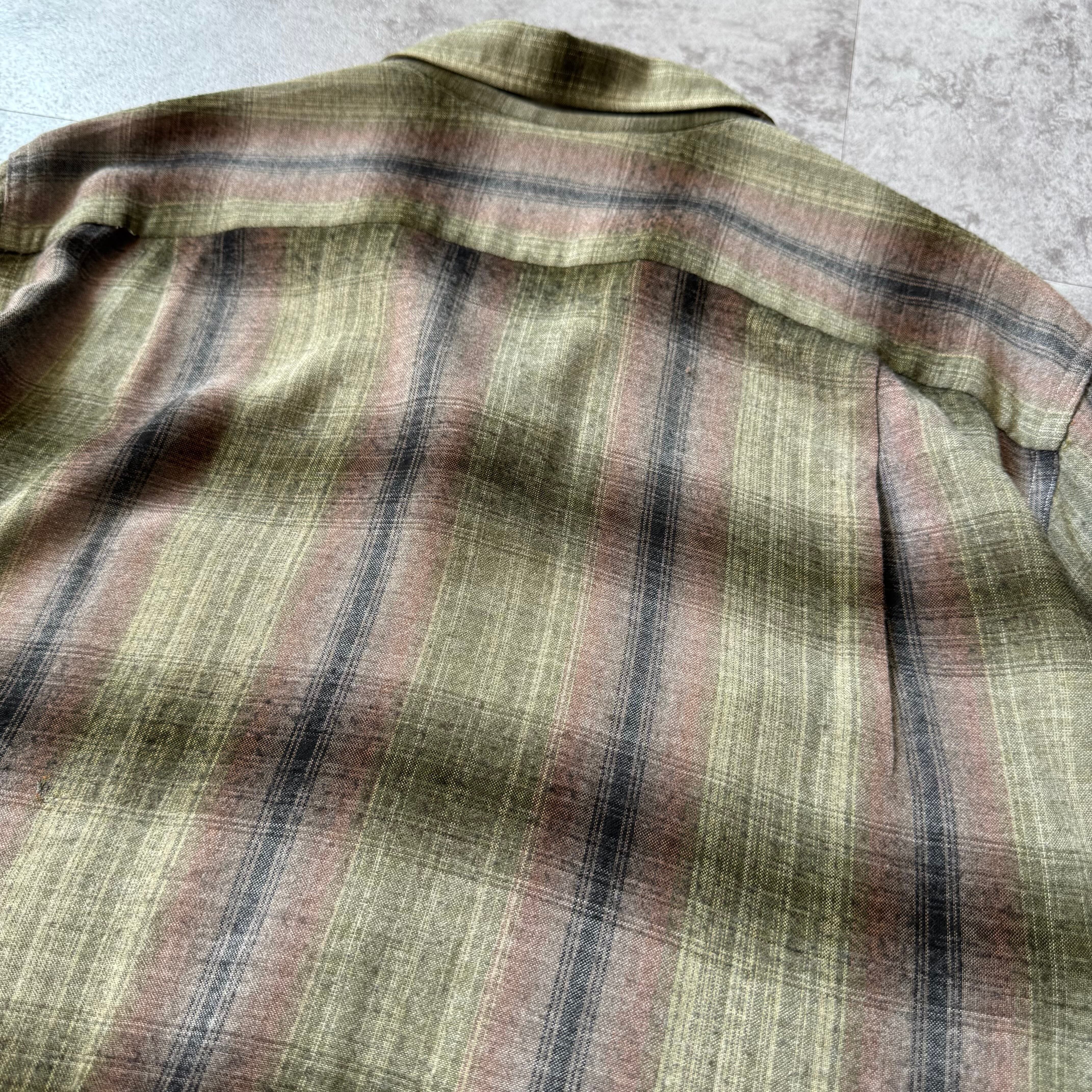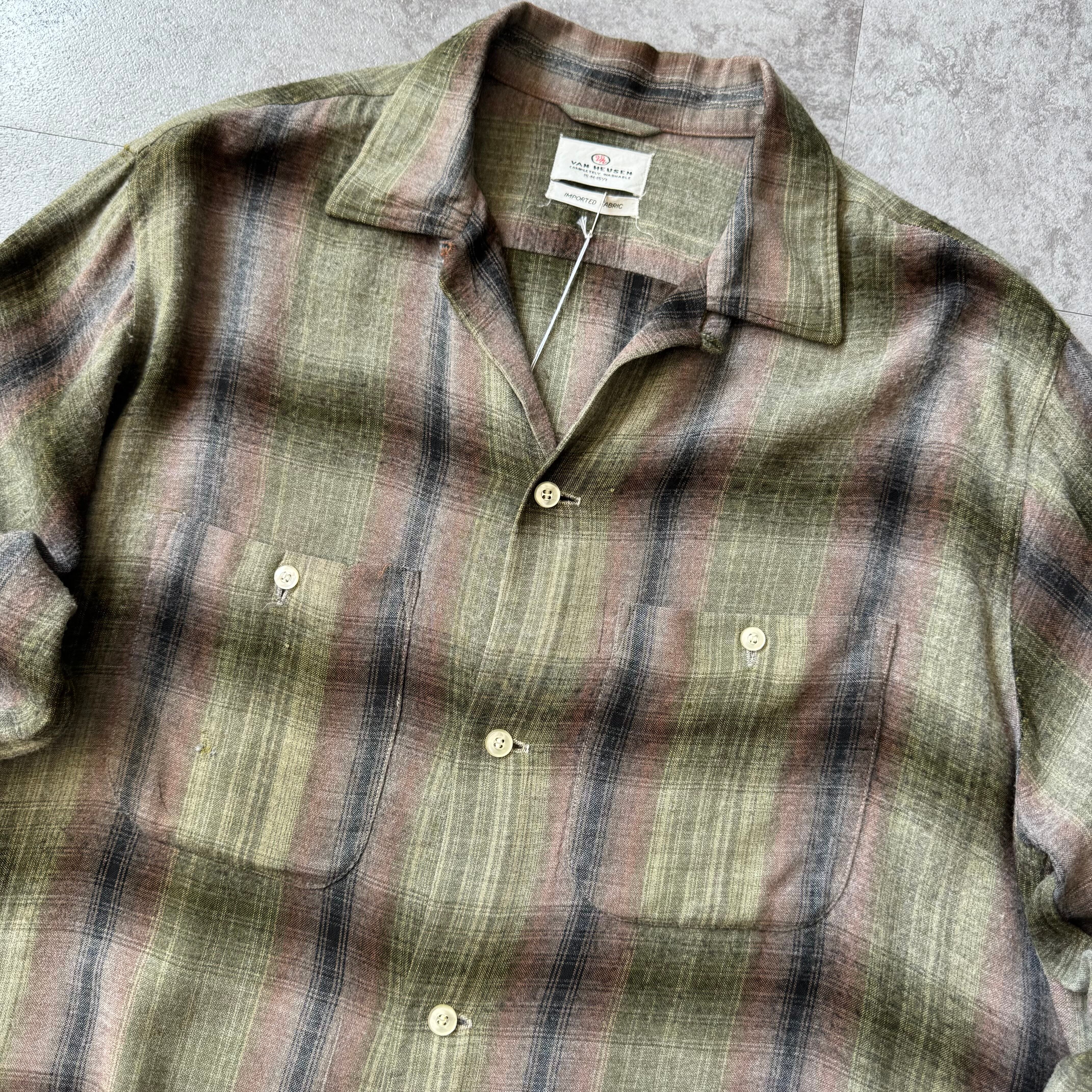 1960's "VAN HEUSEN" Ombre Shadow Plaid Rayon Loop Collar Shirt / 60年代 "ヴィン ヒューゼン" オンブレ シャドーチェック レーヨン 開襟シャツ