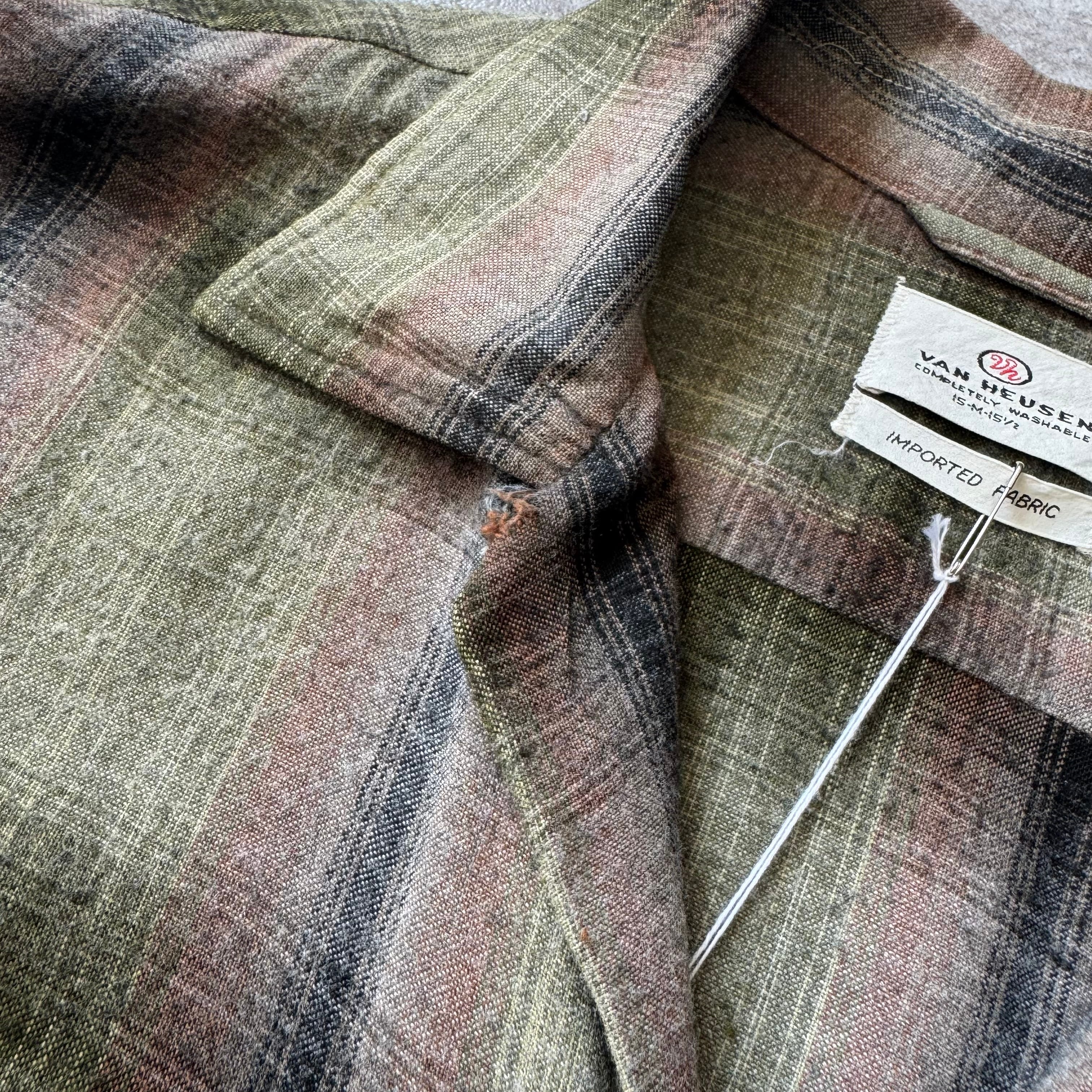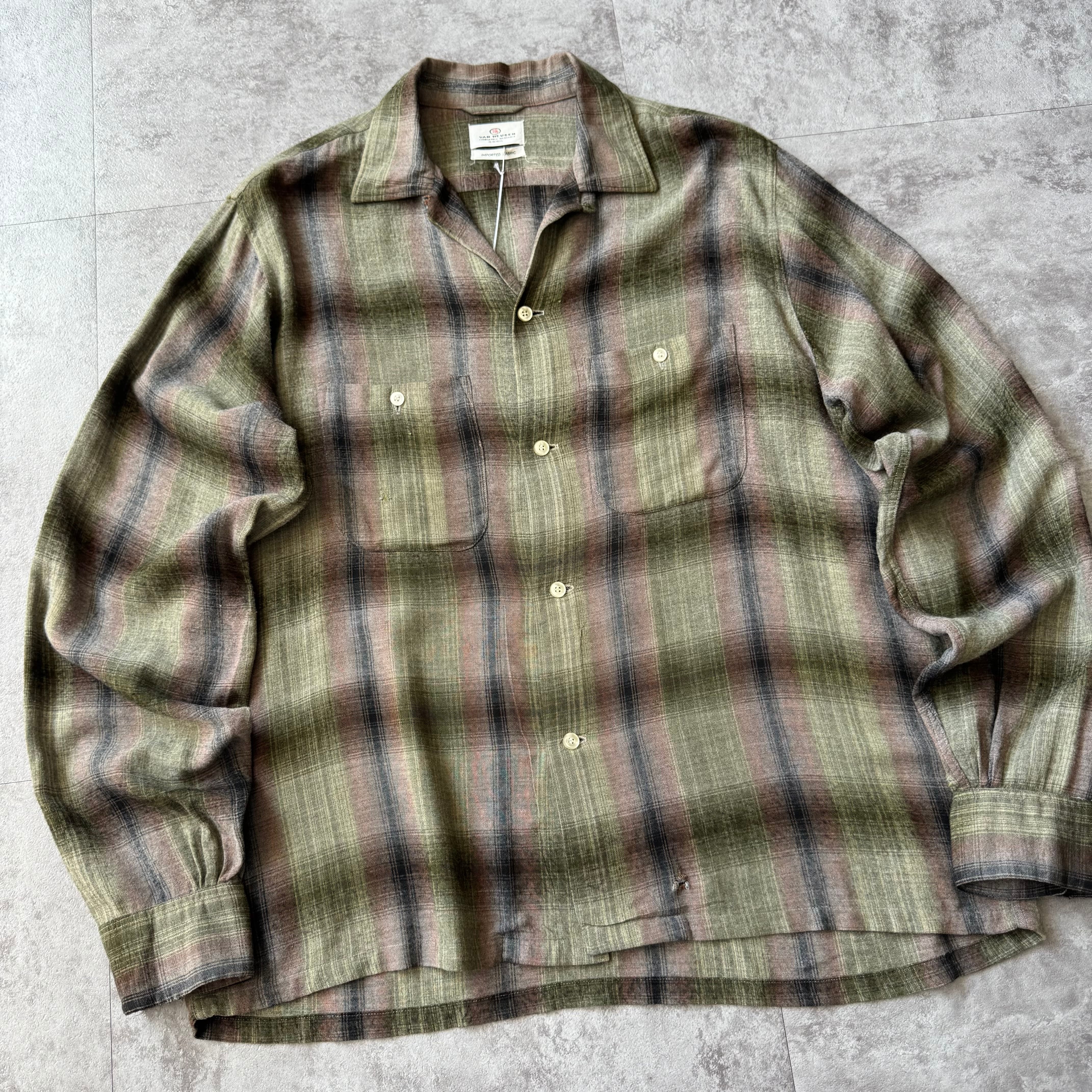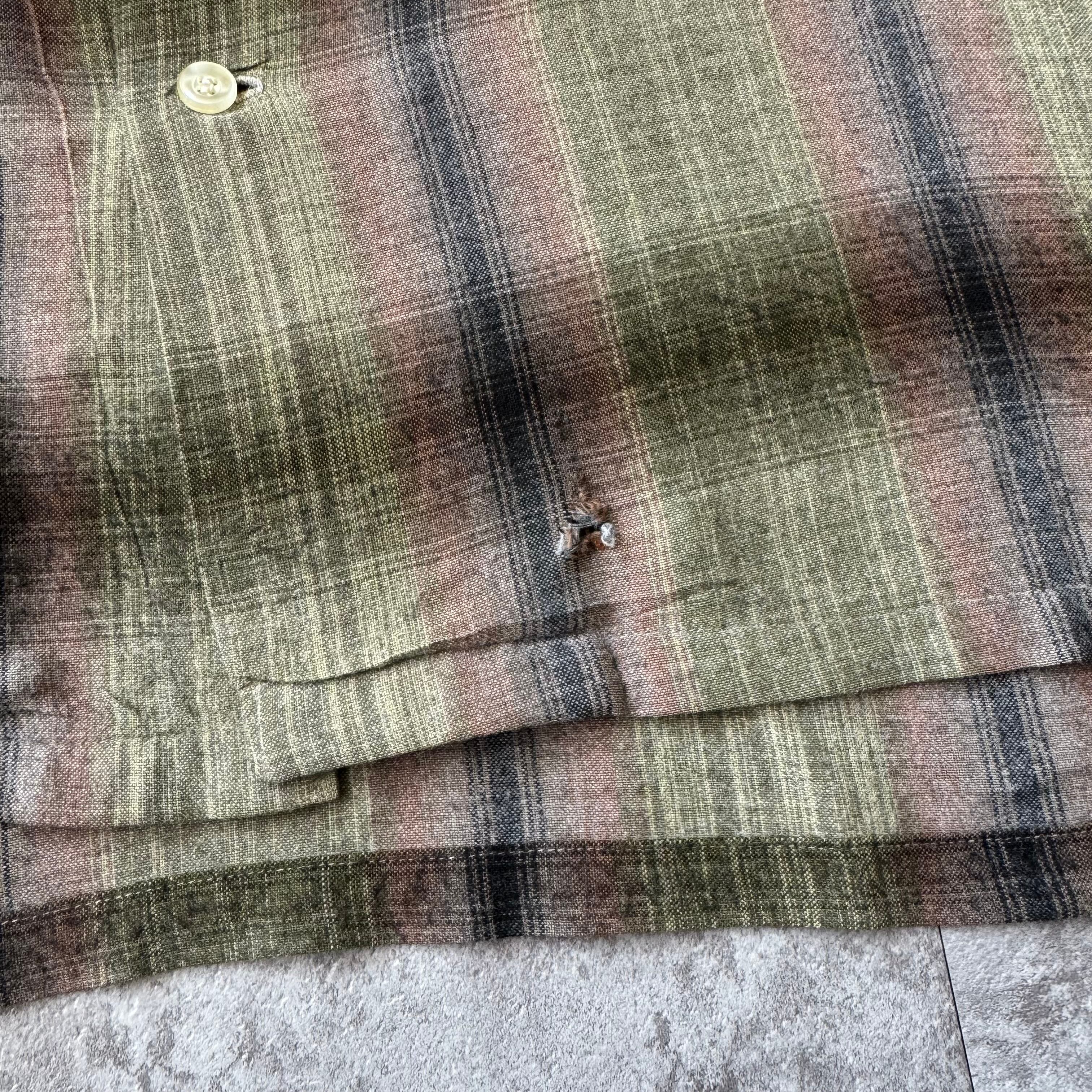 1960's "VAN HEUSEN" Ombre Shadow Plaid Rayon Loop Collar Shirt / 60年代 "ヴィン ヒューゼン" オンブレ シャドーチェック レーヨン 開襟シャツ