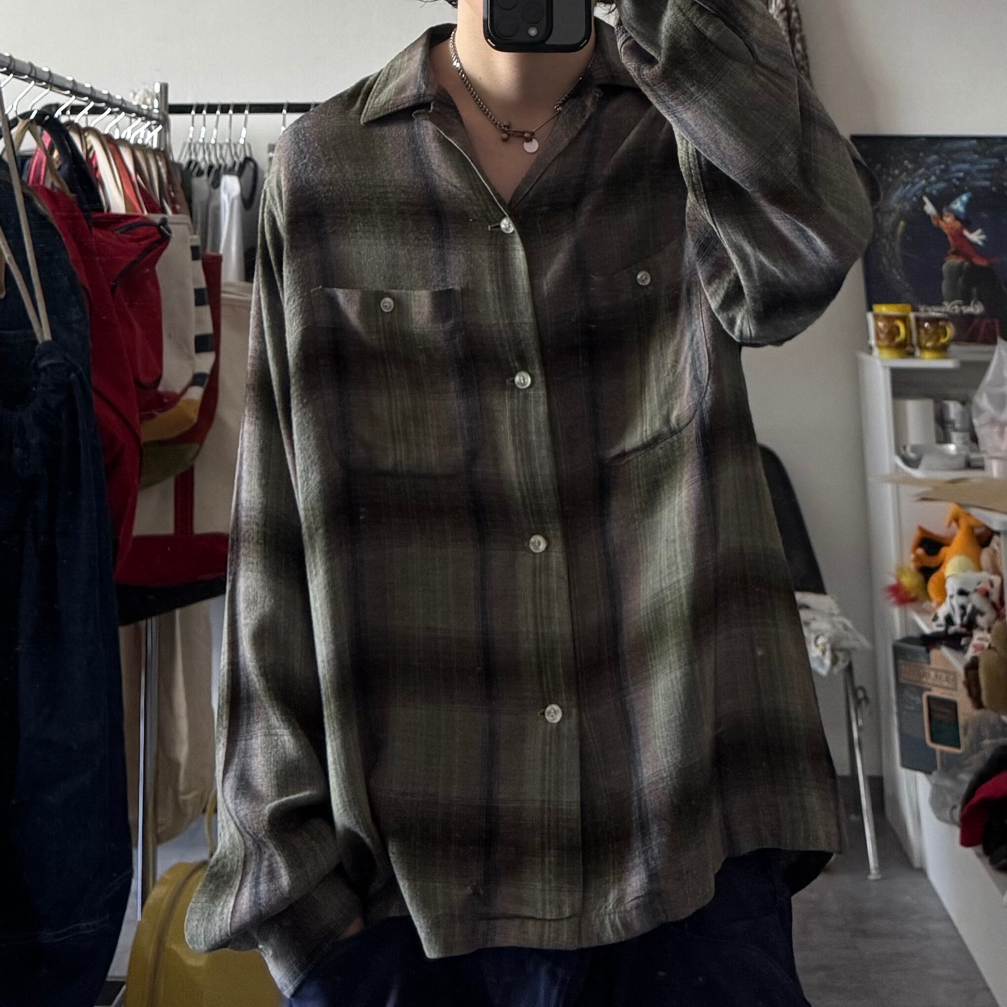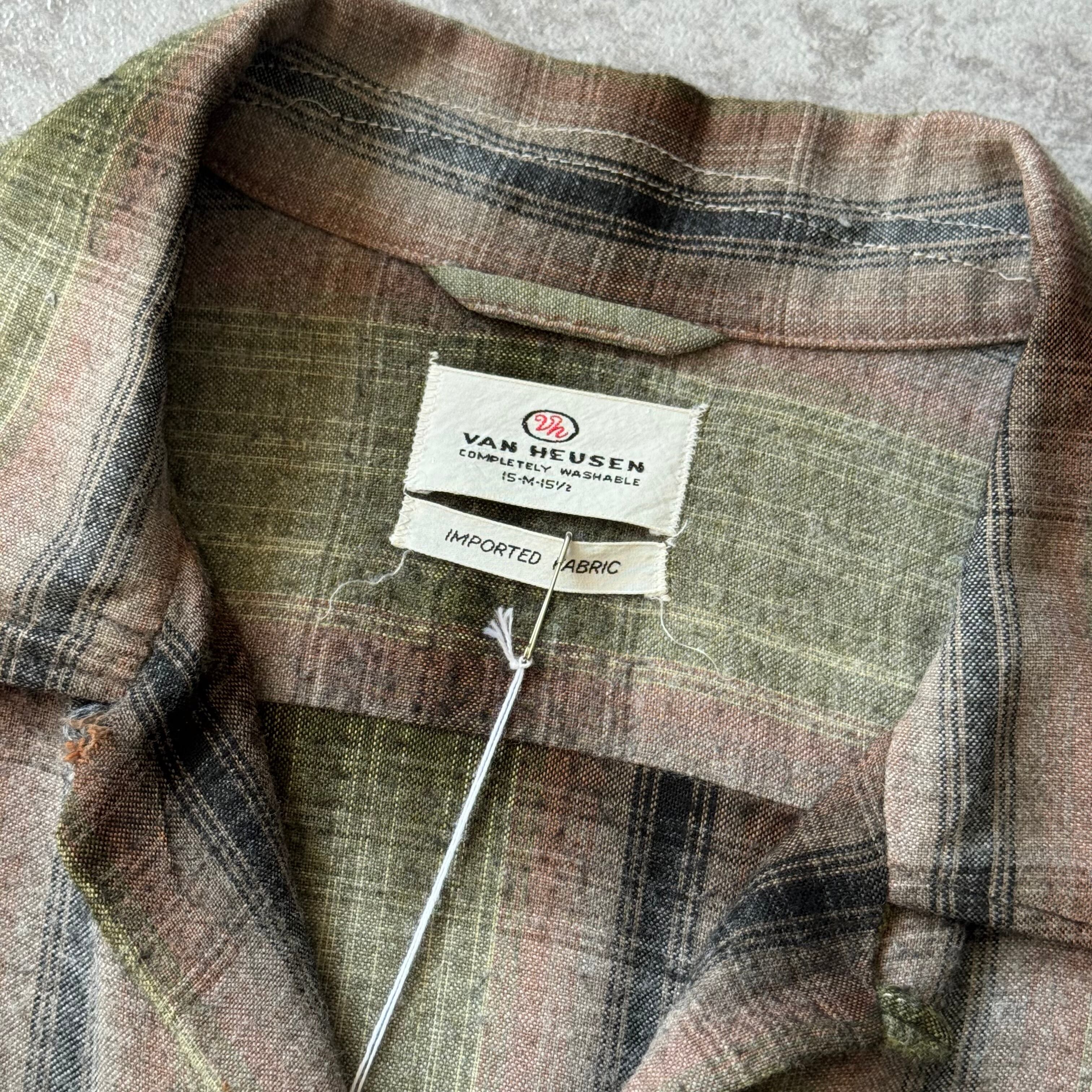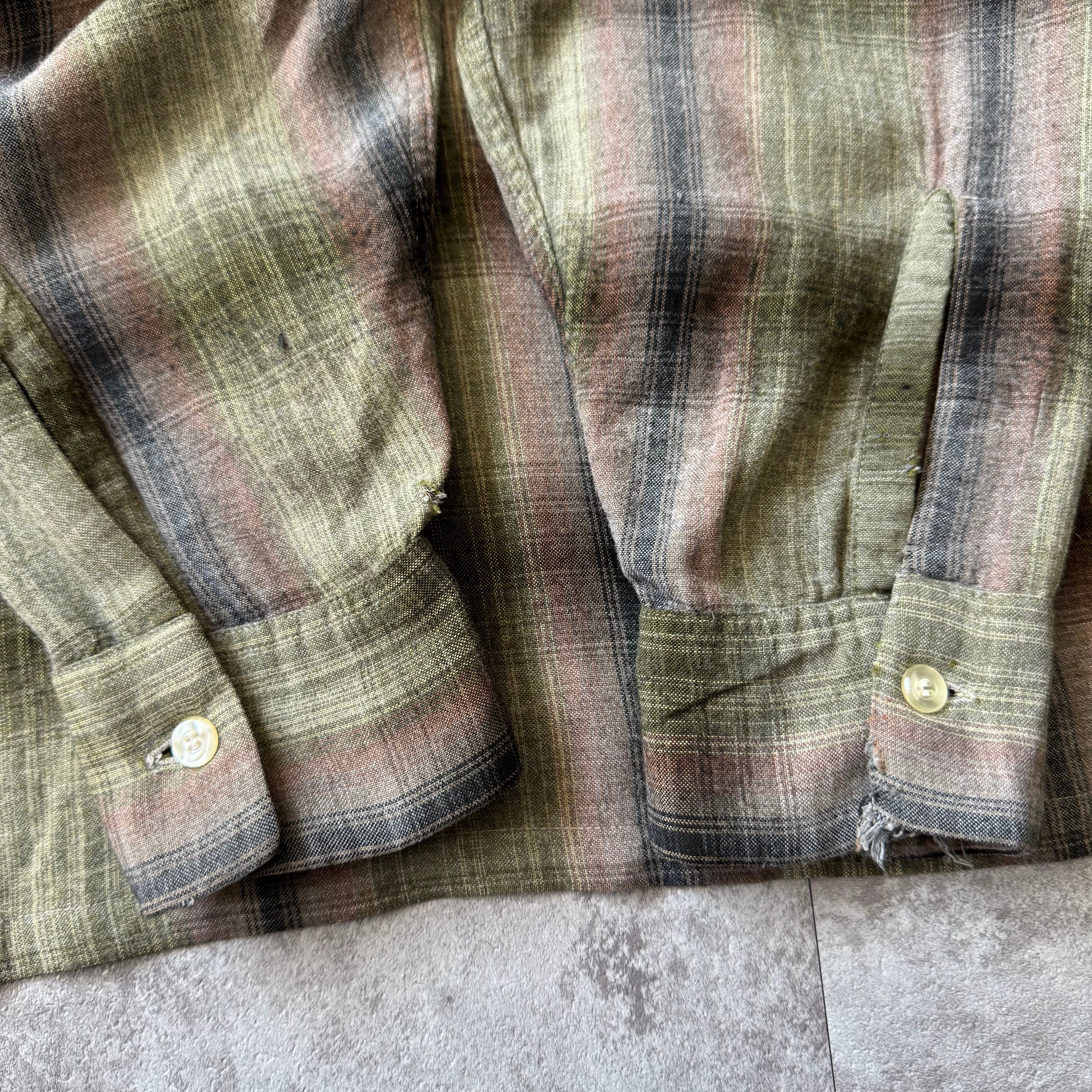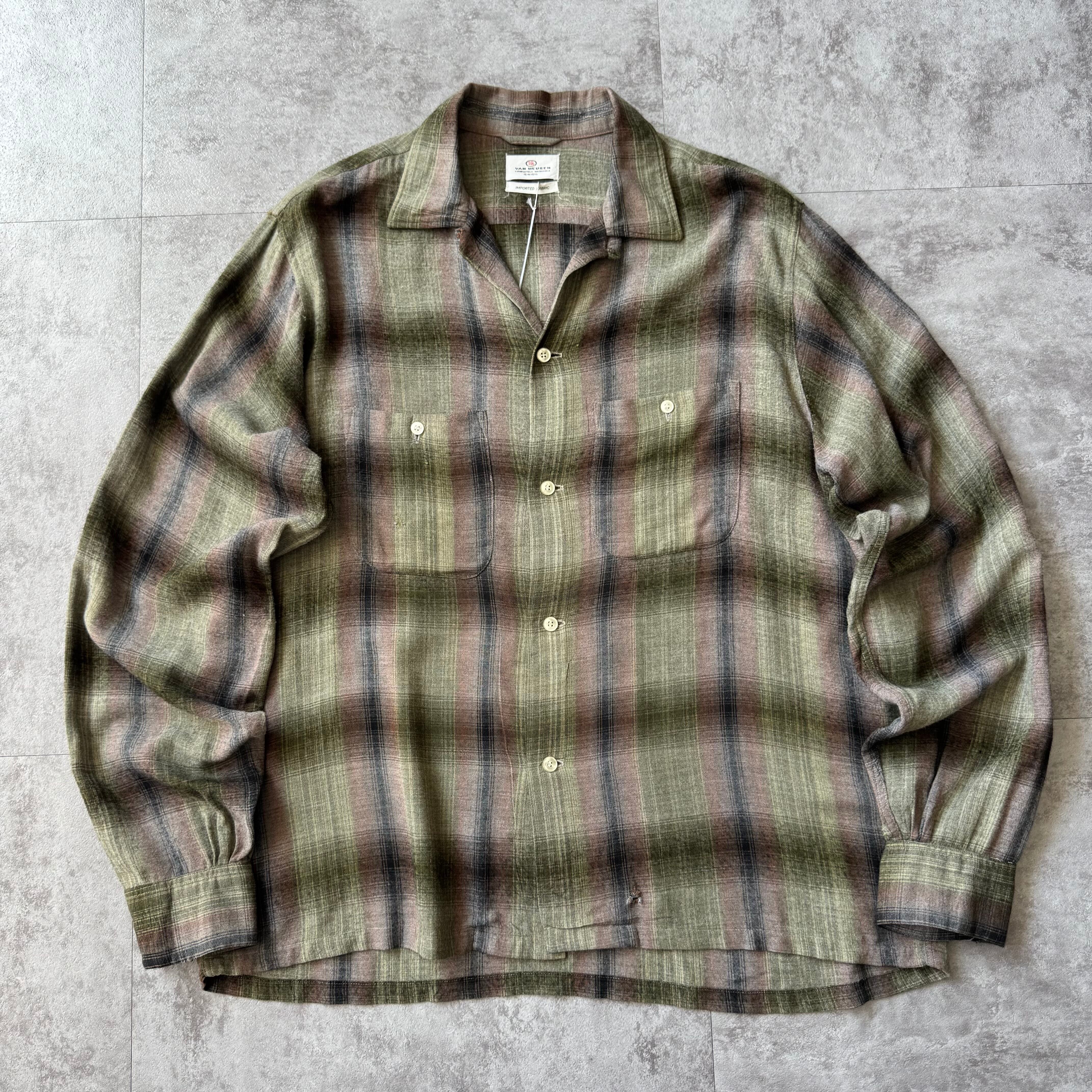 1960's "VAN HEUSEN" Ombre Shadow Plaid Rayon Loop Collar Shirt / 60年代 "ヴィン ヒューゼン" オンブレ シャドーチェック レーヨン 開襟シャツ