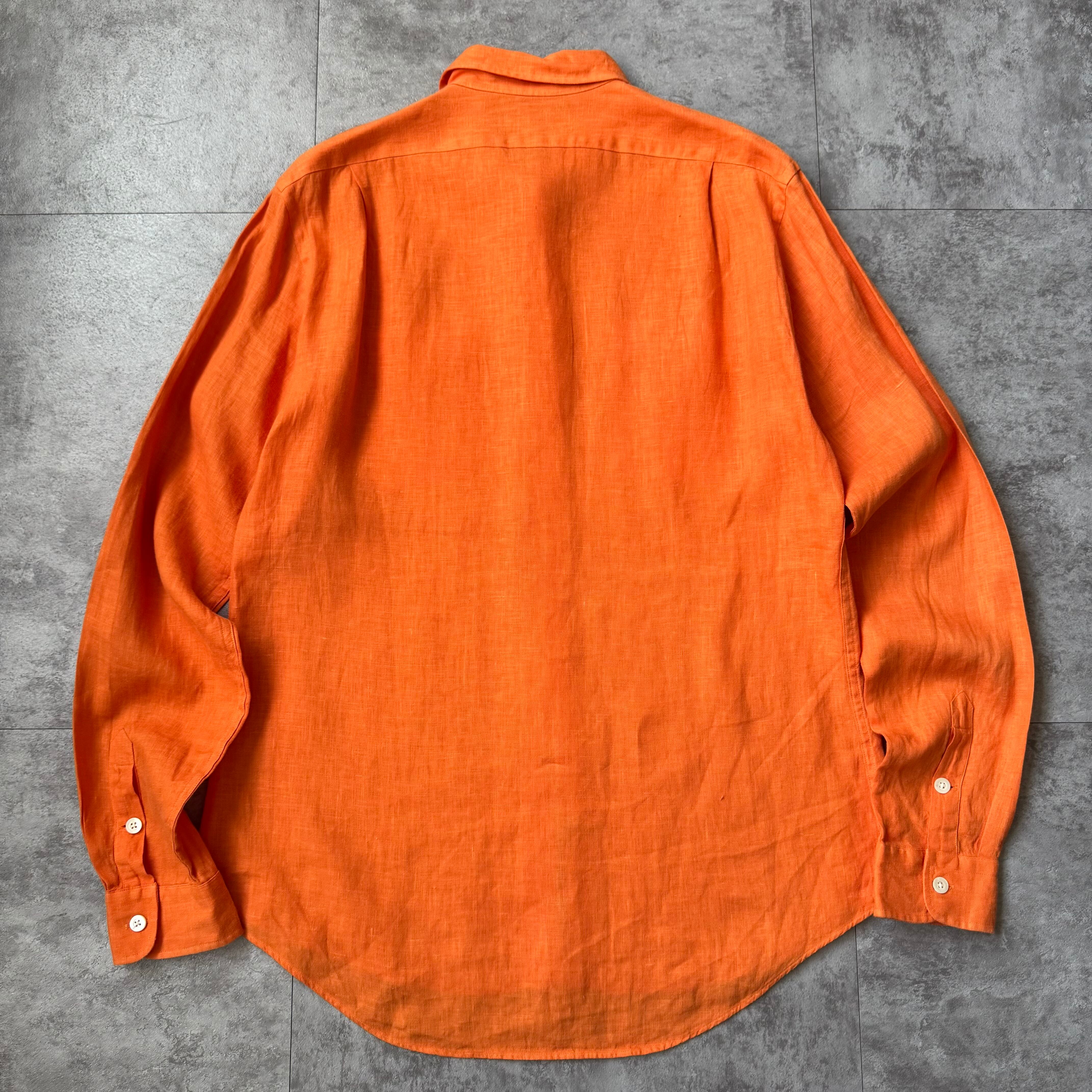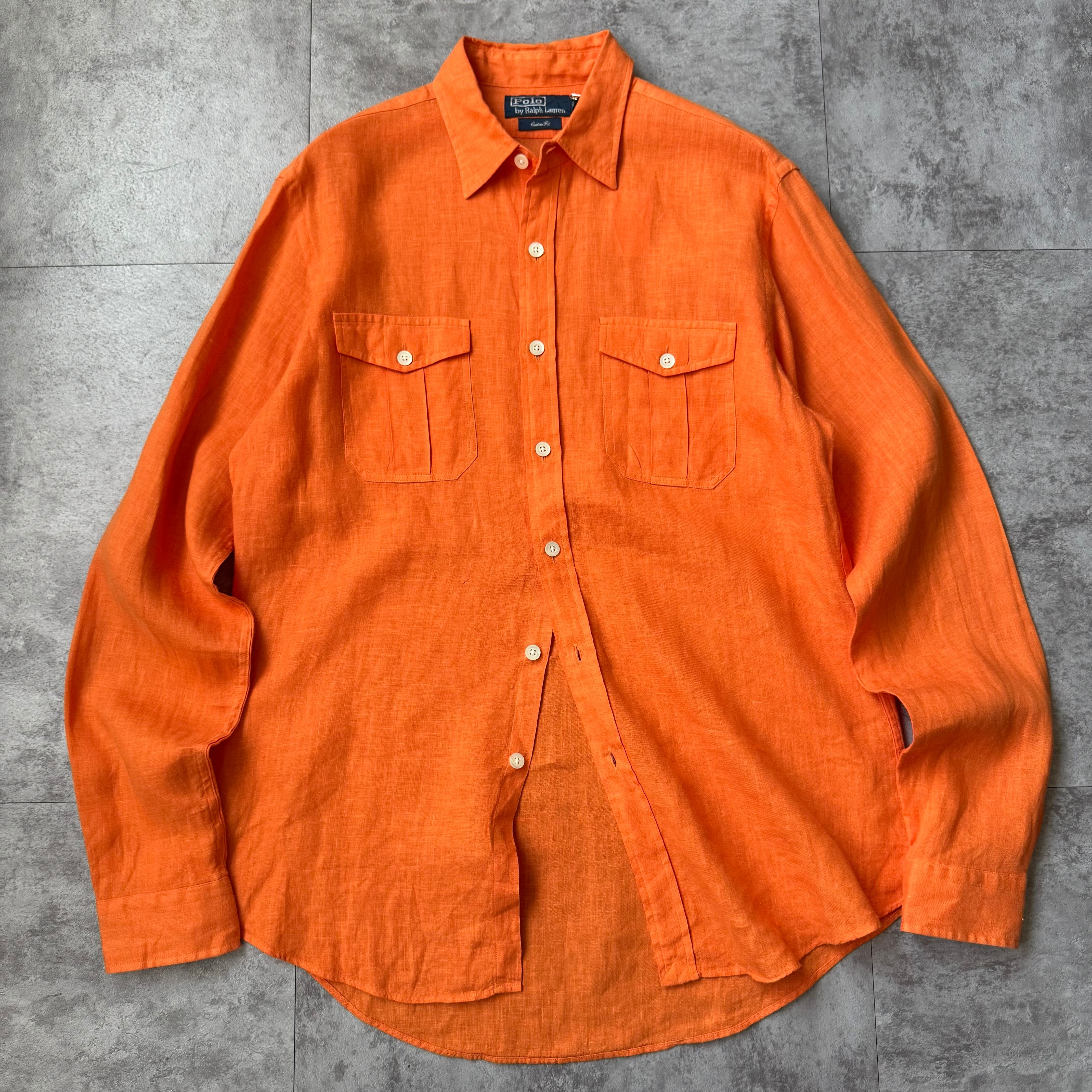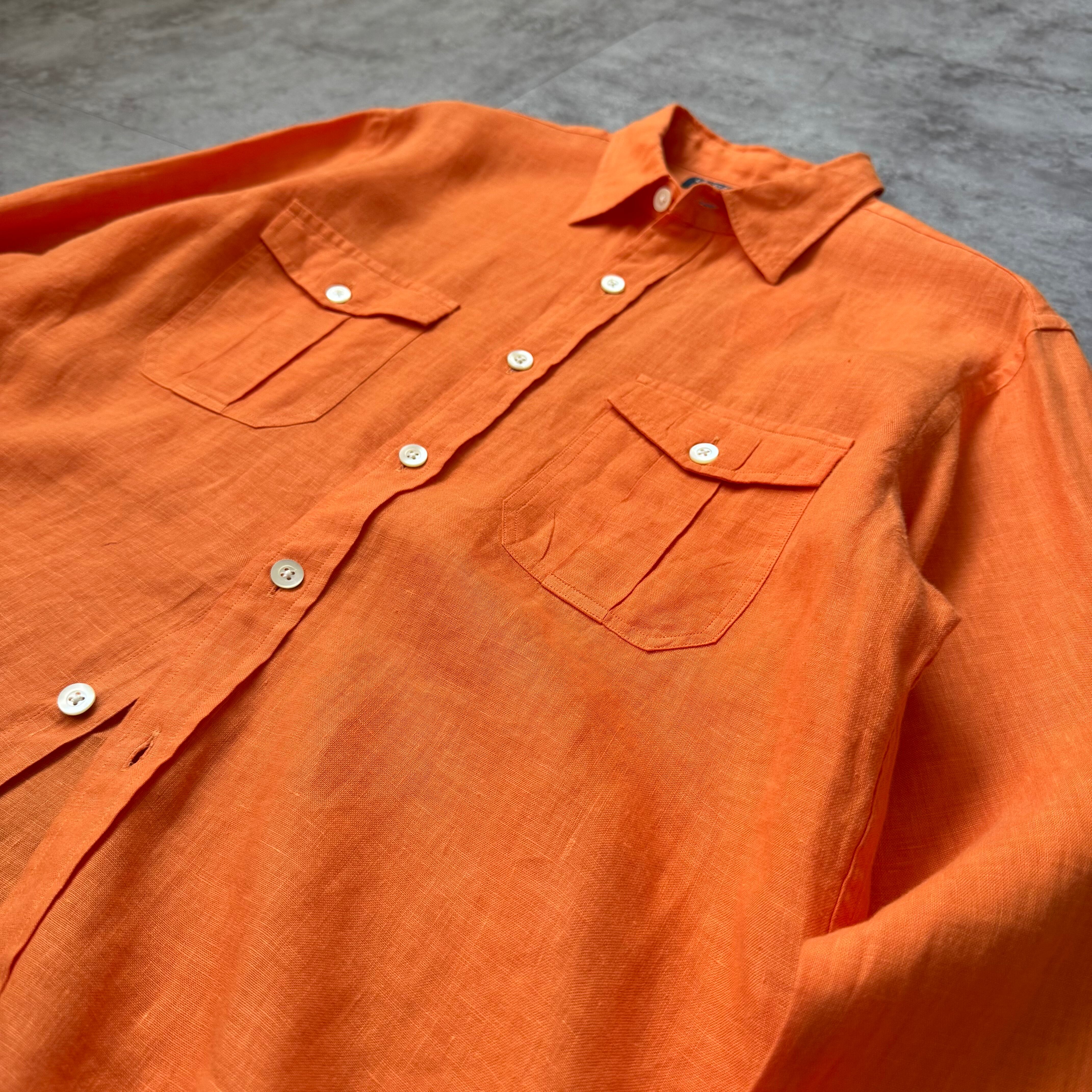 1990's "Polo by Ralph Lauren" 100% Linen Shirt / 90年代 "ポロバイラルフローレン" 100%リネン シャツ オレンジ ポニー無し