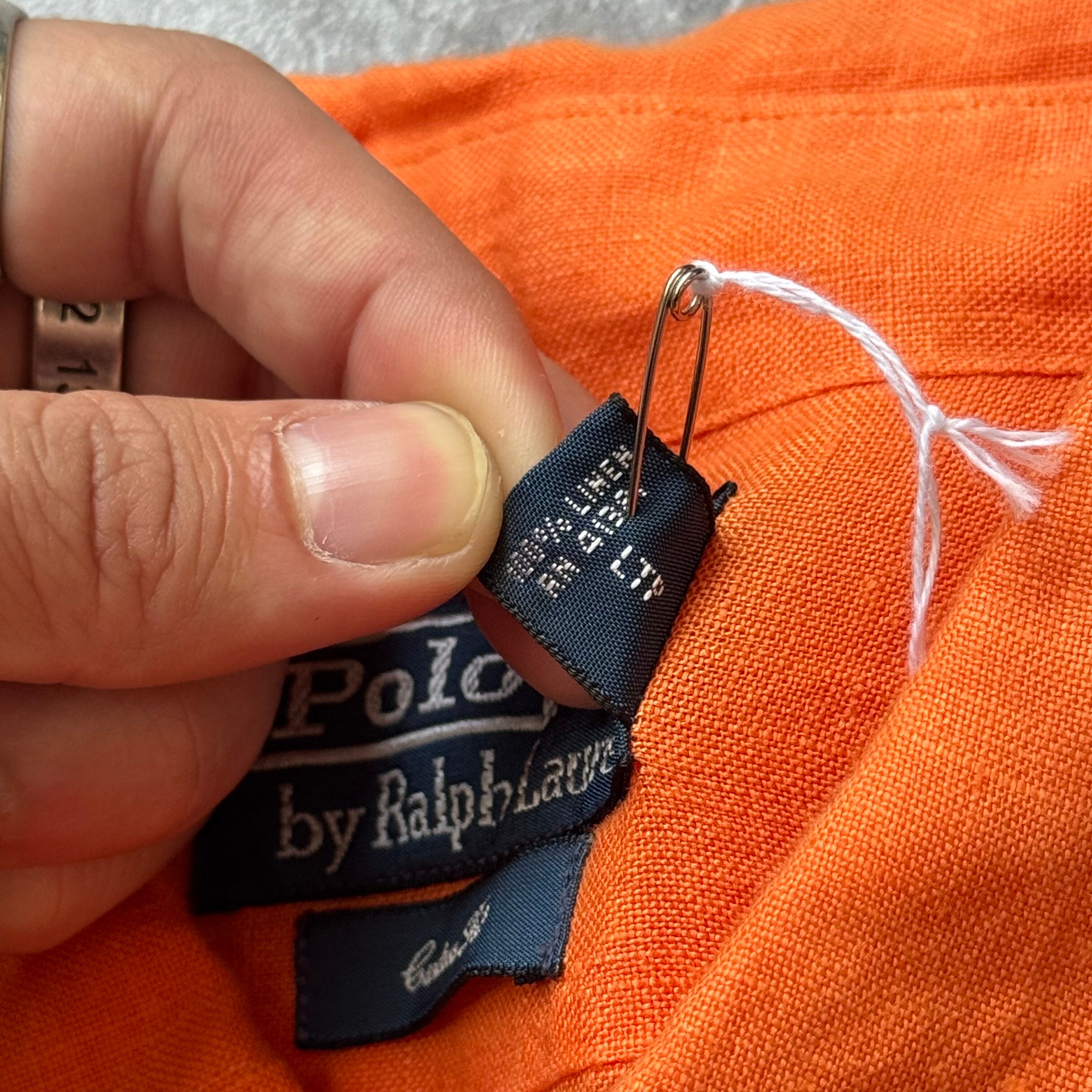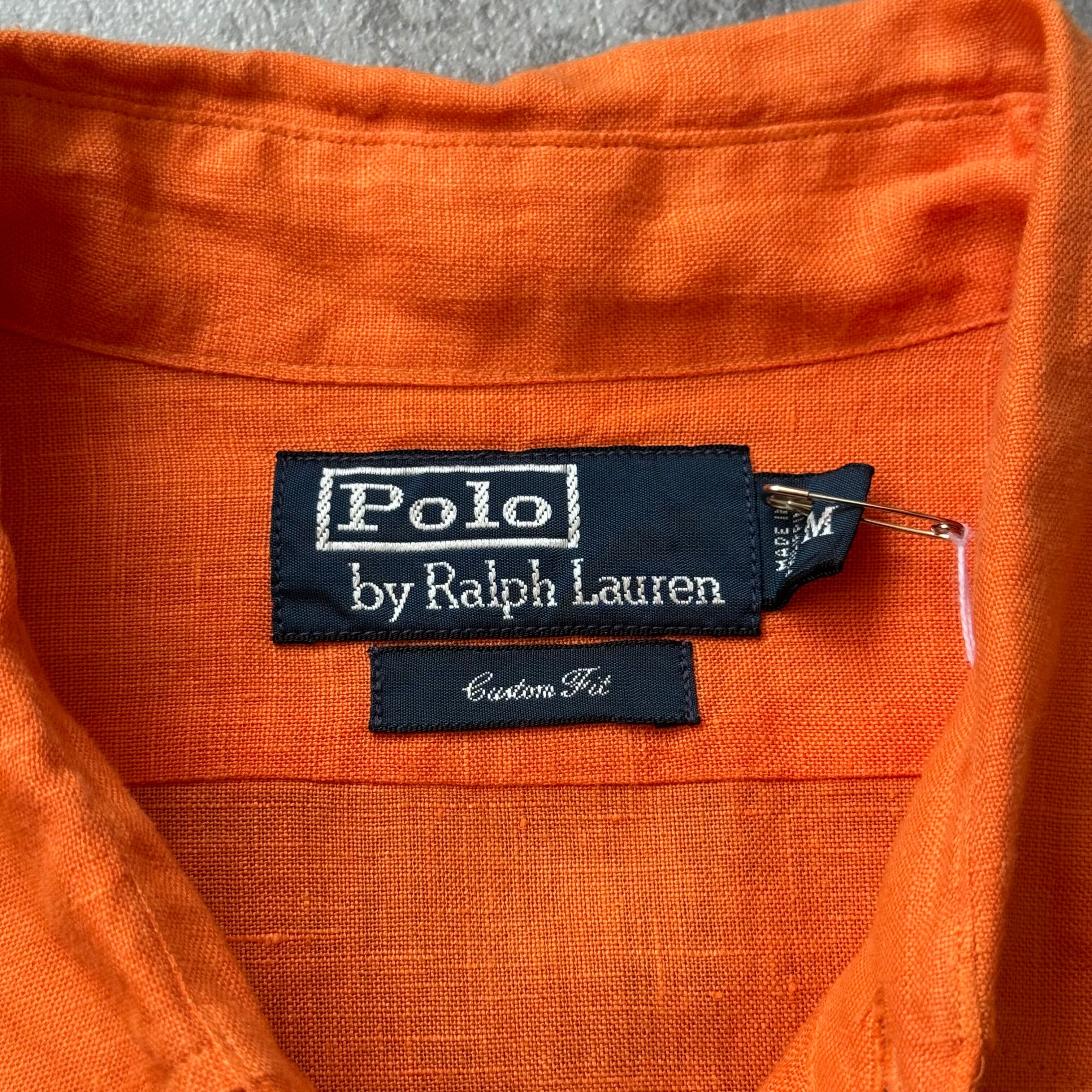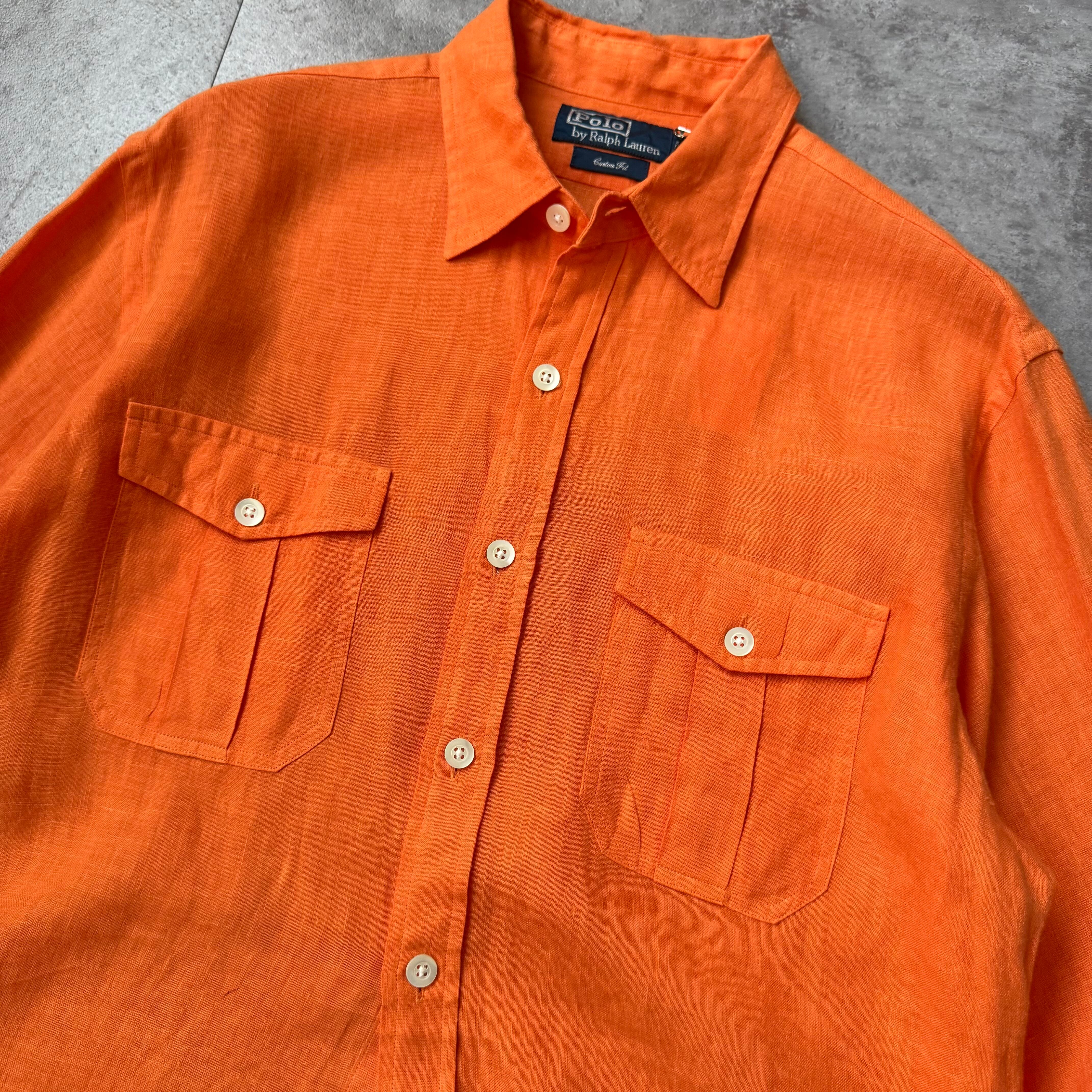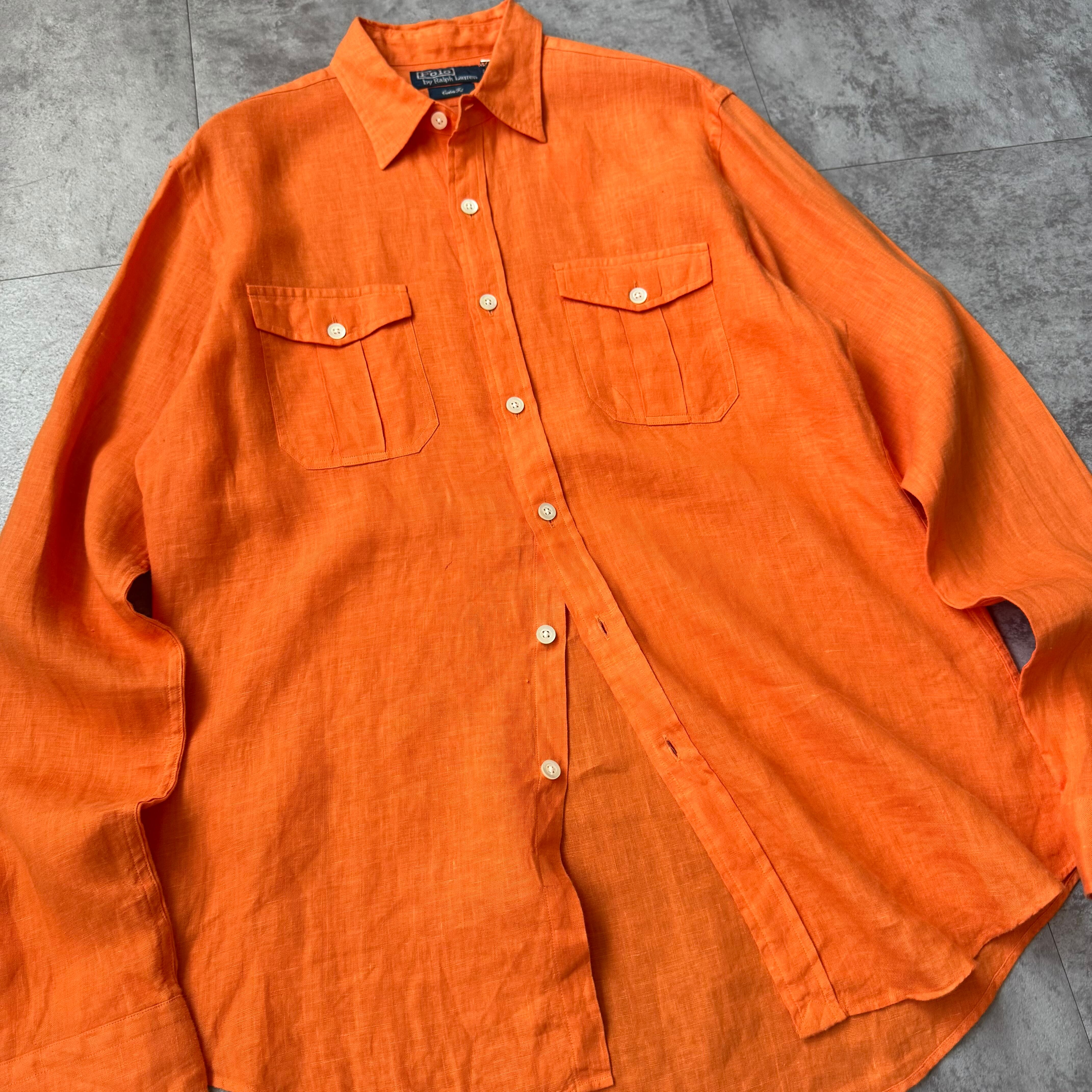 1990's "Polo by Ralph Lauren" 100% Linen Shirt / 90年代 "ポロバイラルフローレン" 100%リネン シャツ オレンジ ポニー無し