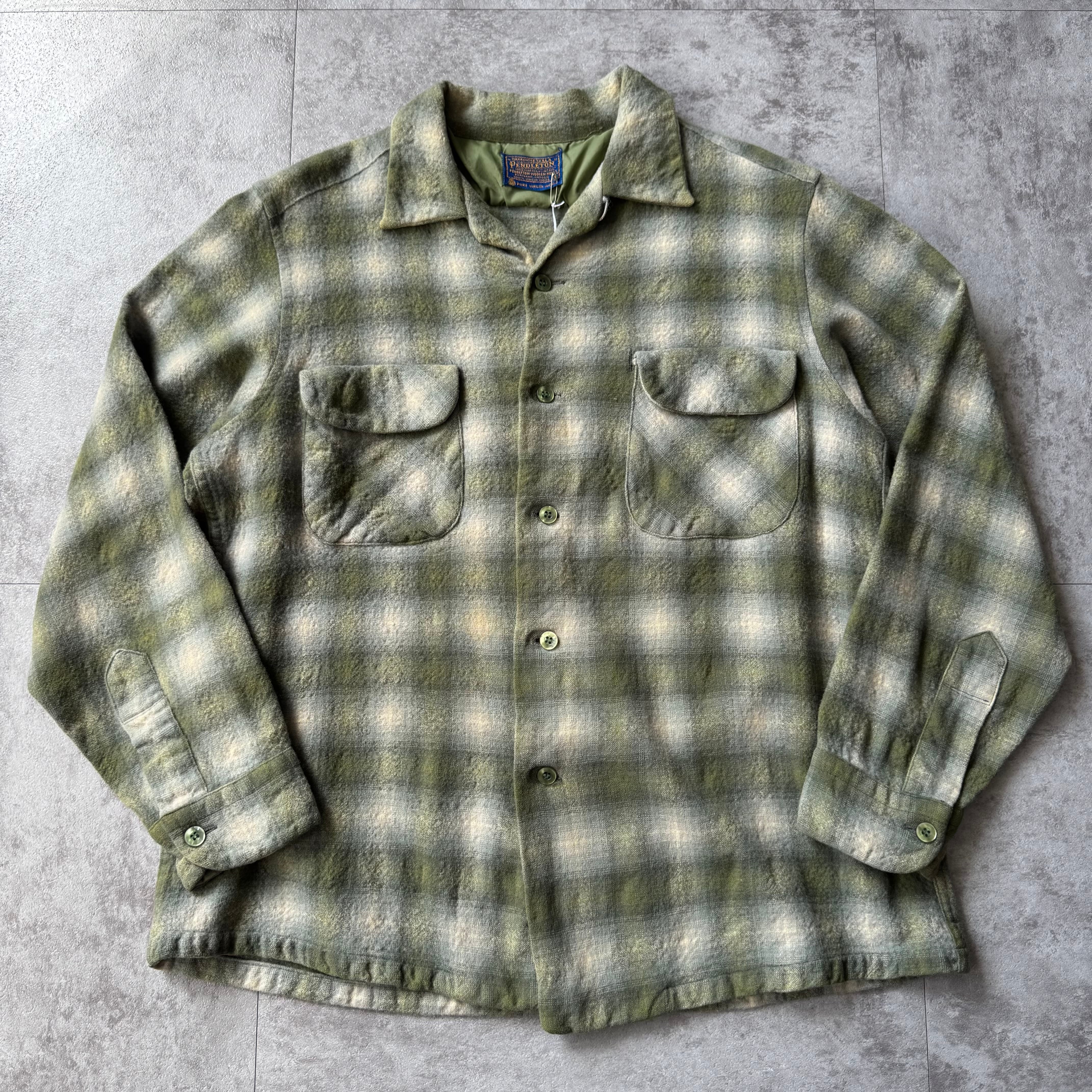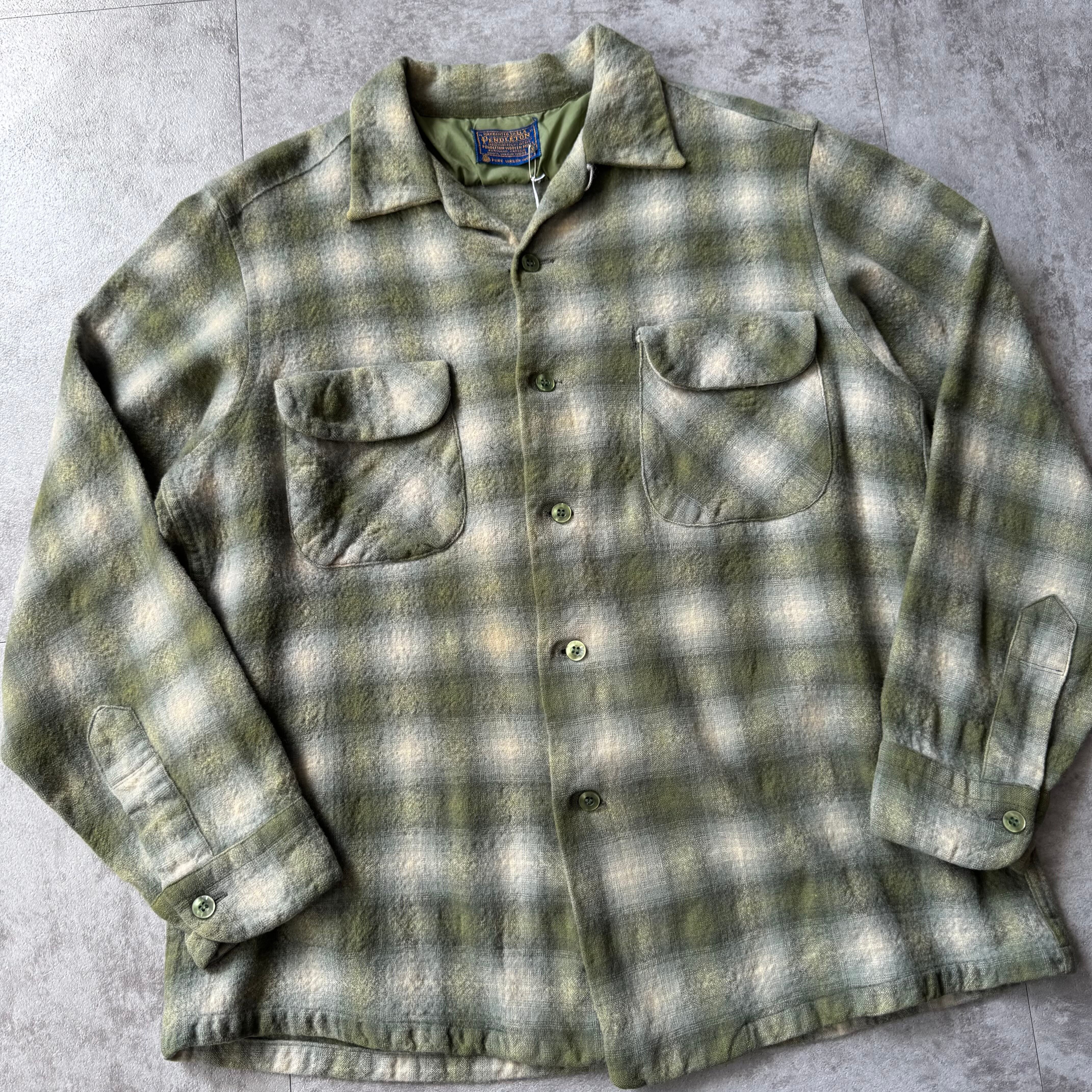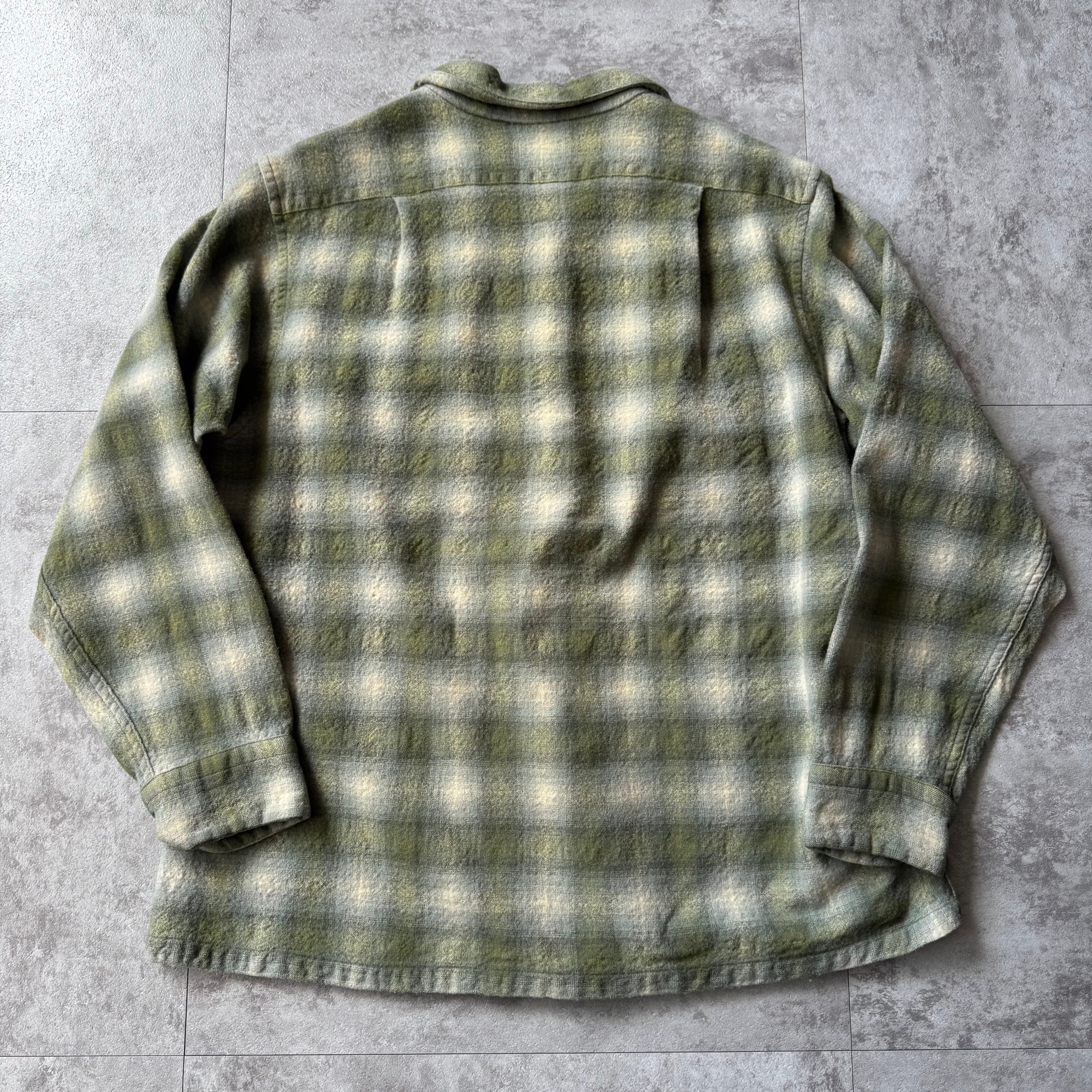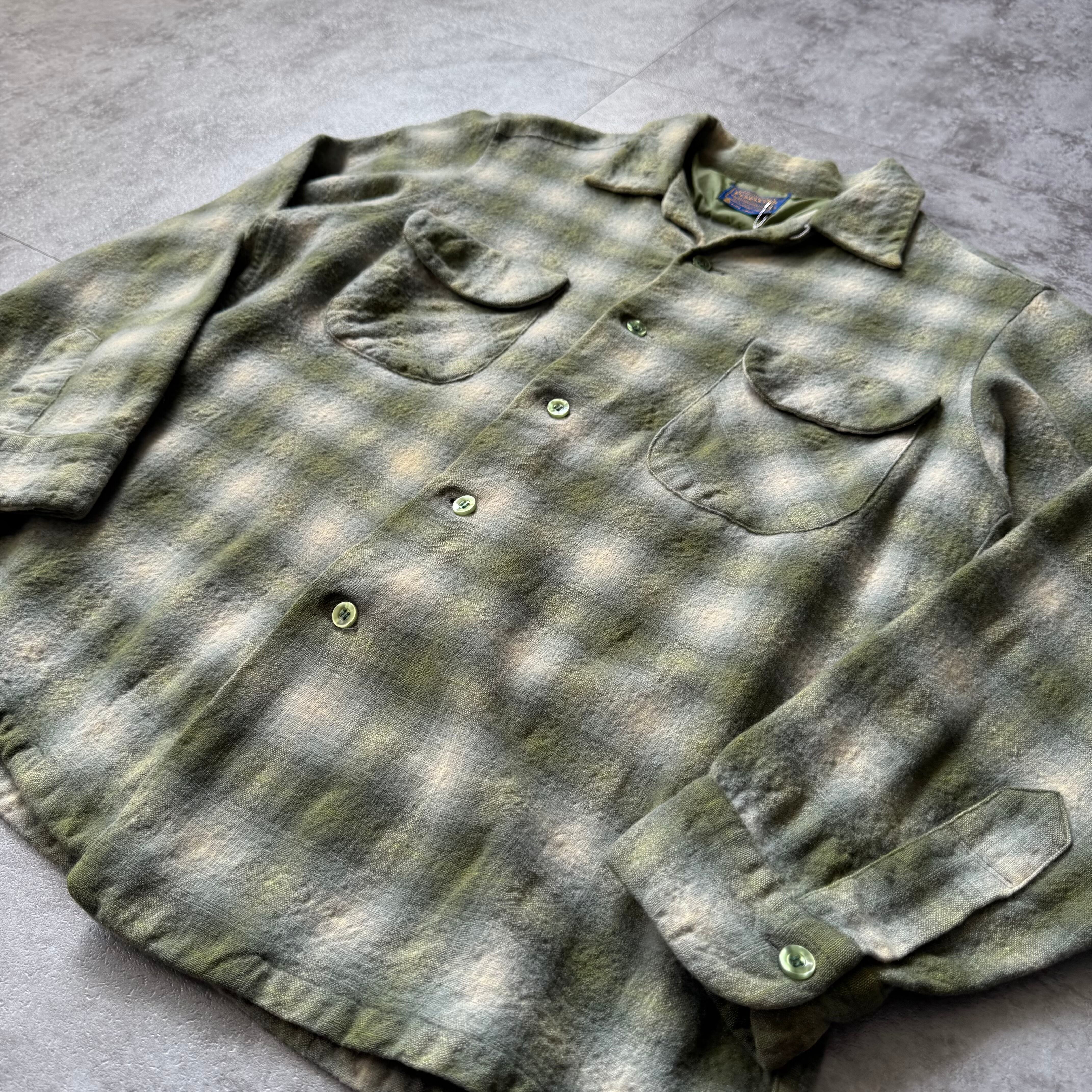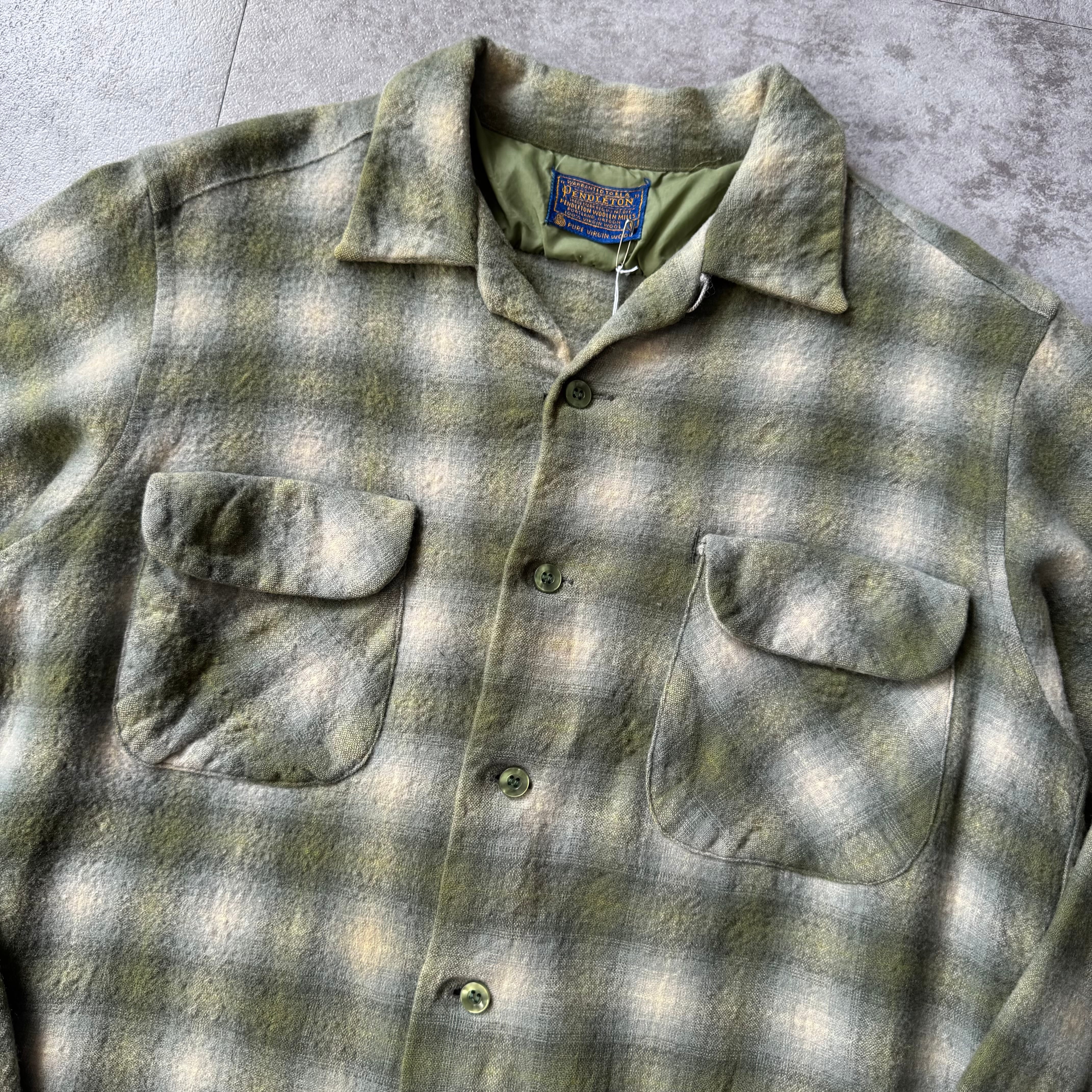 〜1960's "PENDLETON" Ombre Shadow Plaid Wool Board Shirt / 〜60年代 "ペンドルトン" オンブレシャドーチェック ウール 開襟 ボードシャツ