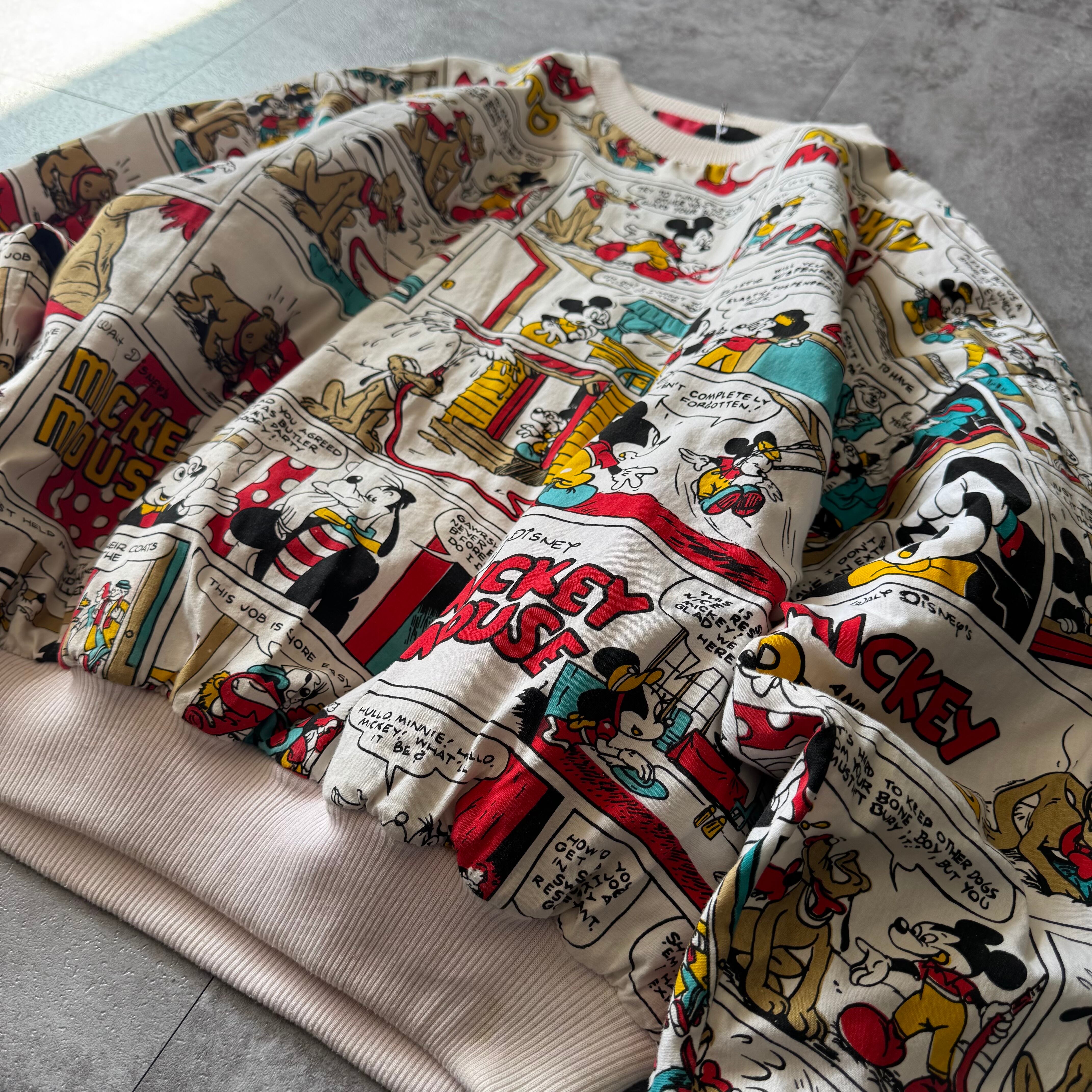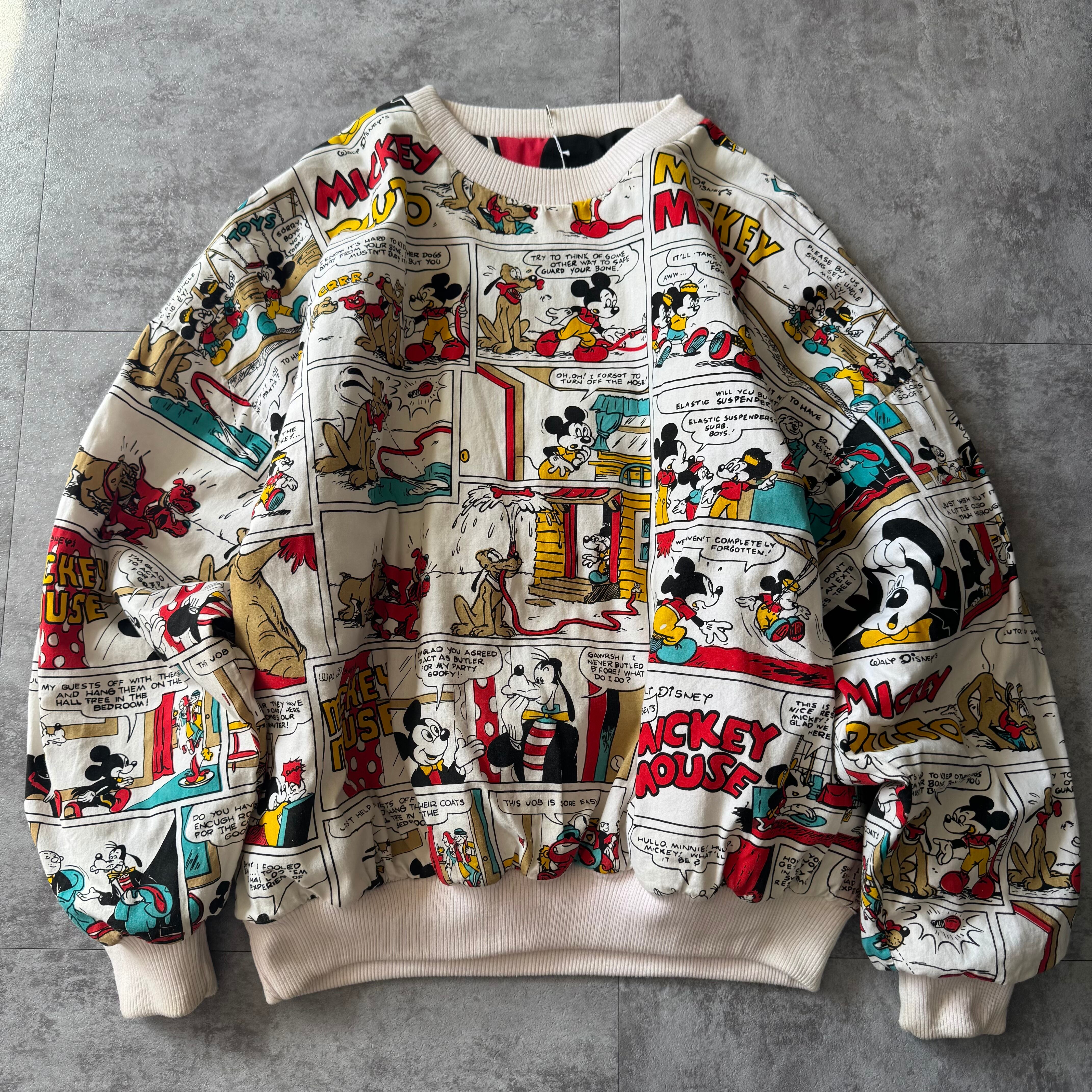 1980's "Disney" 2way Comic Over Print Sweat / 80年代 "ディズニー" リバーシブル コミック オーバープリント スウェット ミッキー ミニー