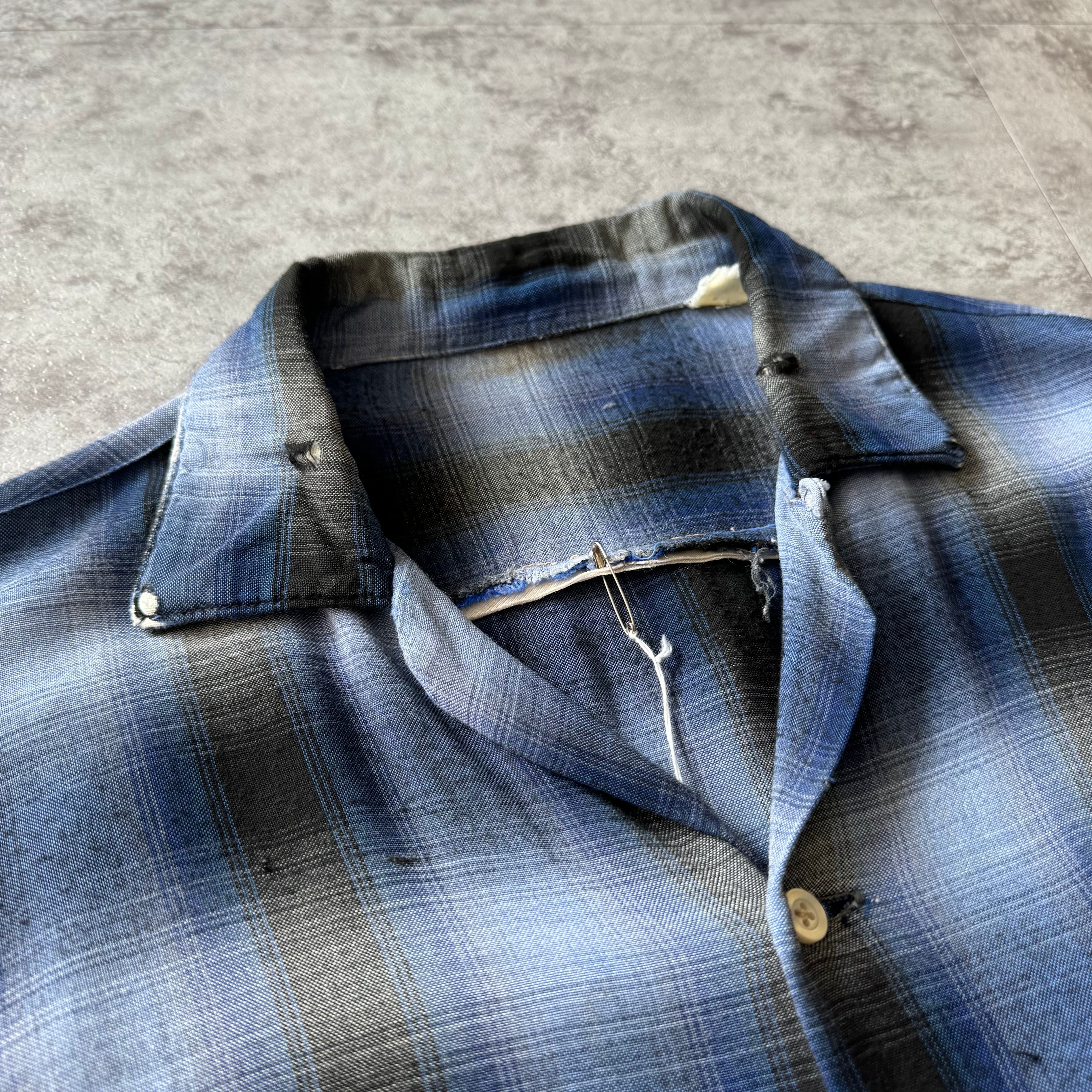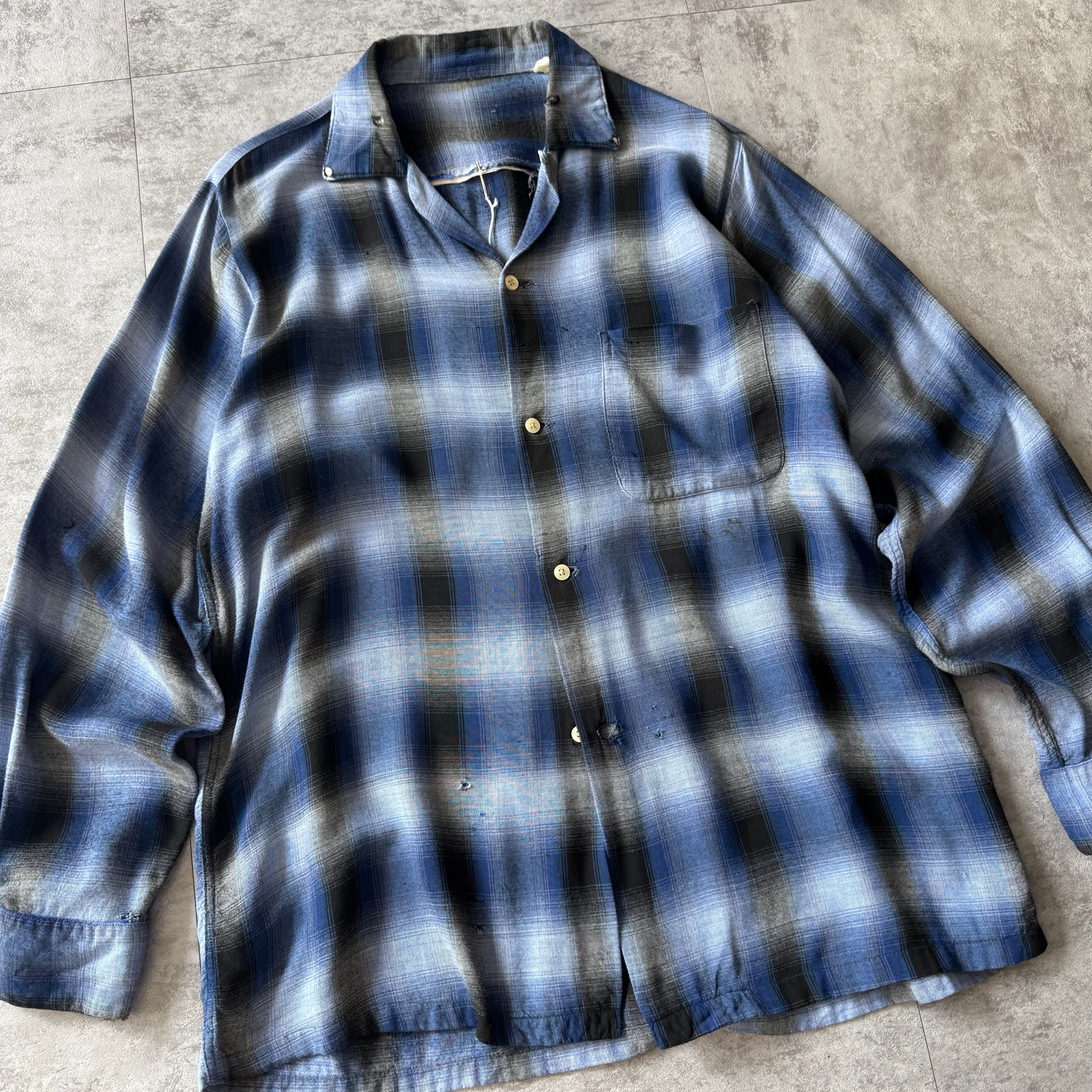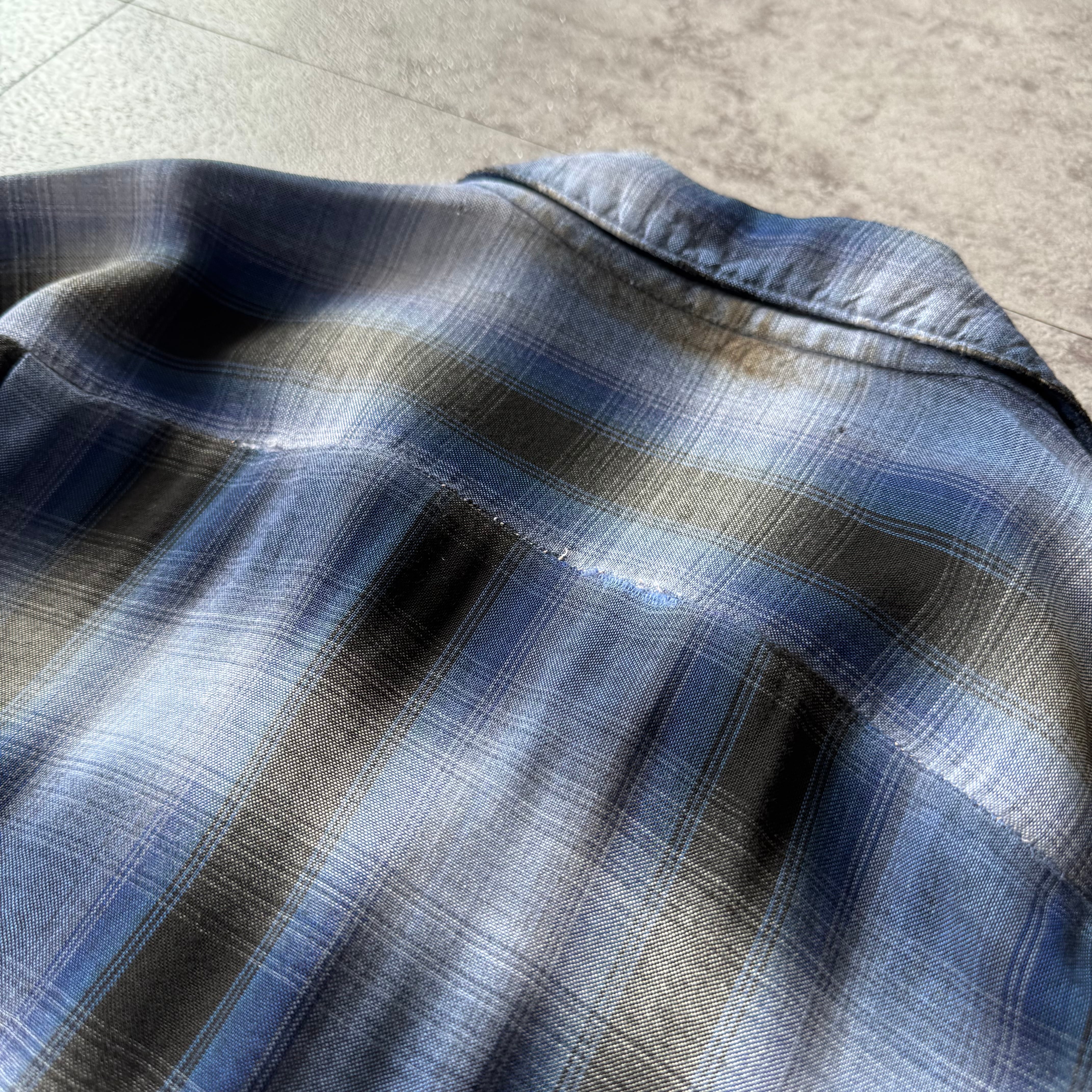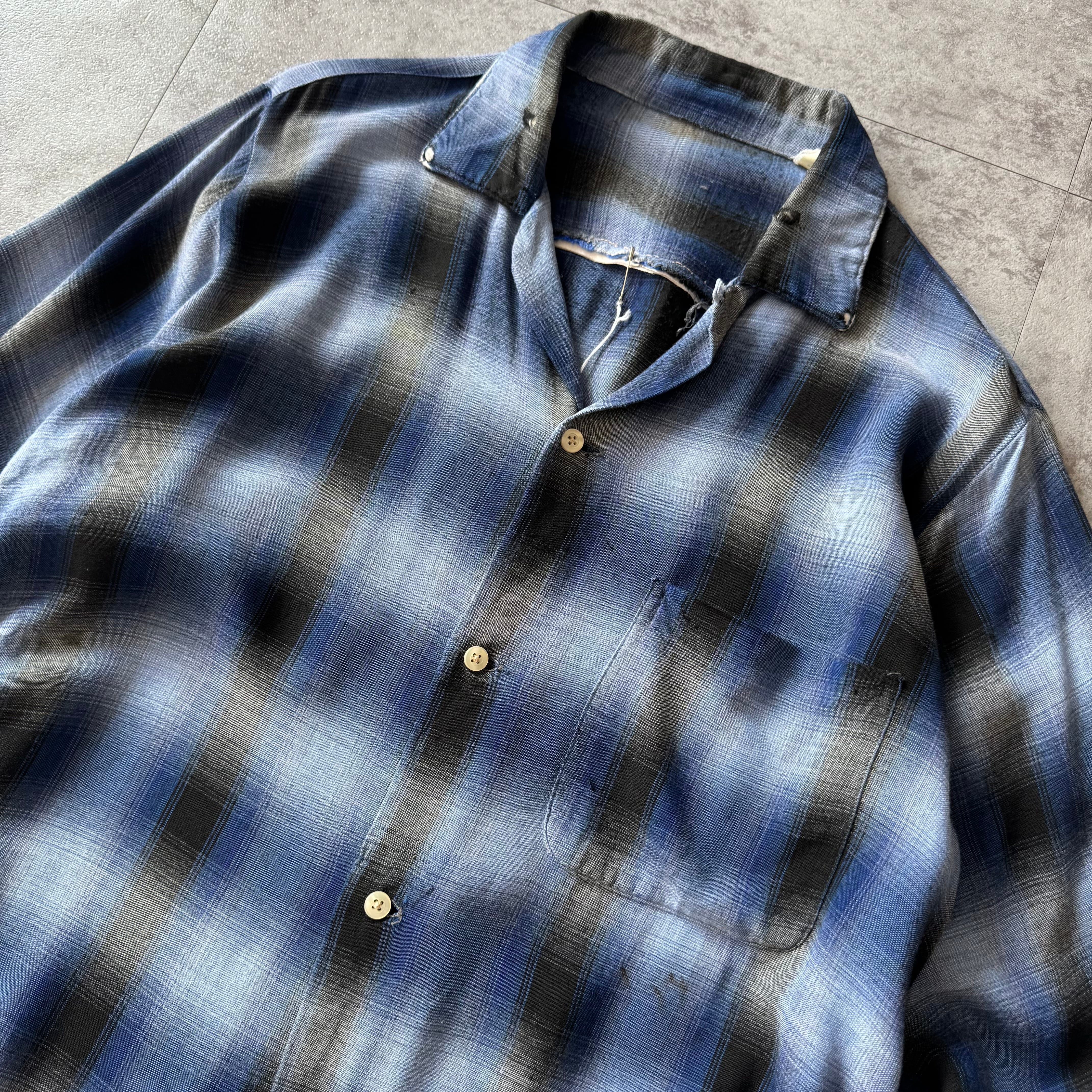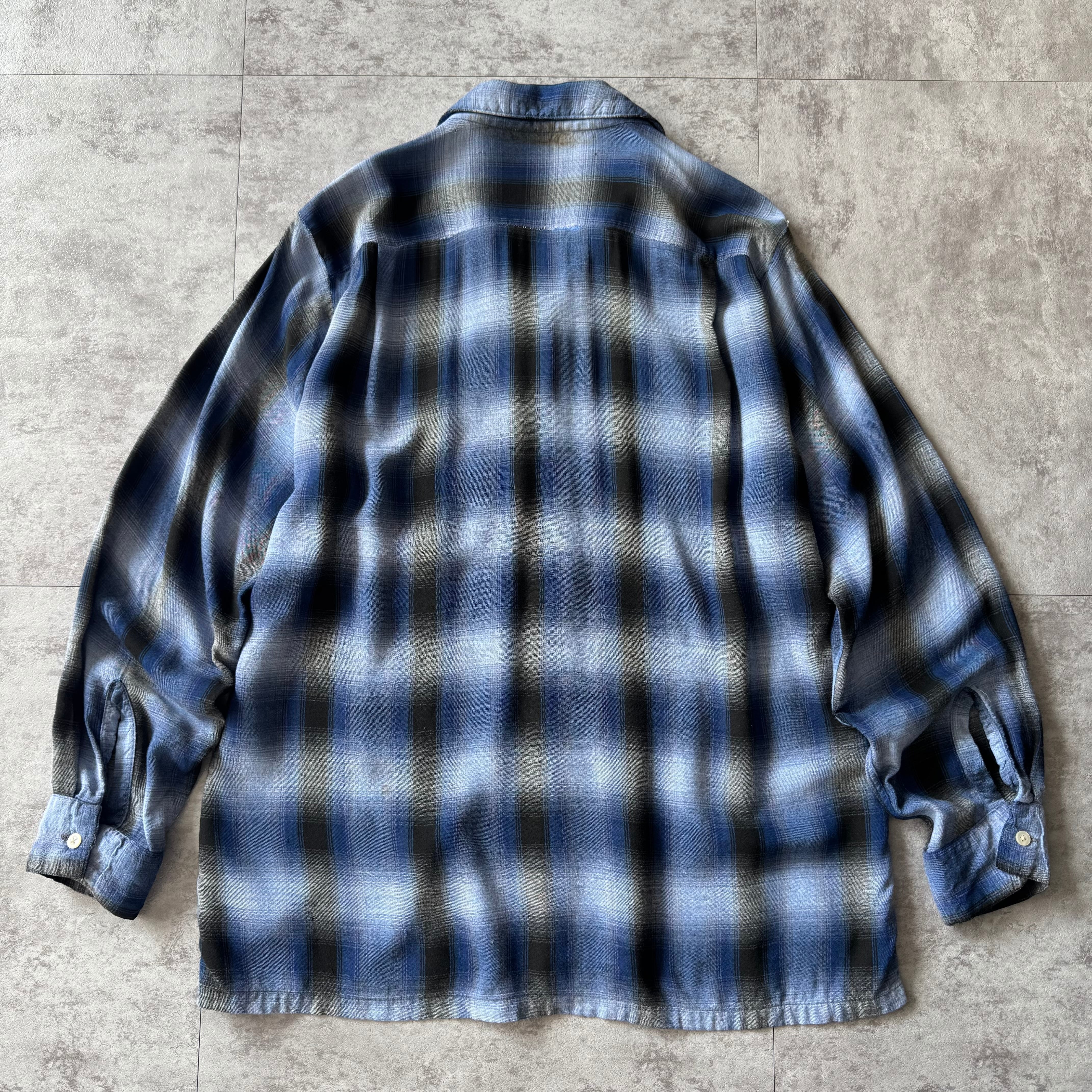 1960's "ARROW" Ombre Shadow Plaid Rayon Loop Collar Shirt / 60年代 "アロー" オンブレシャドーチェック レーヨン 開襟シャツ