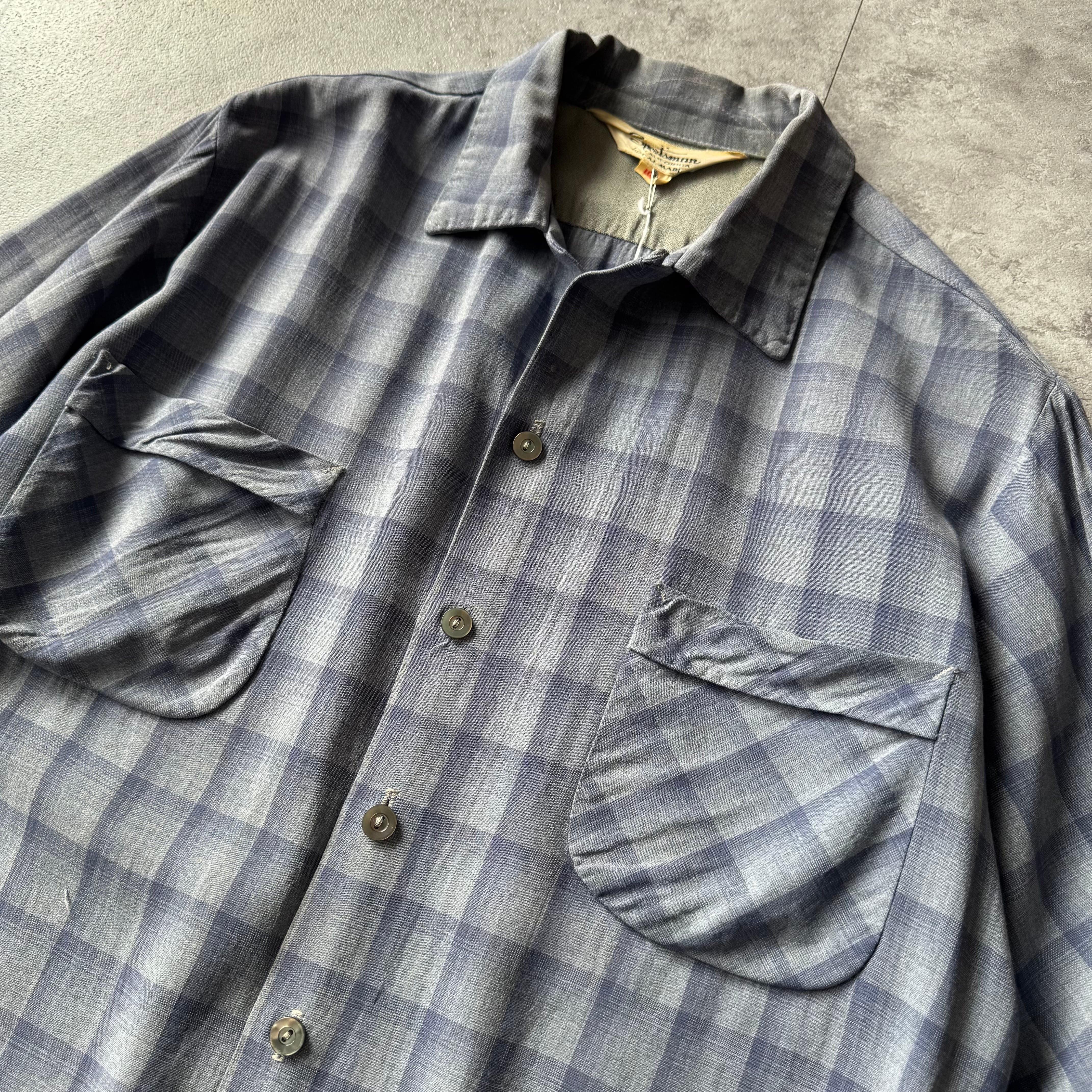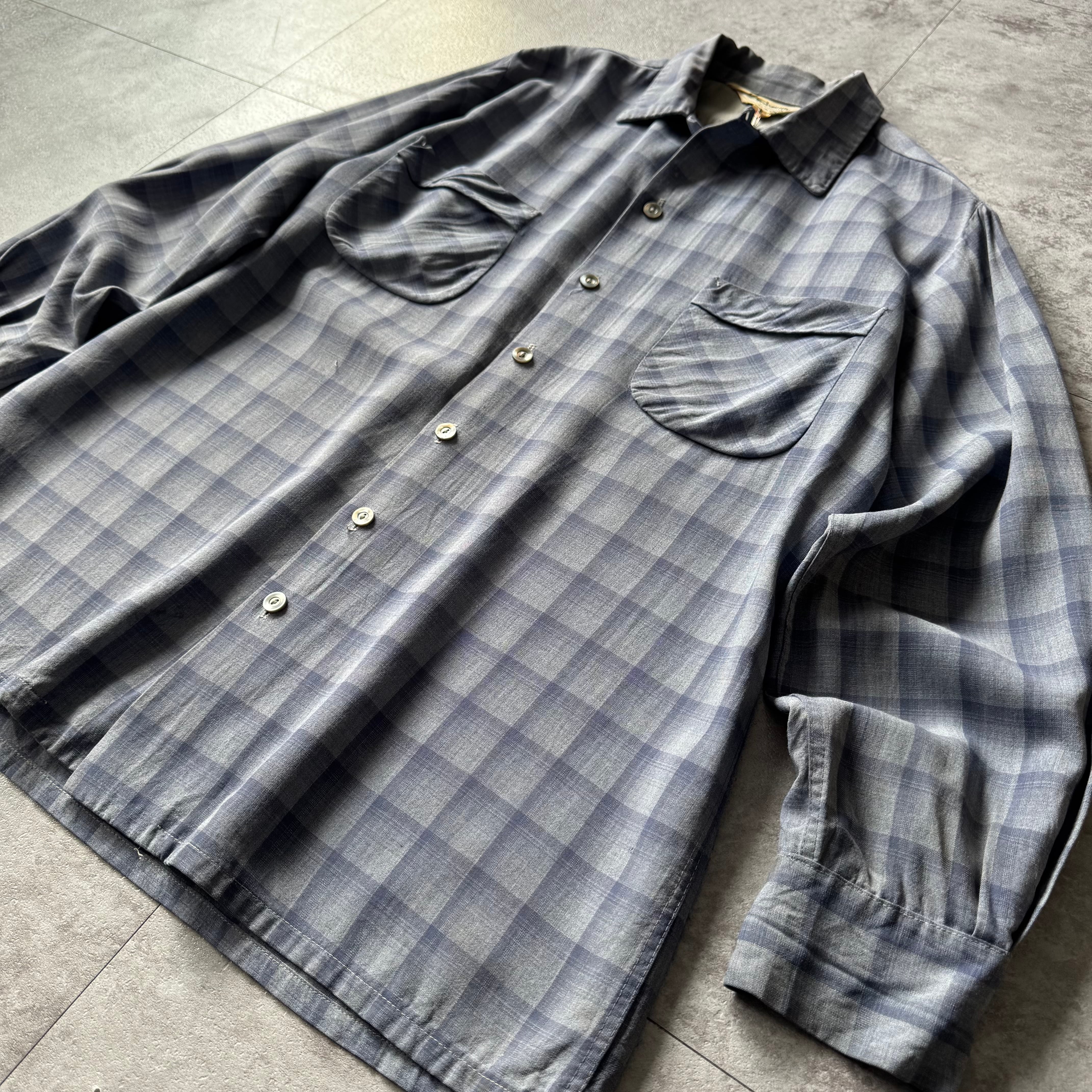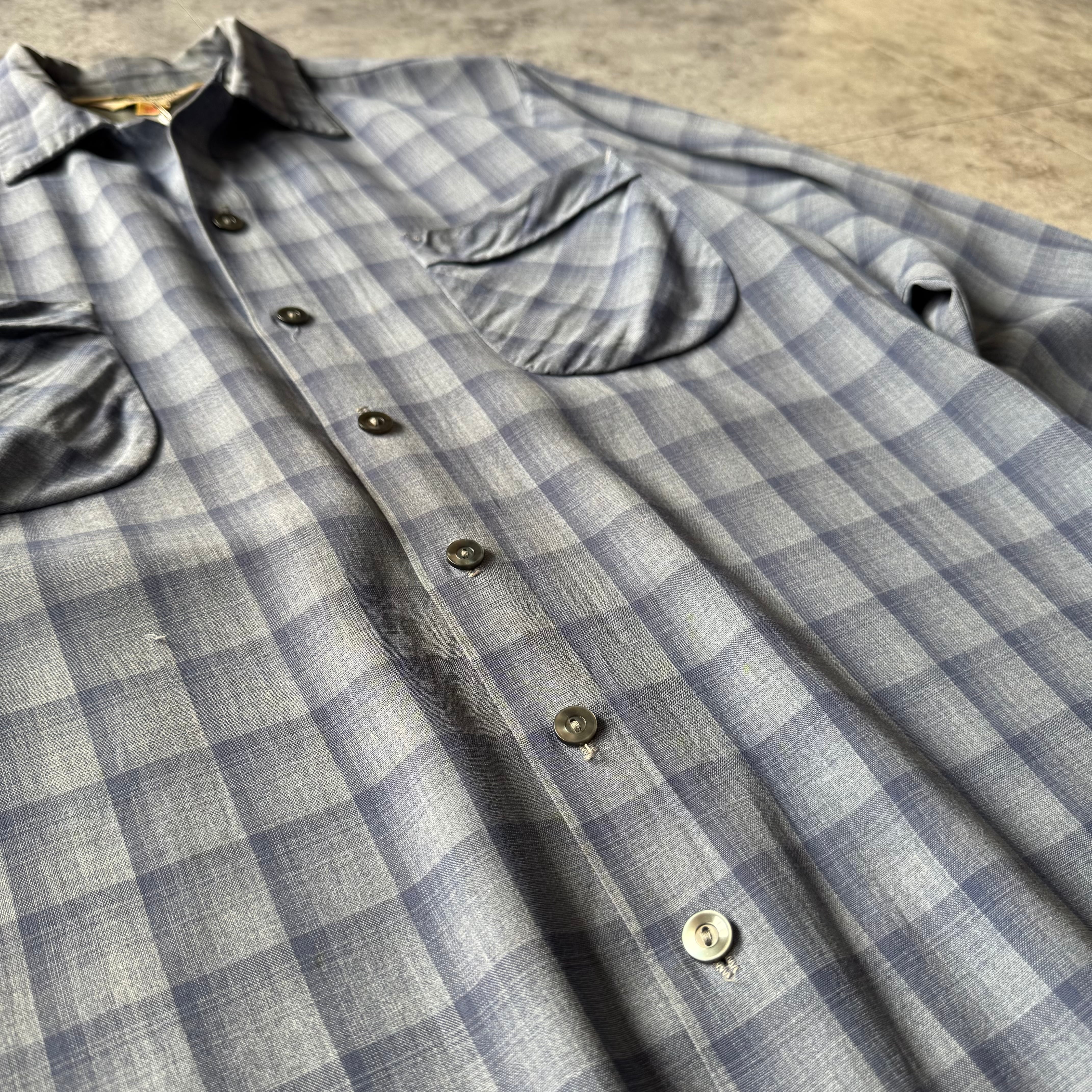 1950's〜 "Sportsman" Shadow Plaid Rayon Loop Collar Shirt made in California / 50年代〜 "スポーツマン" シャドーチェック レーヨン 開襟シャツ カリフォルニア製 ハンドステッチ