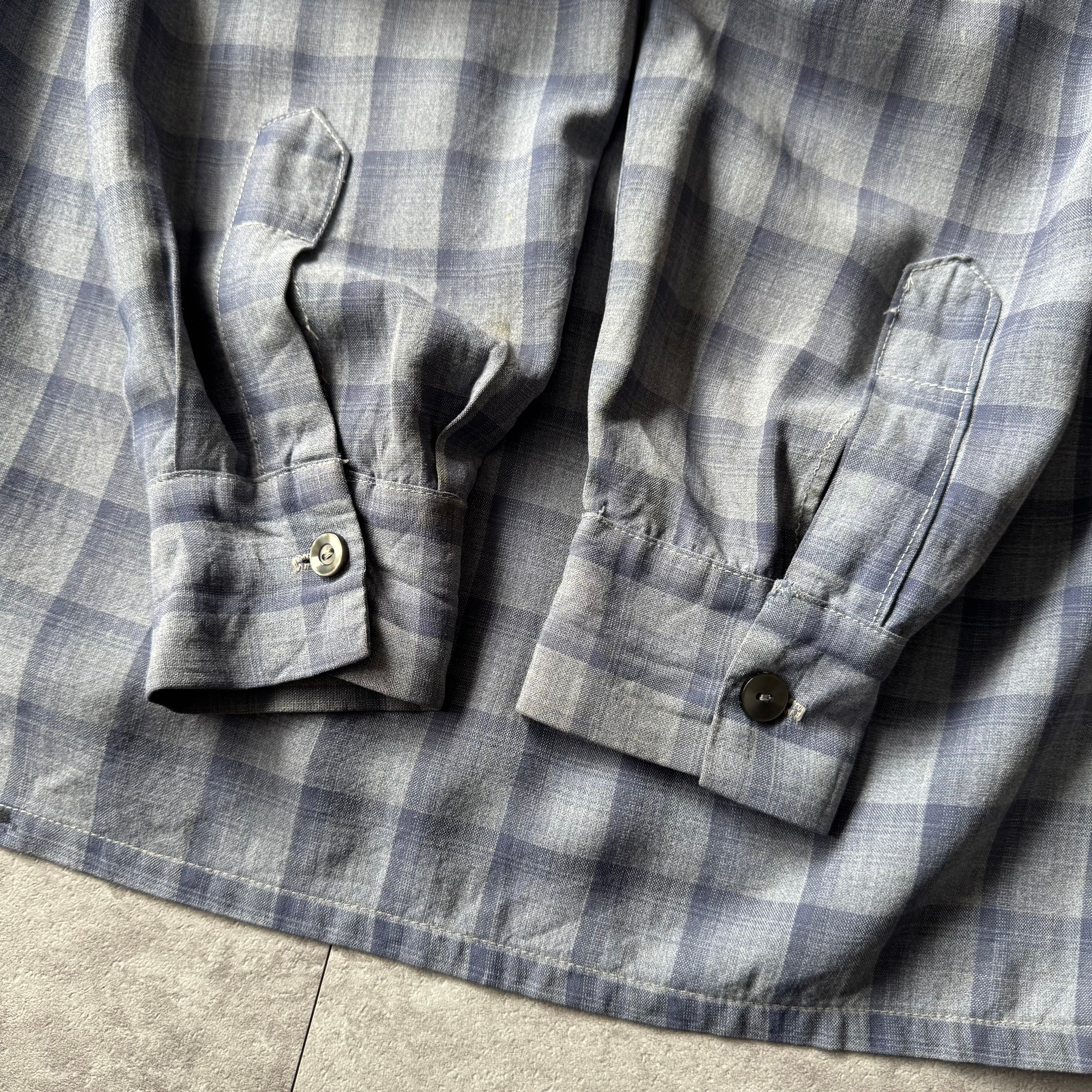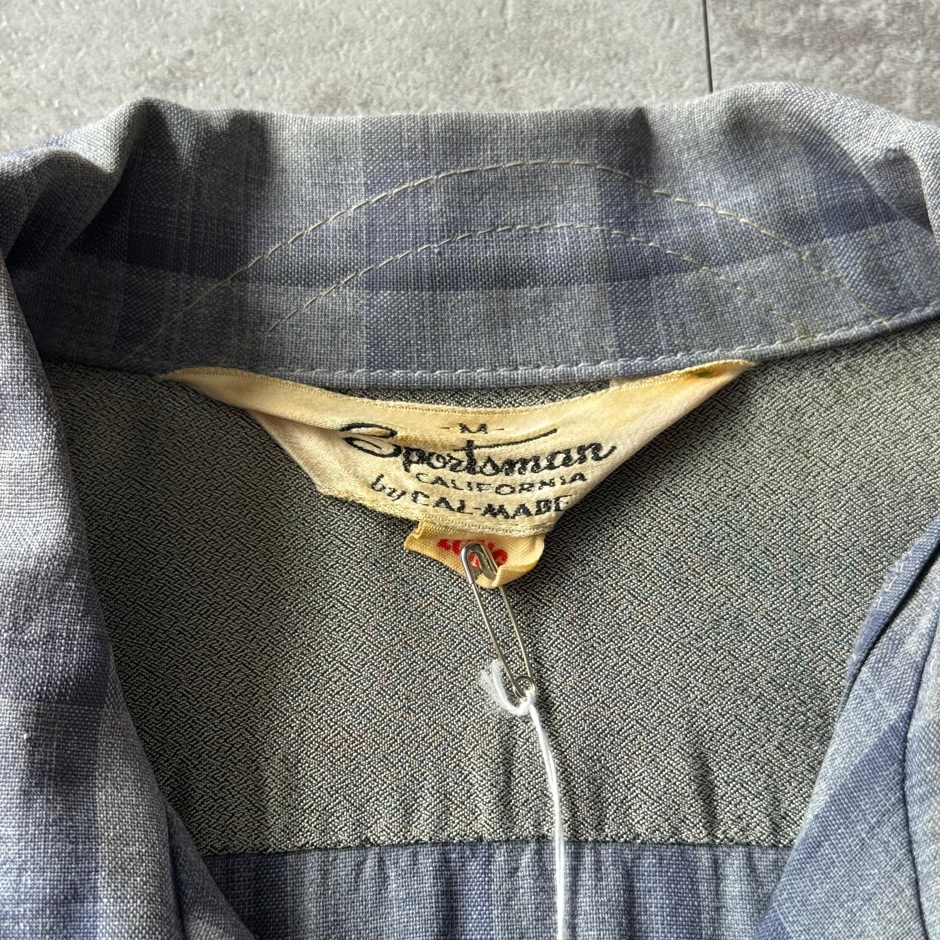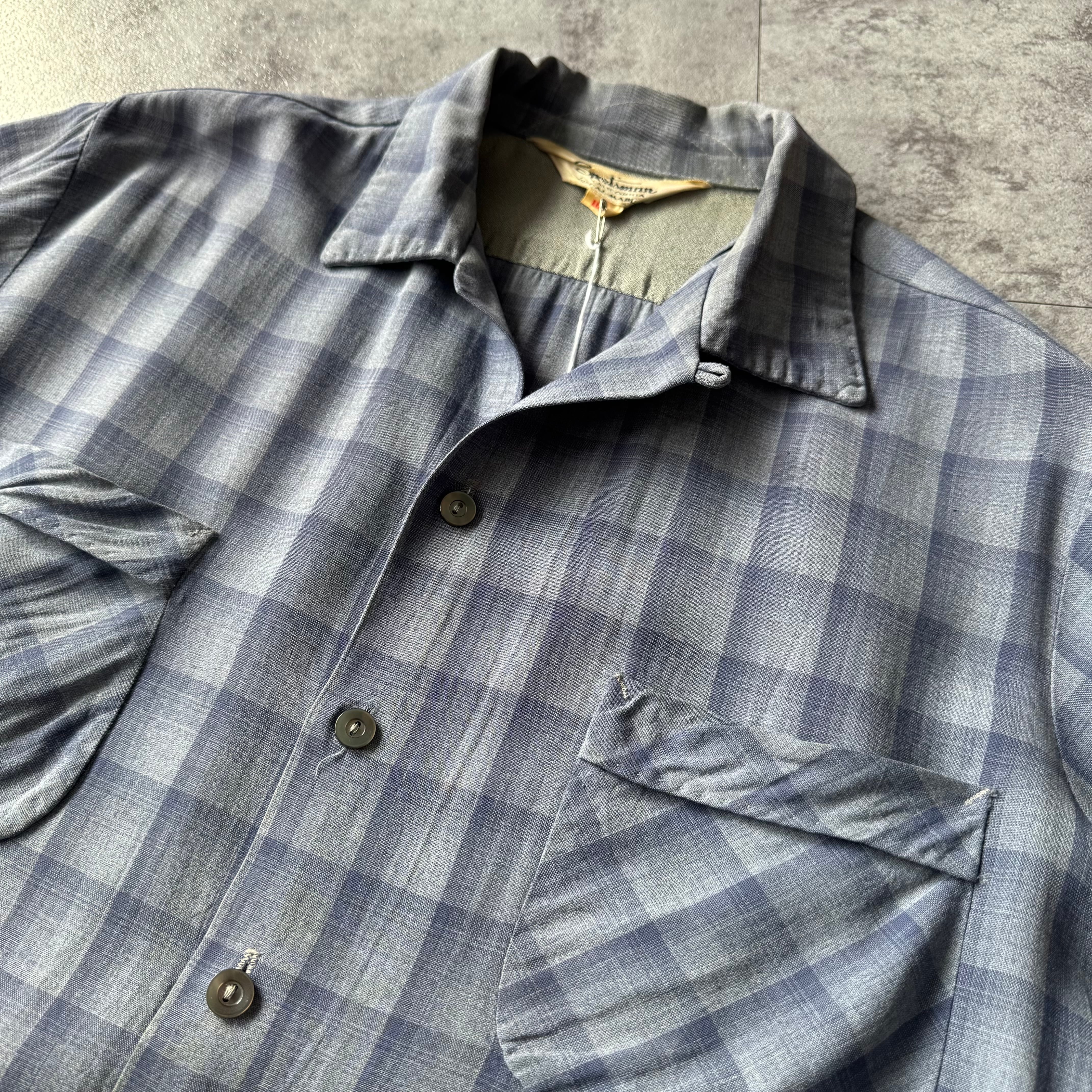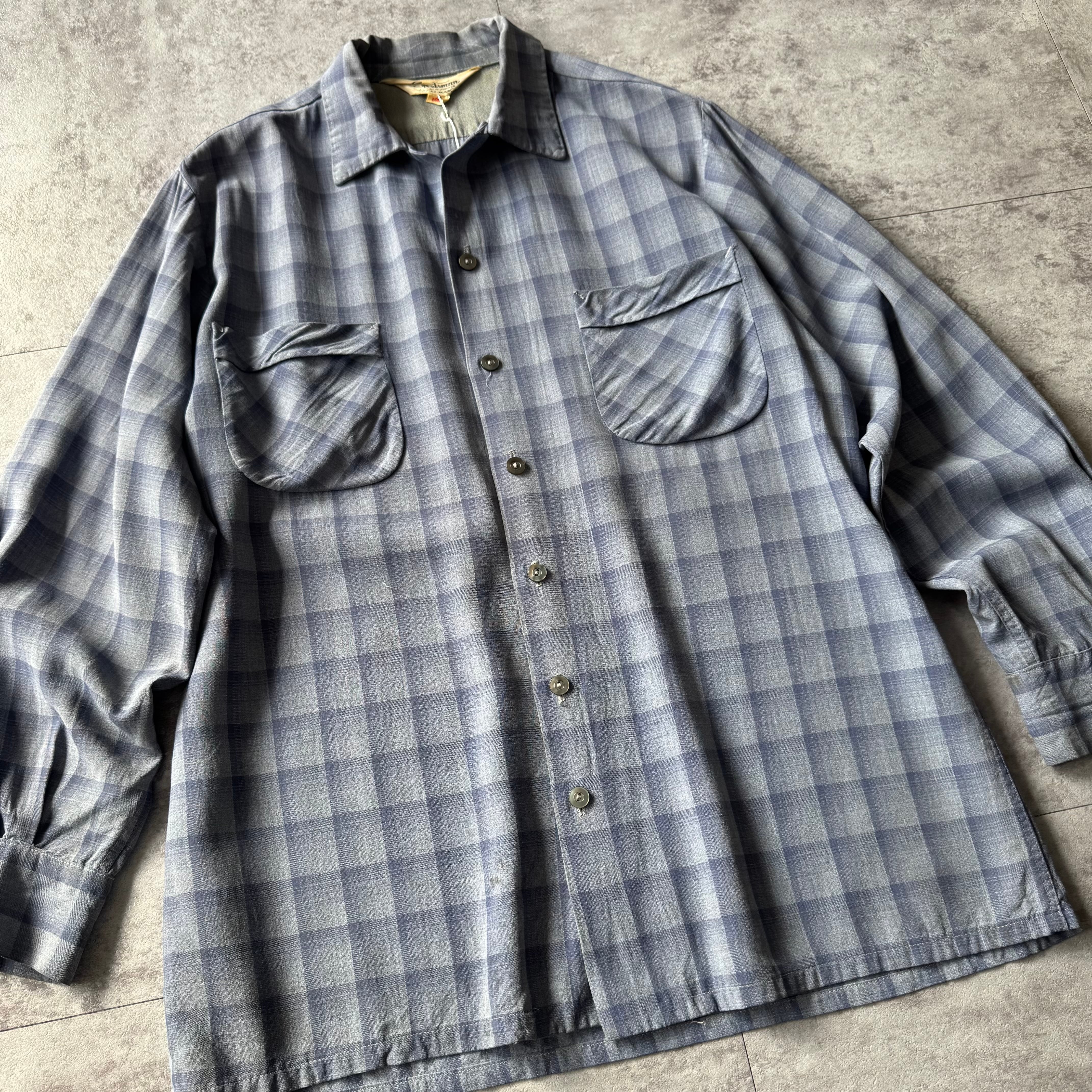1950's〜 "Sportsman" Shadow Plaid Rayon Loop Collar Shirt made in California / 50年代〜 "スポーツマン" シャドーチェック レーヨン 開襟シャツ カリフォルニア製 ハンドステッチ