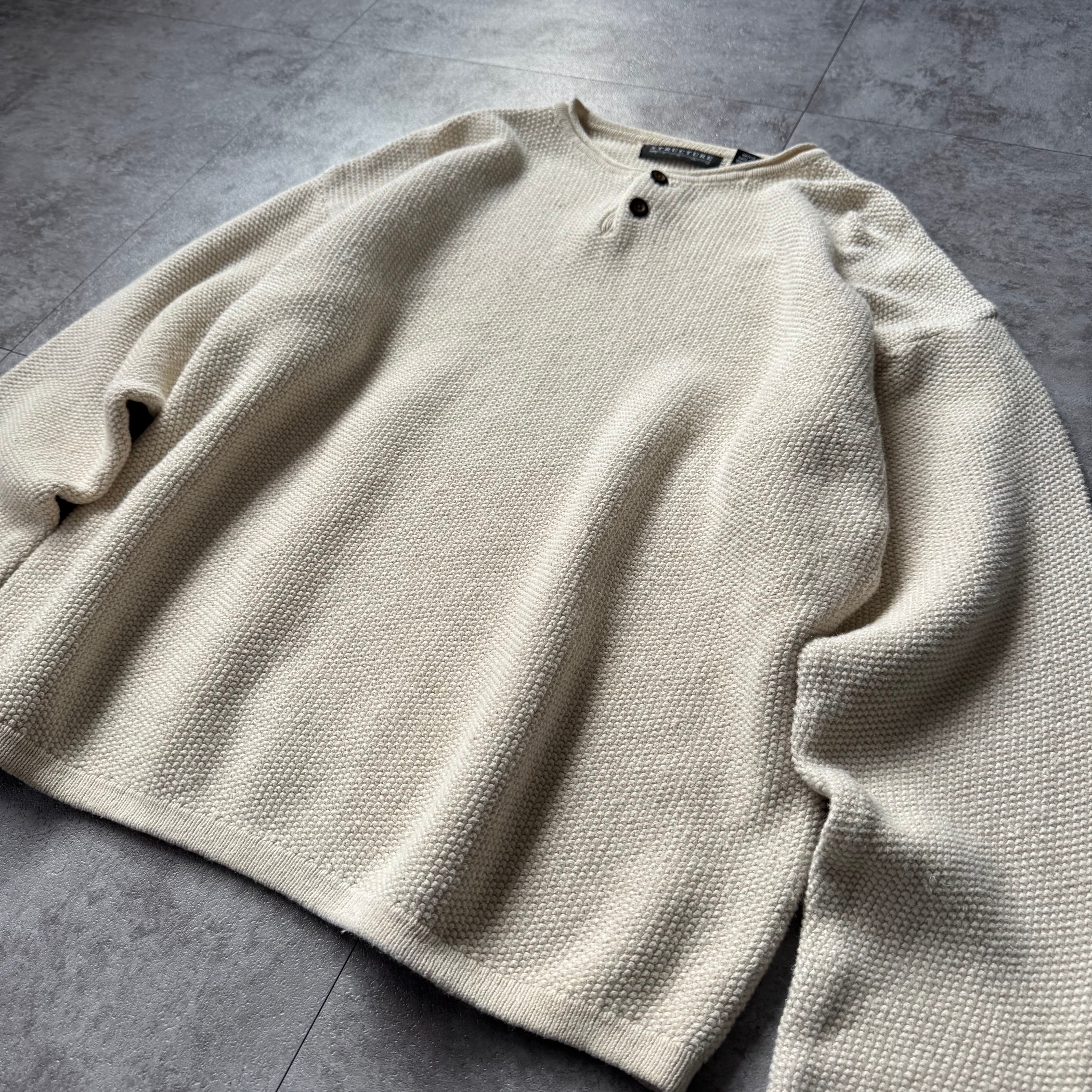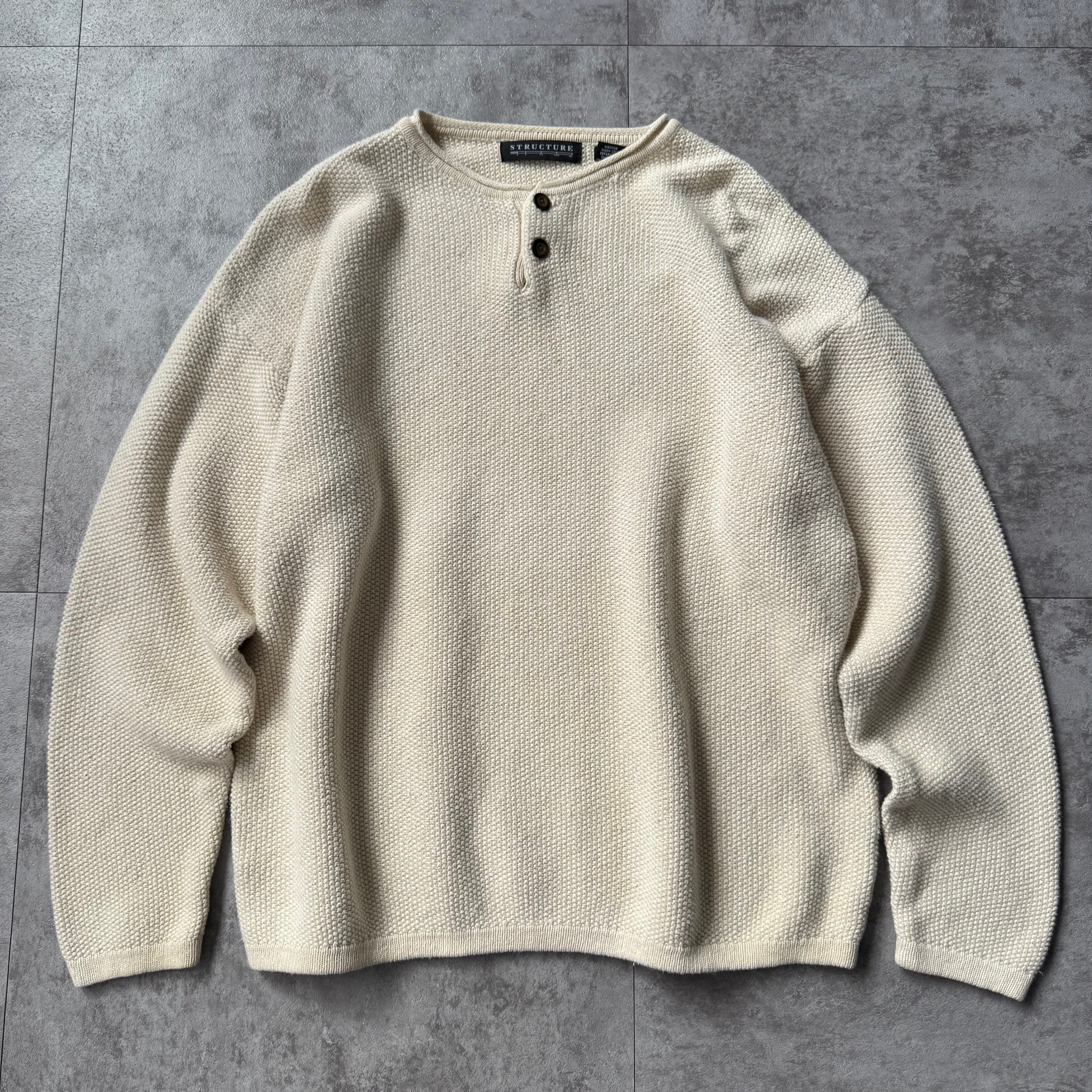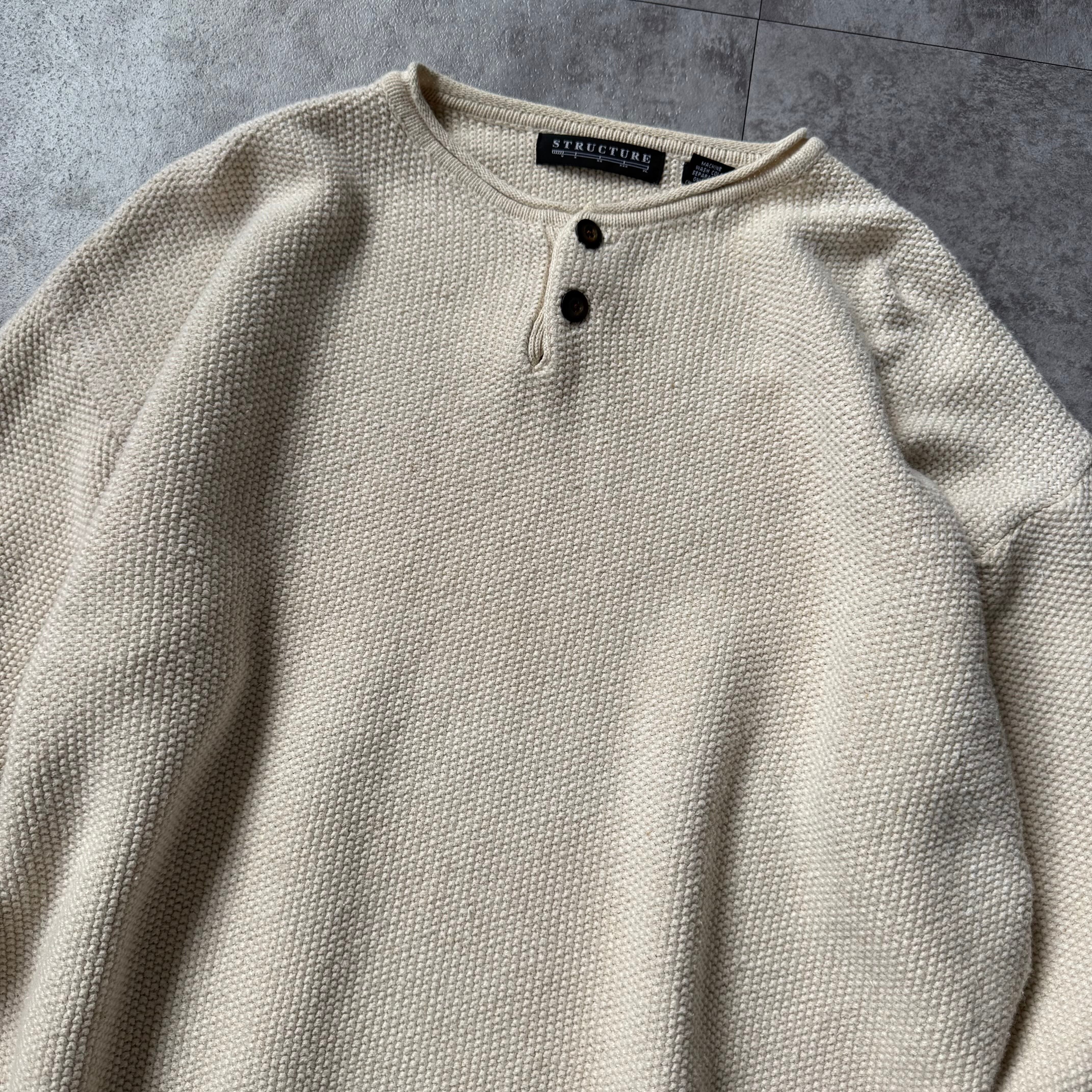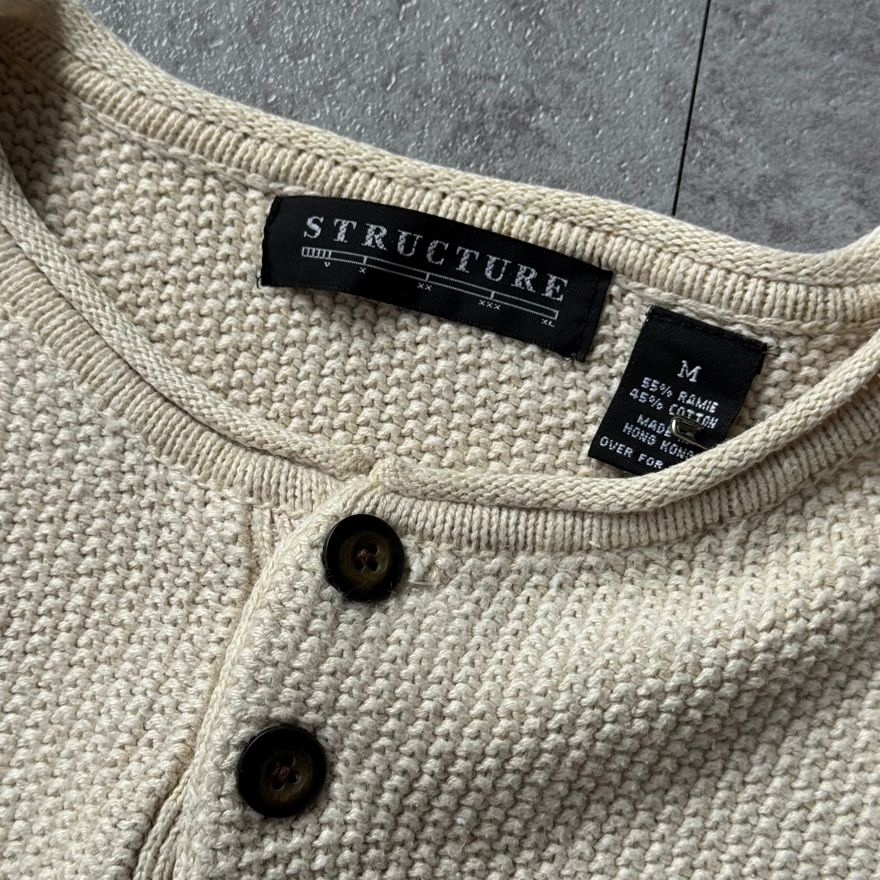 00's "STRUCTURE" Henley Neck Cotton×Ramie Knit / 2000年代 "ストラクチャー" Hネック コットン×ラミー ニット