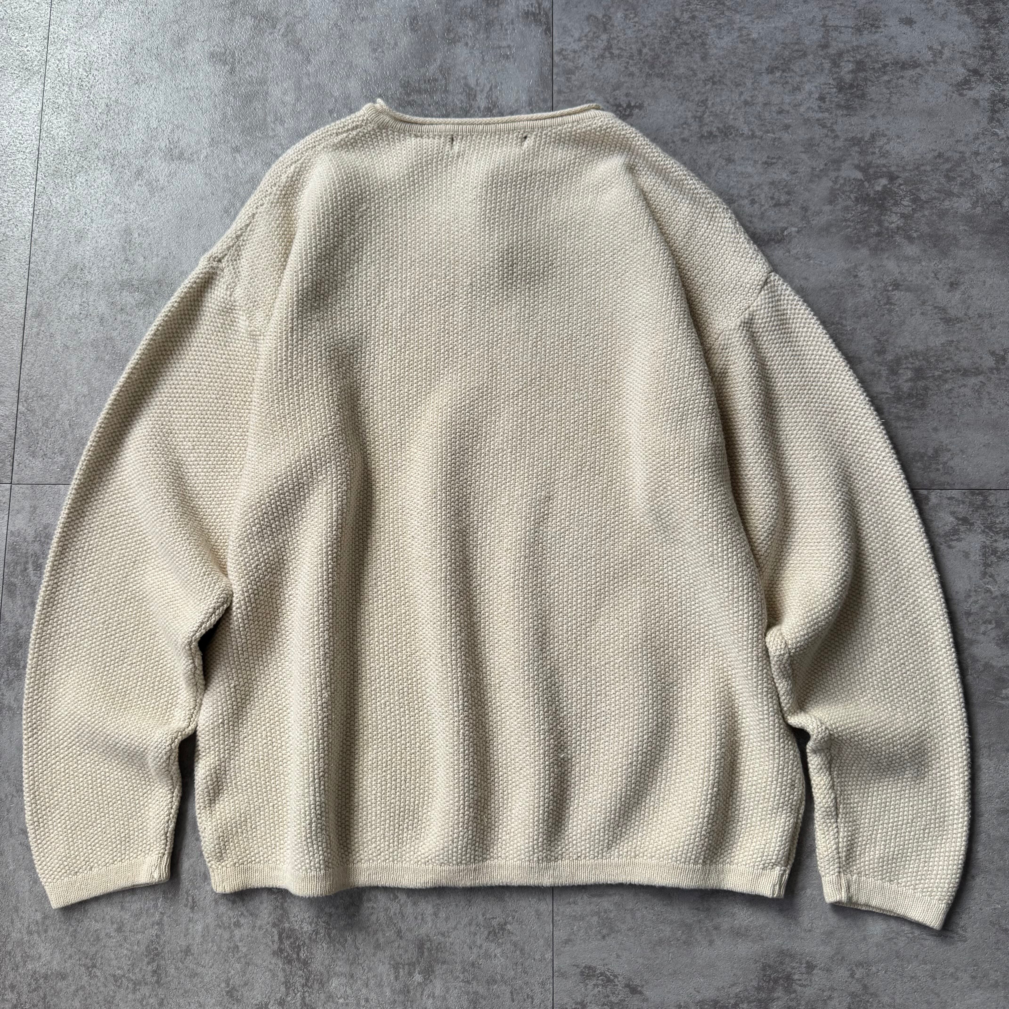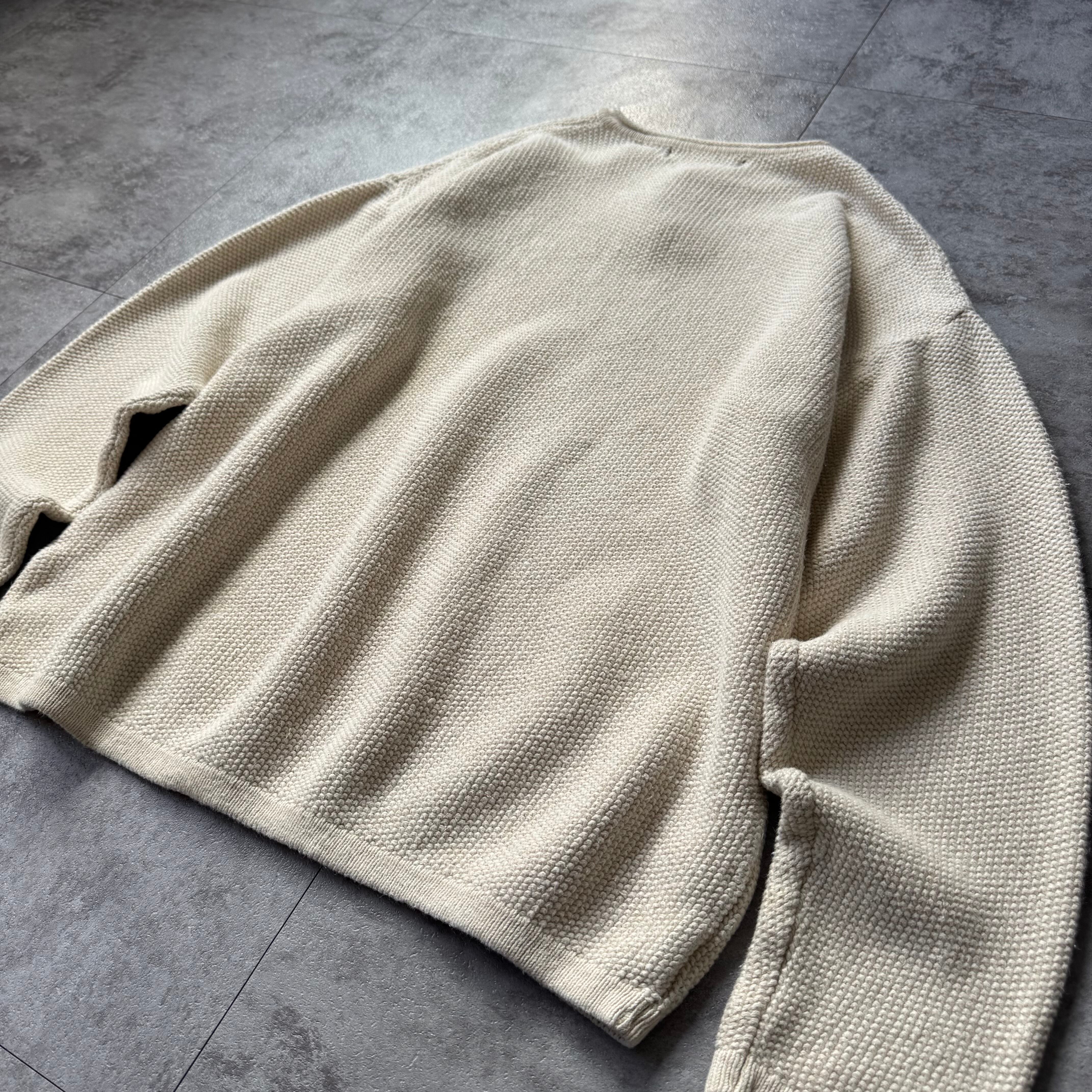 この手の生成りのニットは内外問わず