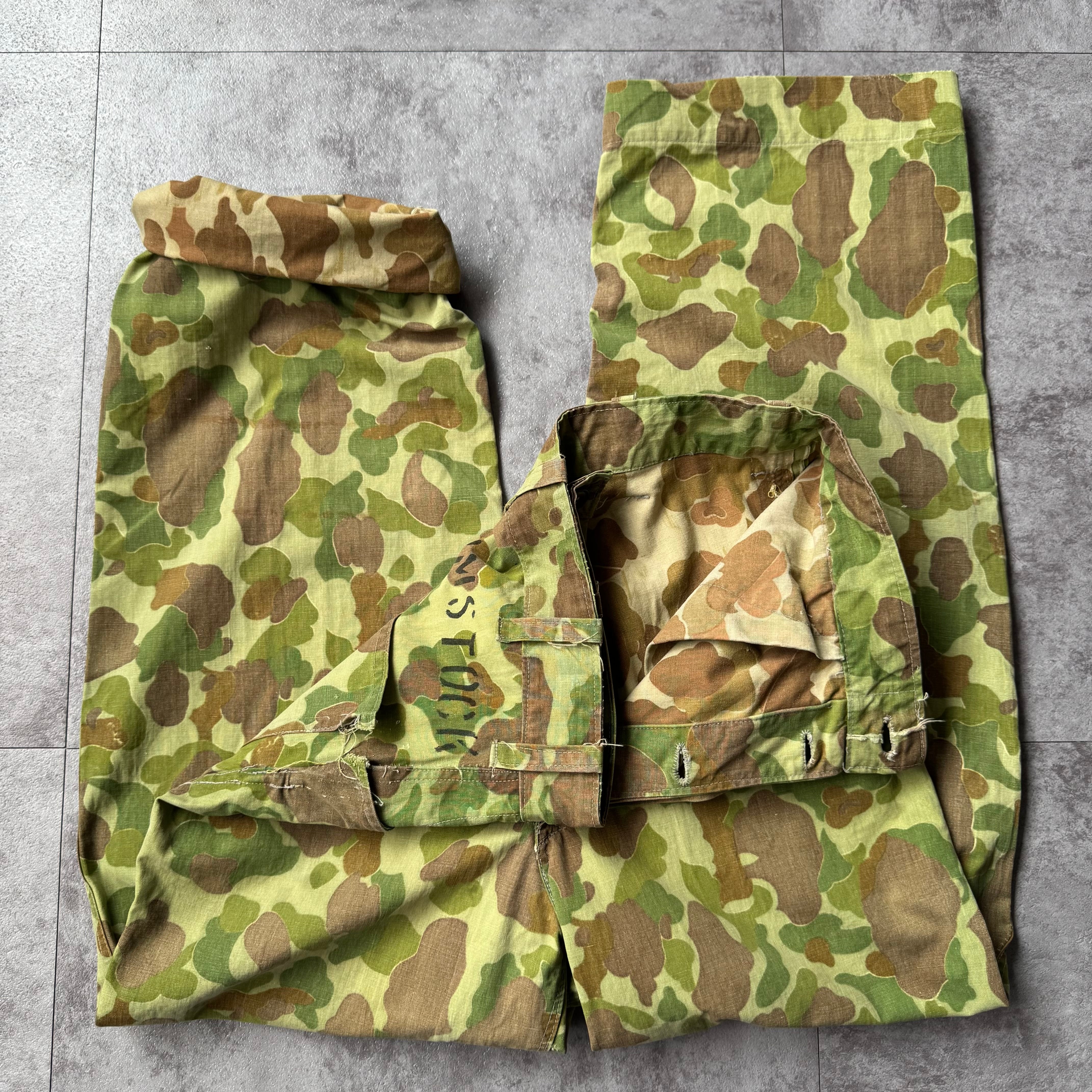 1940's〜 P47 Type Frogskin Camo Pants / 40年代〜 P47タイプ フロッグスキン ダックハンター パンツ 民間 ステンシル