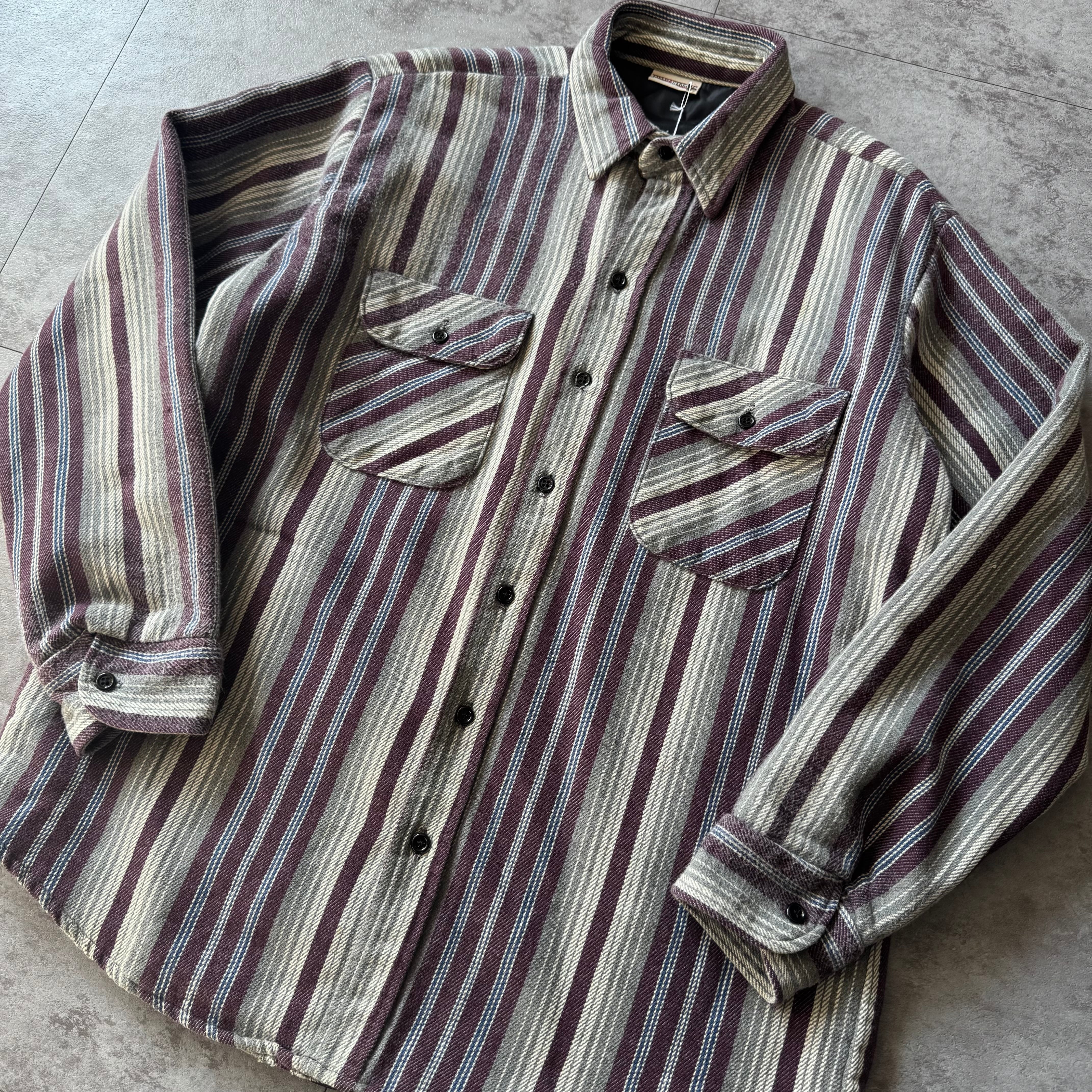 ファイブブラザーではあまり見かけないニュアンスのシャドー味のあるストライプに裏キルティングのリアルな仕様