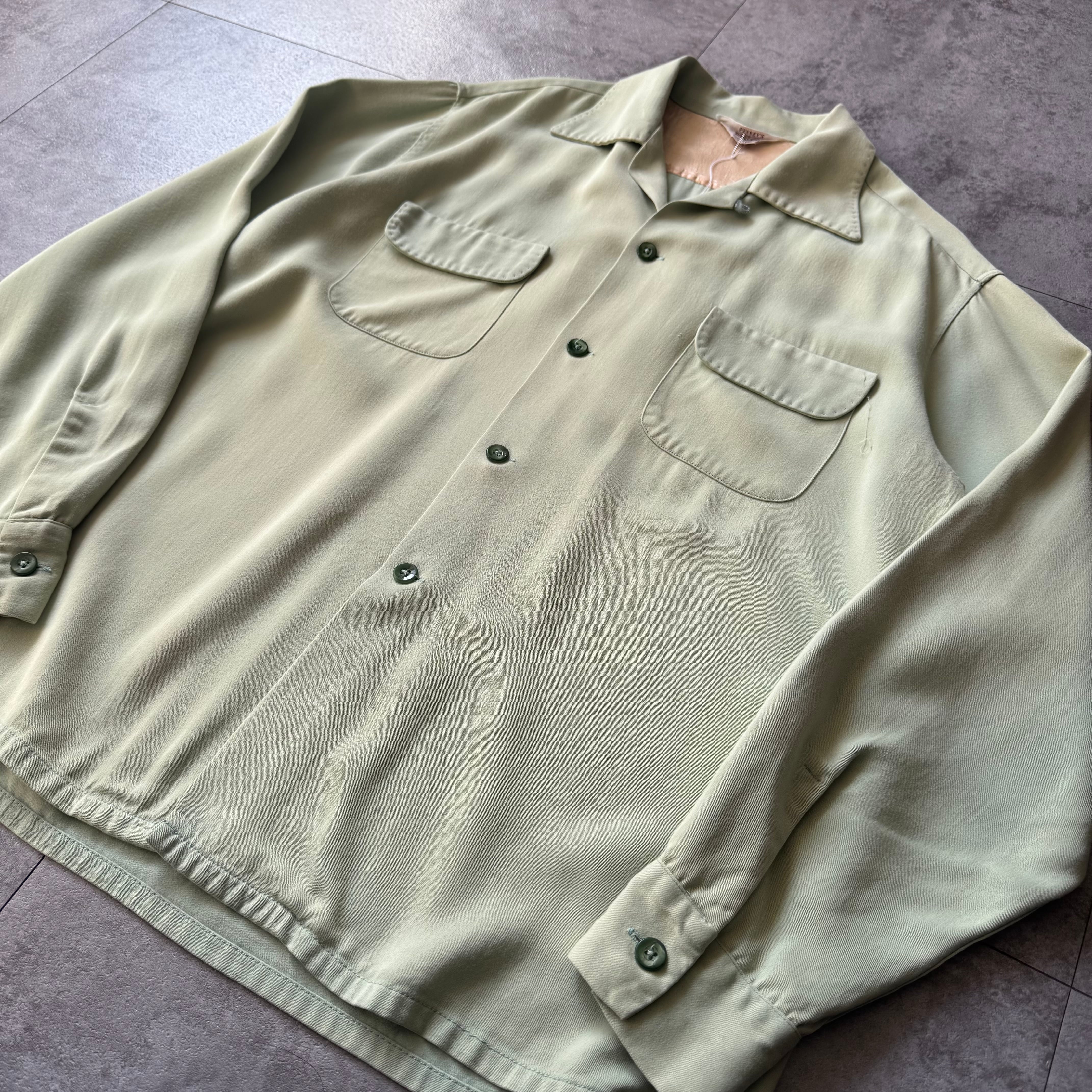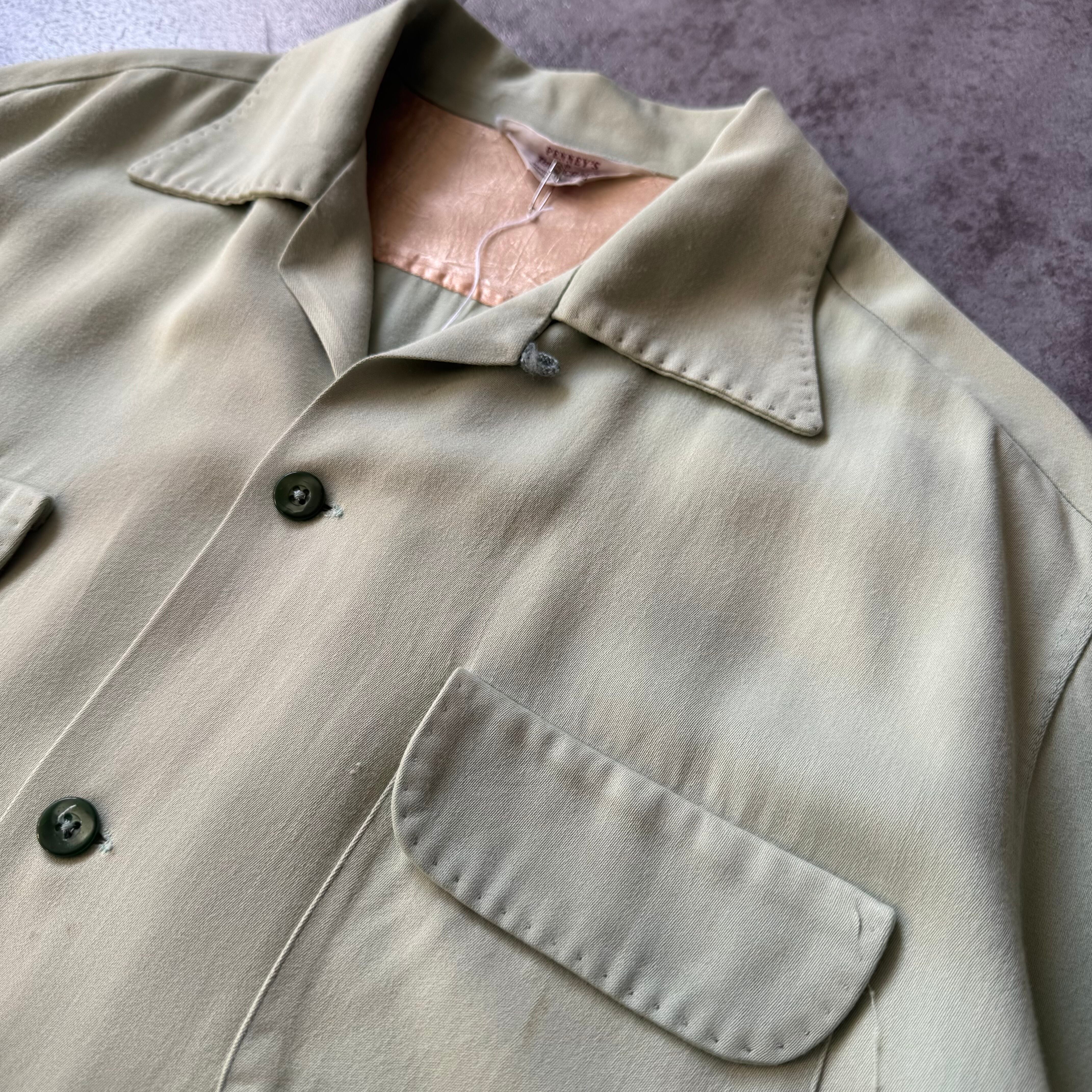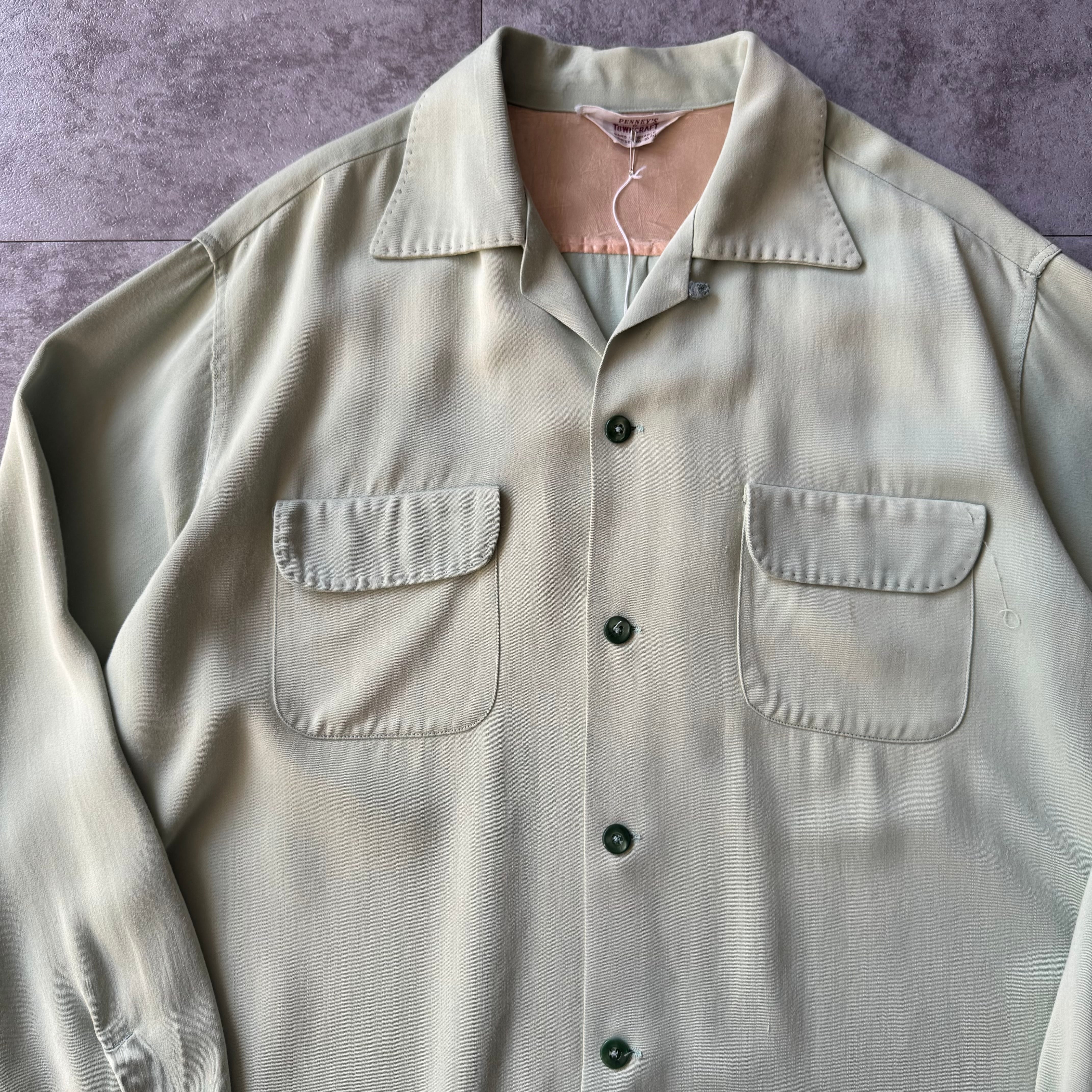 1950's "Towncraft" Rayon Gabardine Shirt / 50年代 "タウンクラフト" レーヨン ギャバジン 開襟シャツ ハンドステッチ