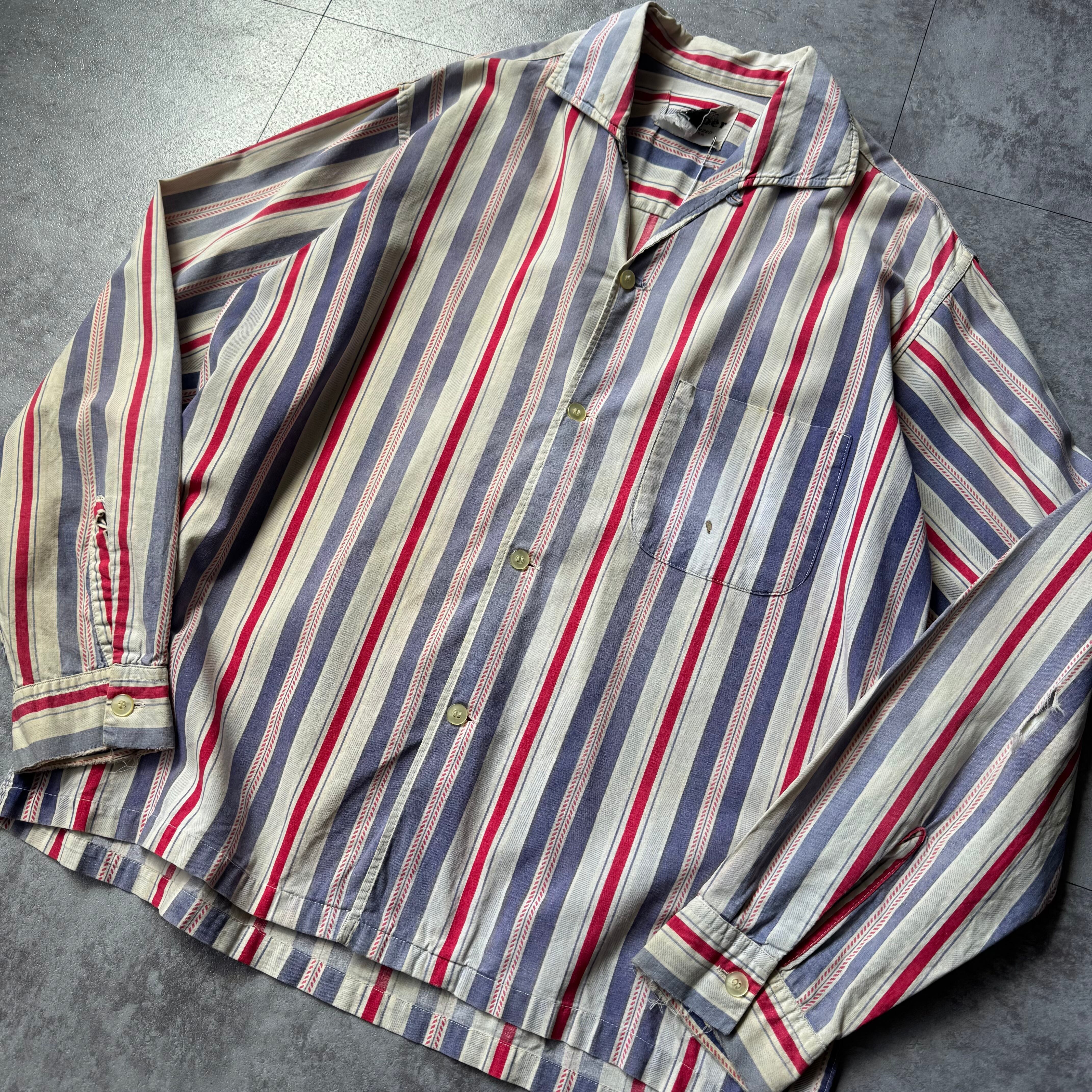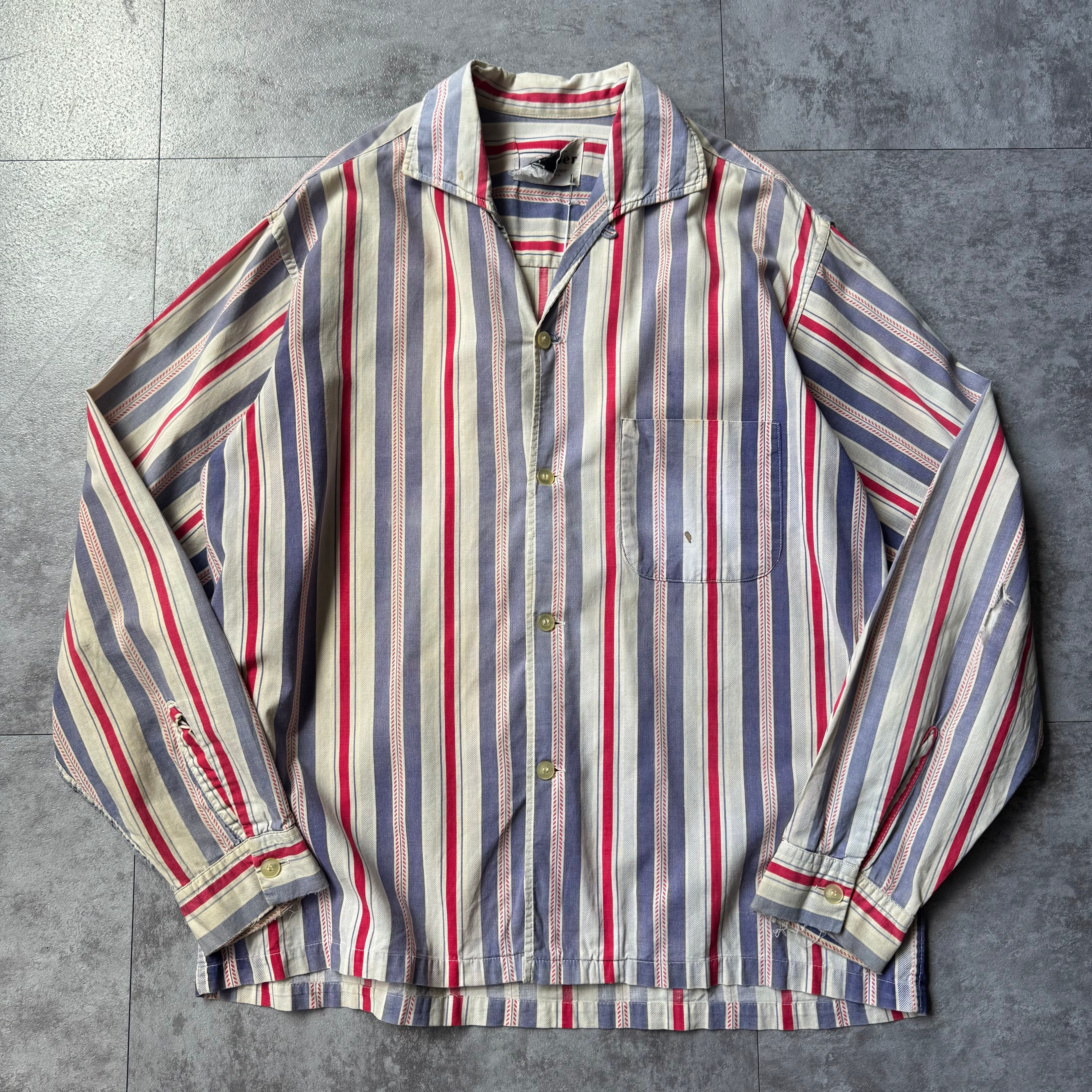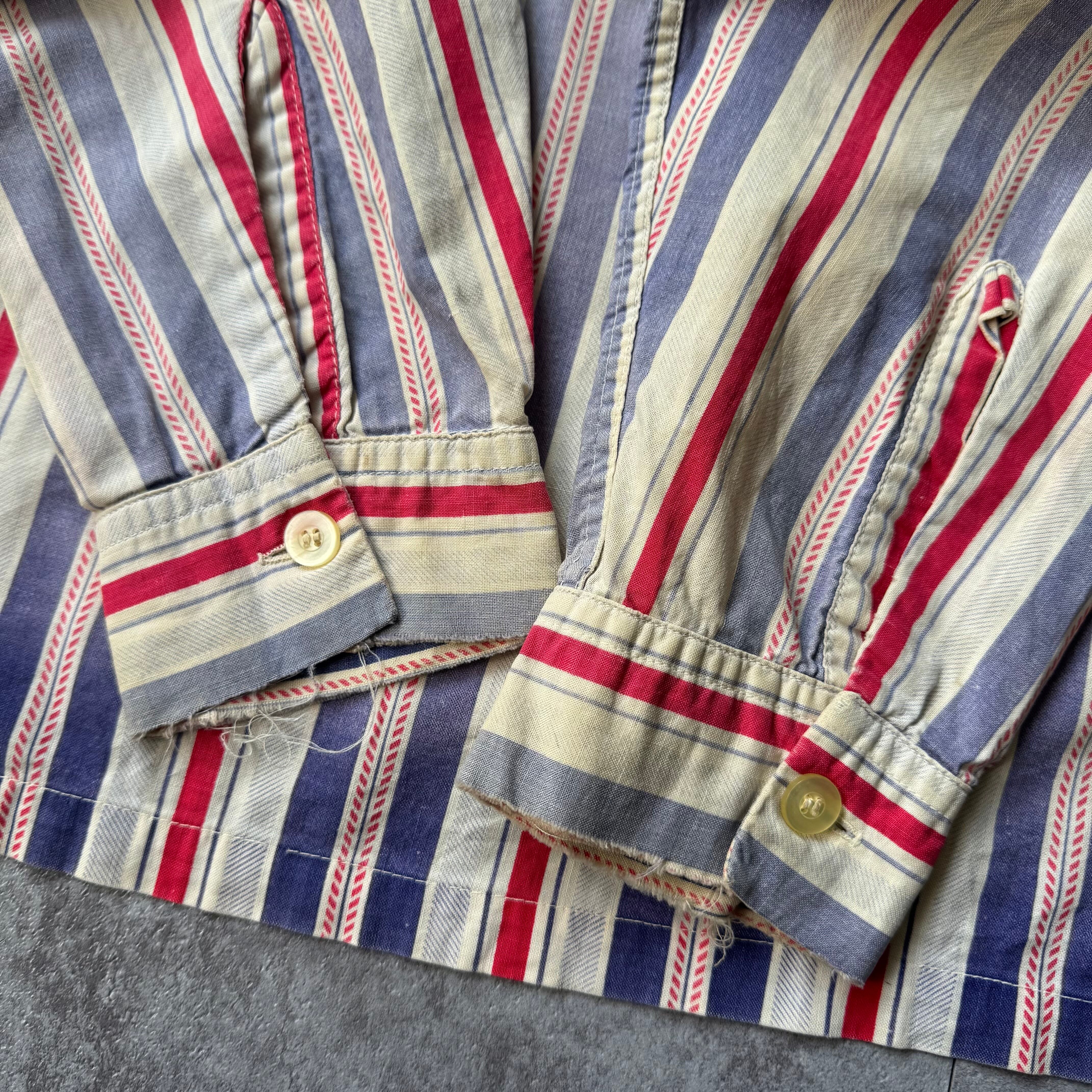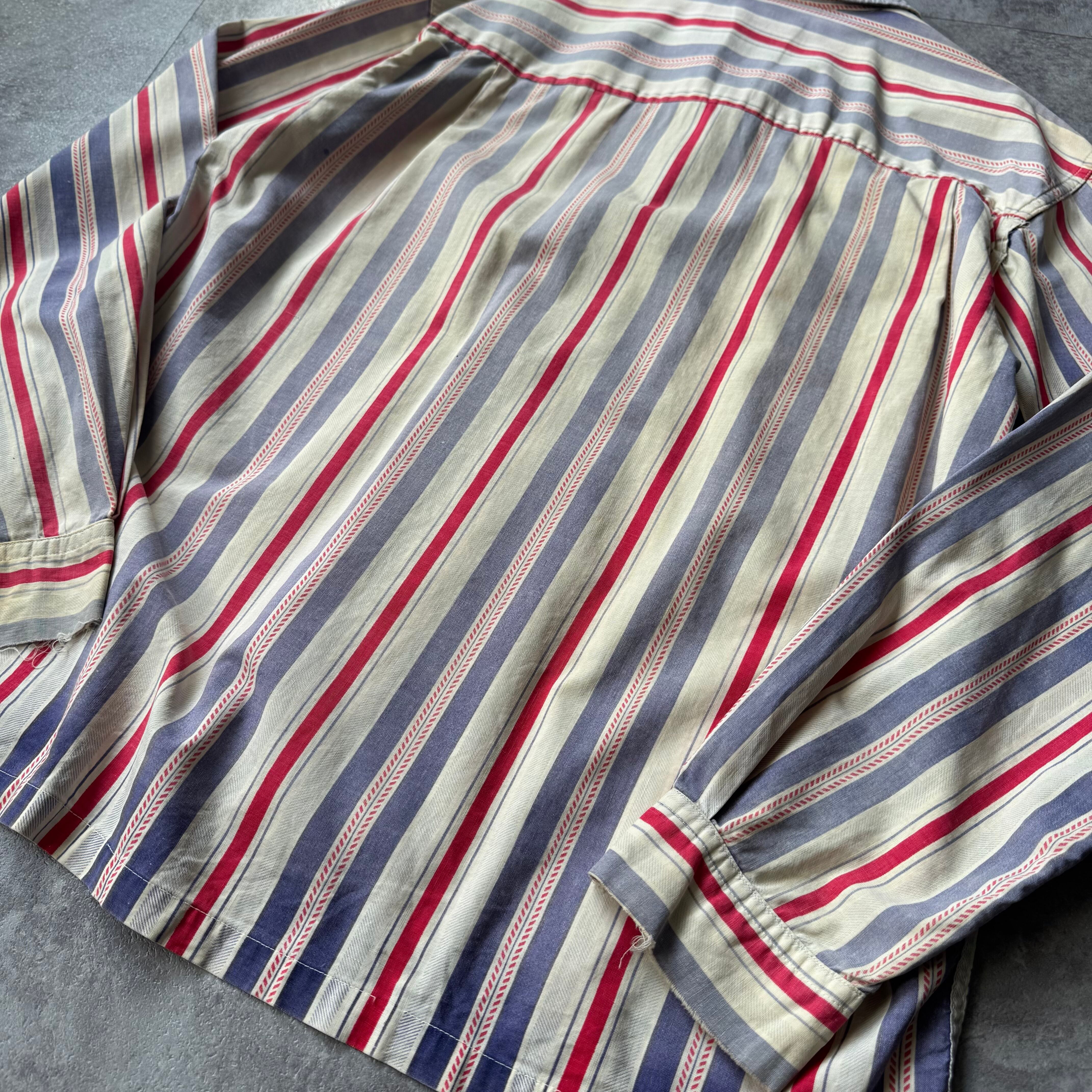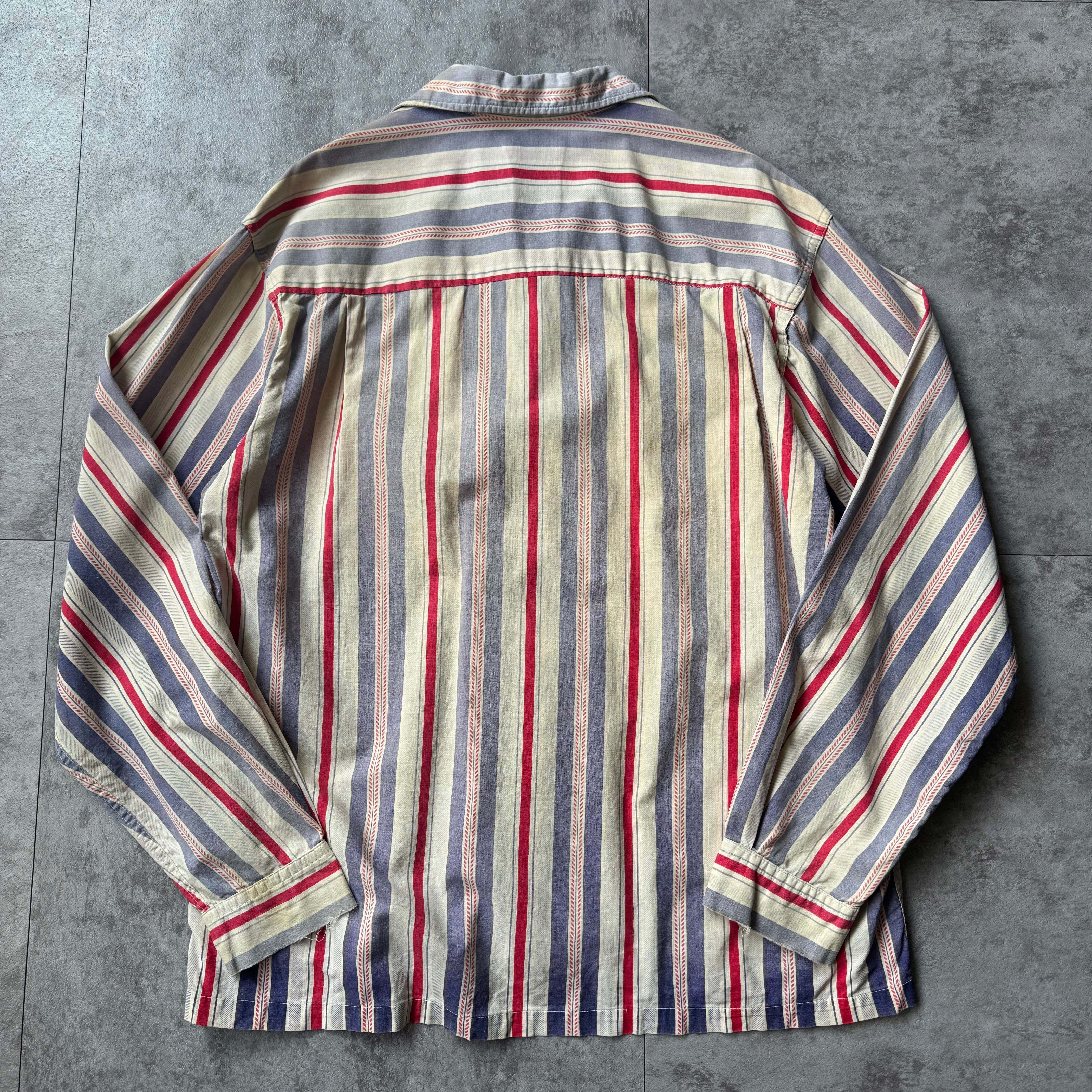 30sなどにも見られるこの手の古いストライプパターン。単調なストライプではなく細かな柄が入っており分かる人にはこの柄だけで古いと伝わる良い柄。
