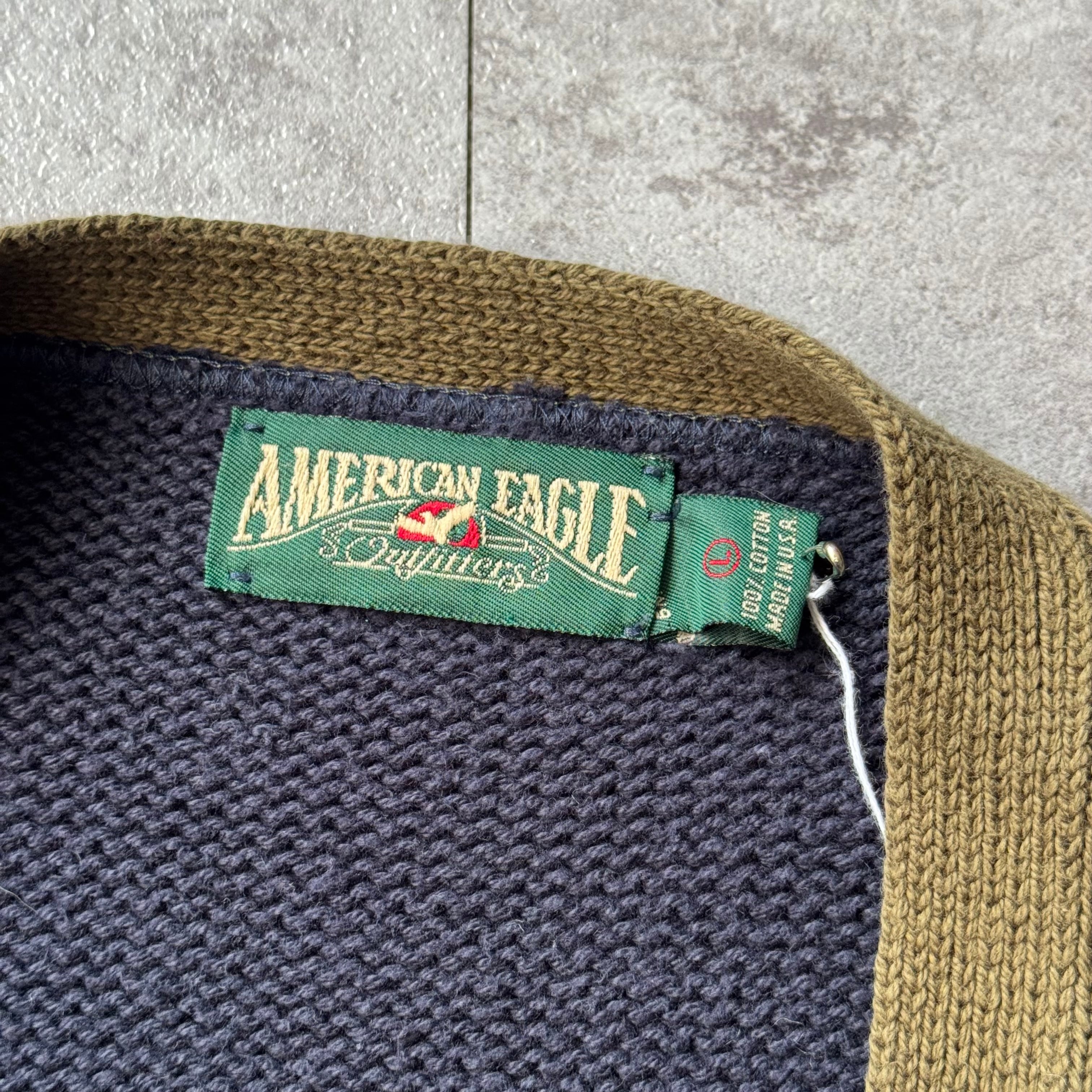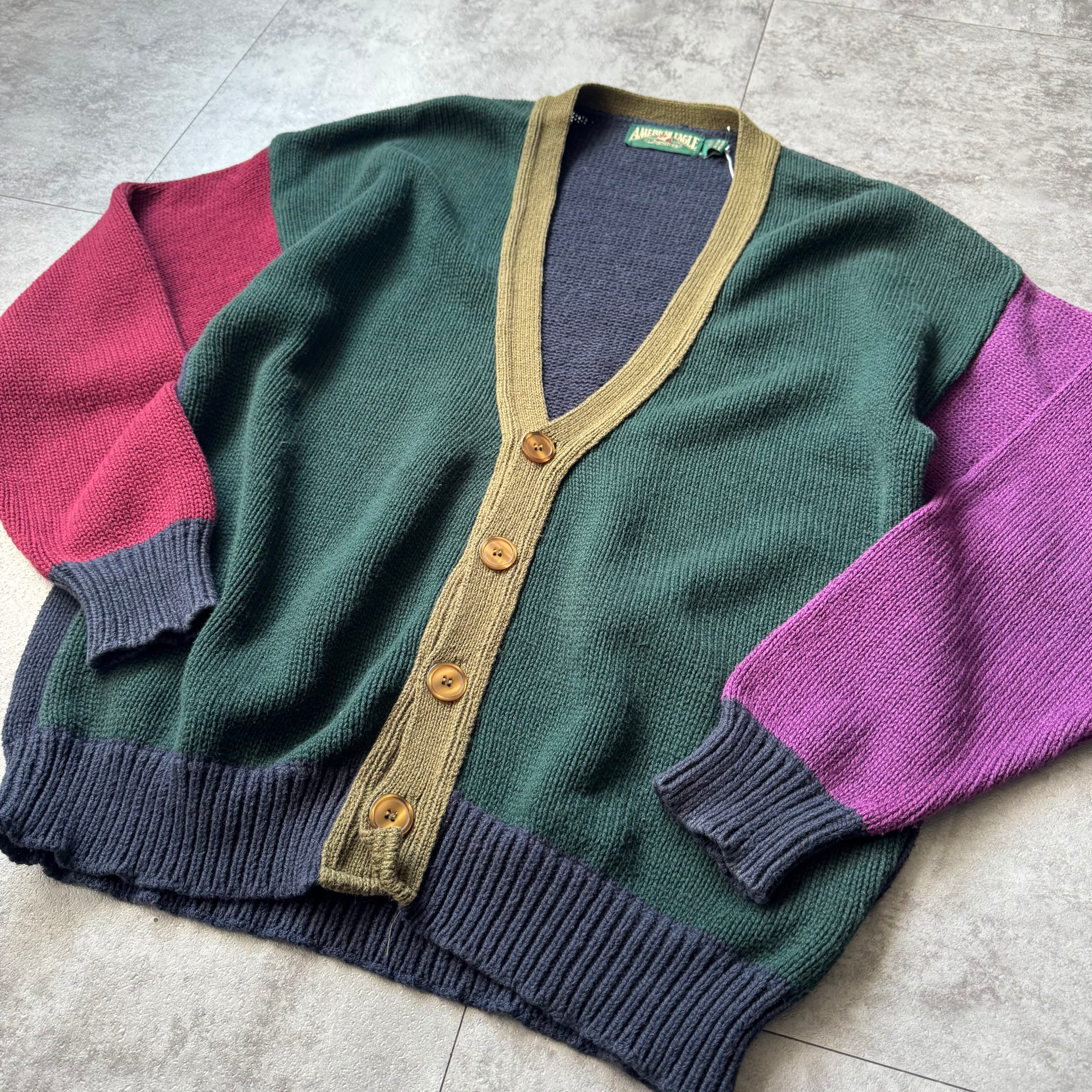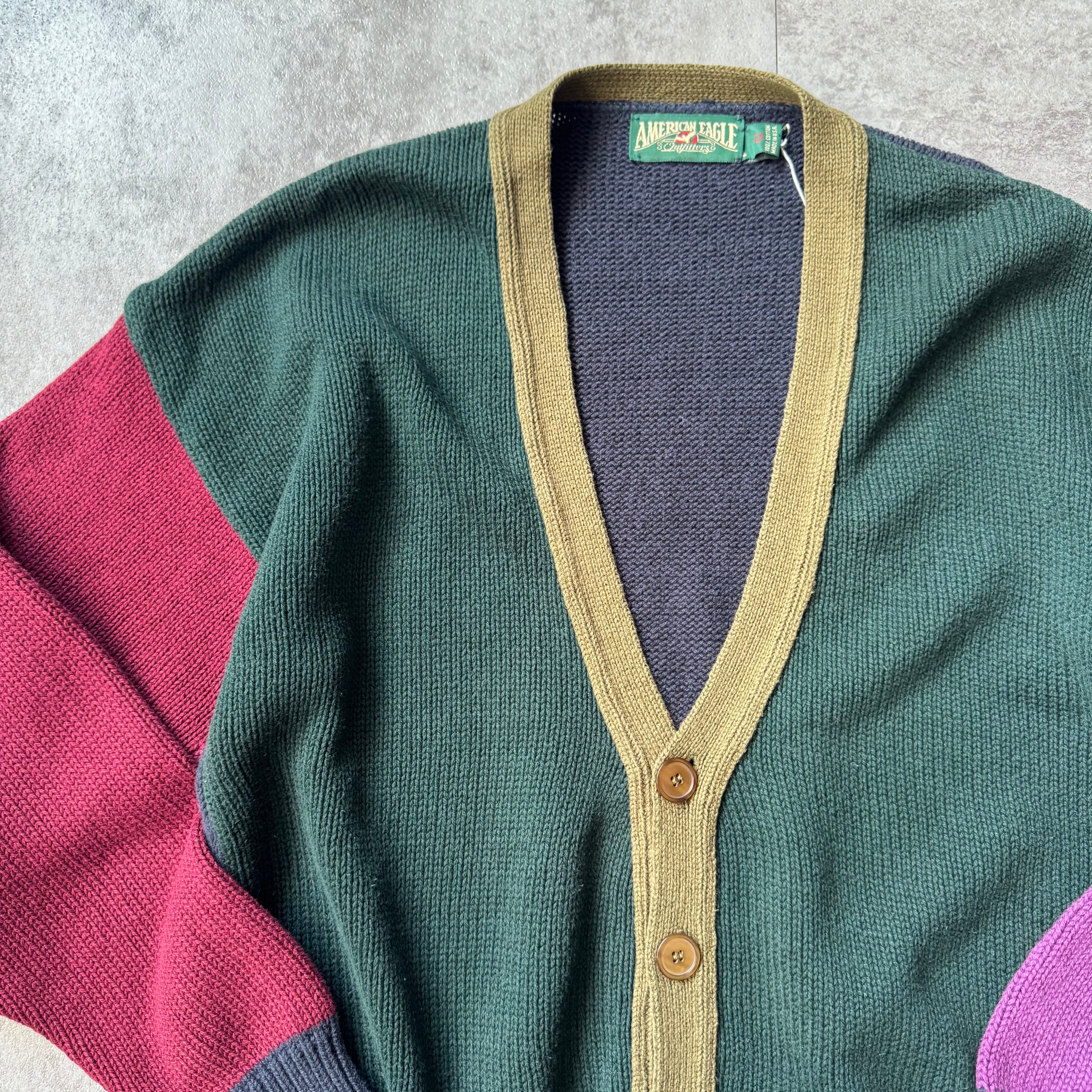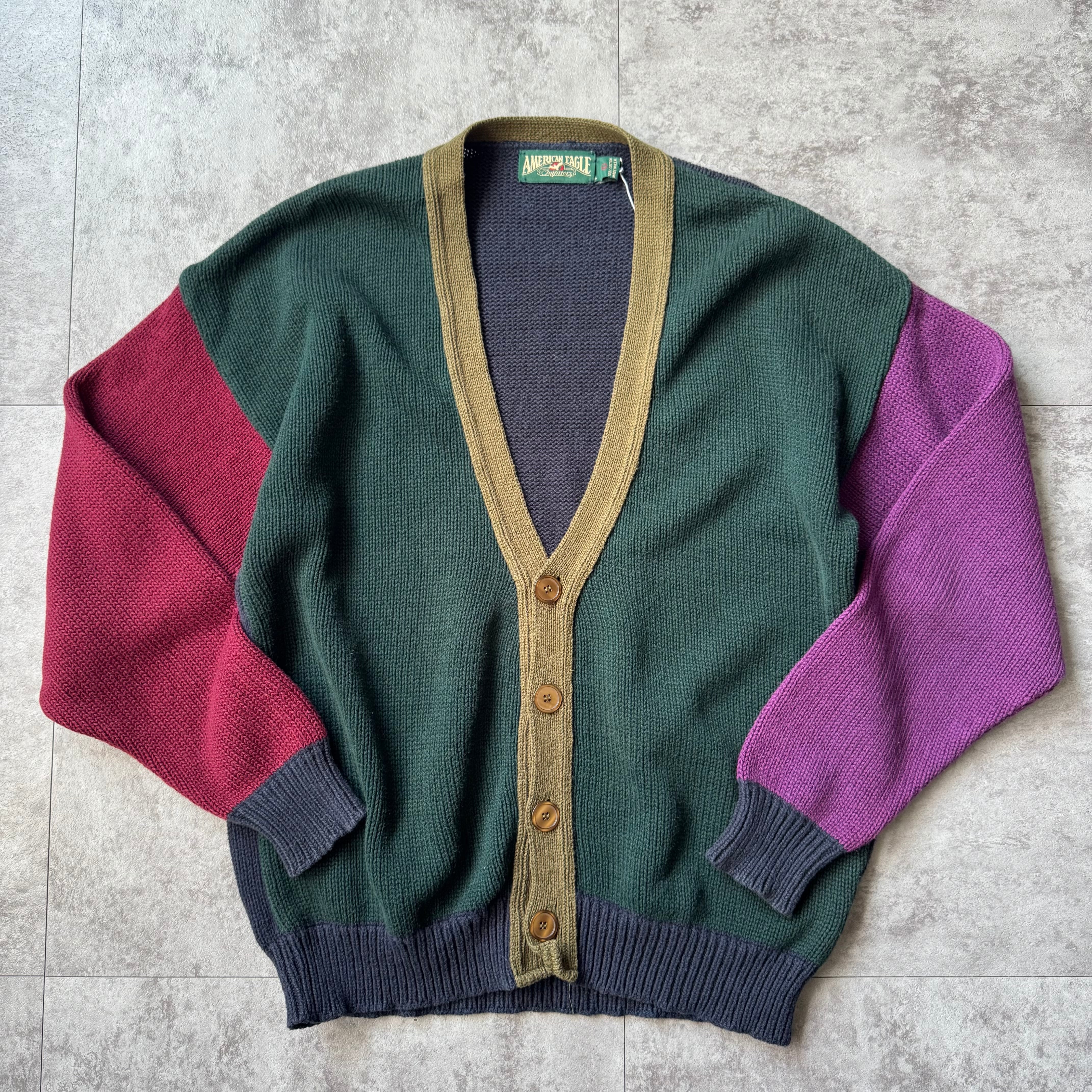 1990's "American Eagle" Crazy Pattern Cotton Cardigan made in USA / 90年代 "アメリカンイーグル" クレイジーパターン コットンカーディガン アメリカ製