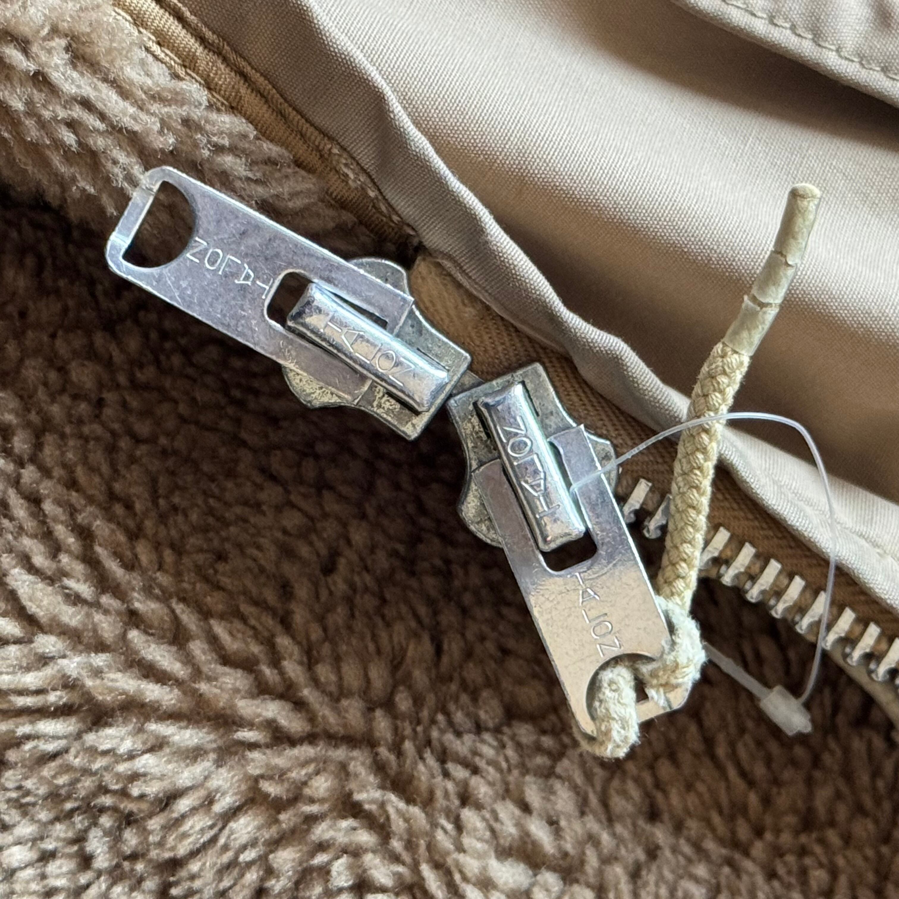 ボタンが一番欠損しておりますがダブルジップ仕様ですので問題なく着用いただけるかと思います