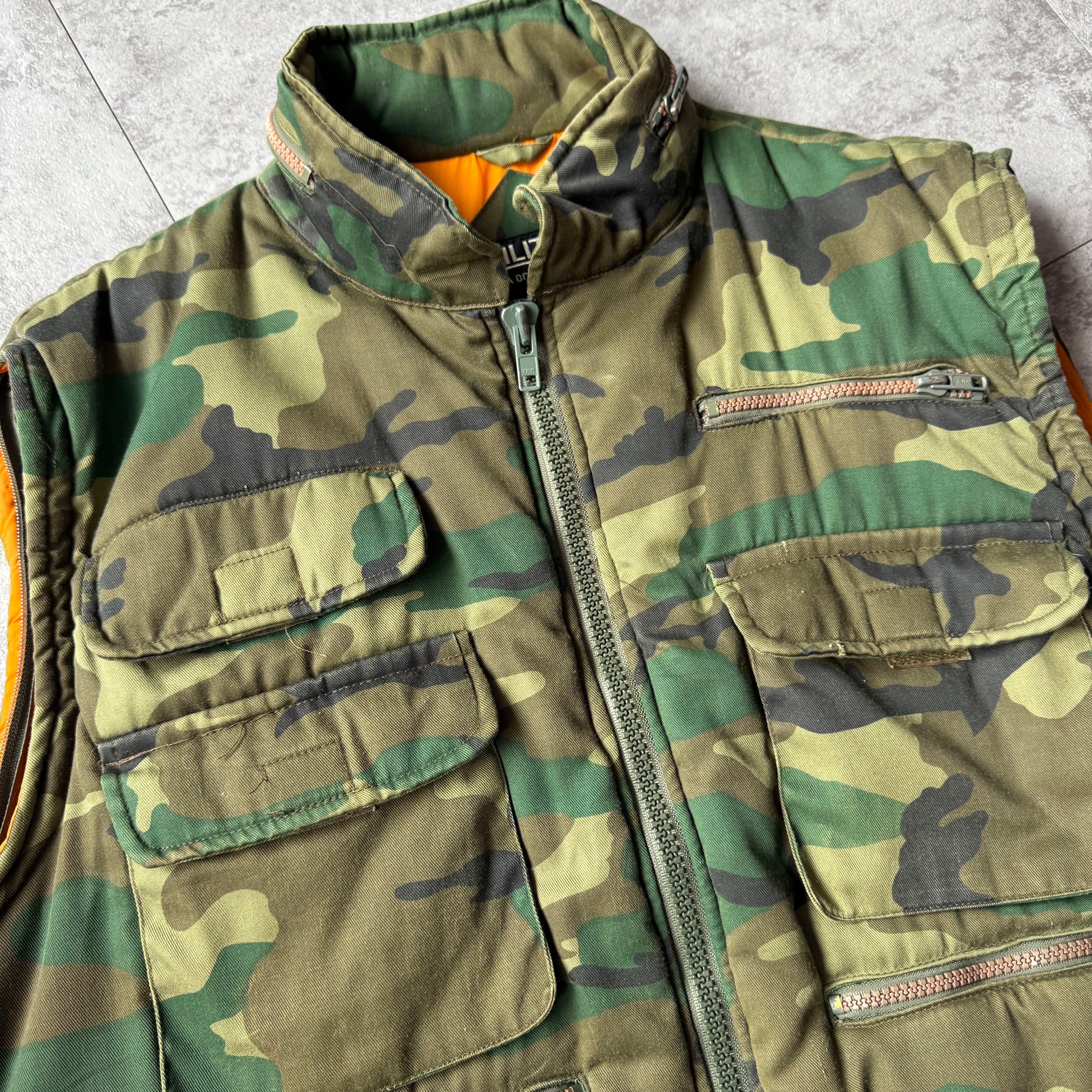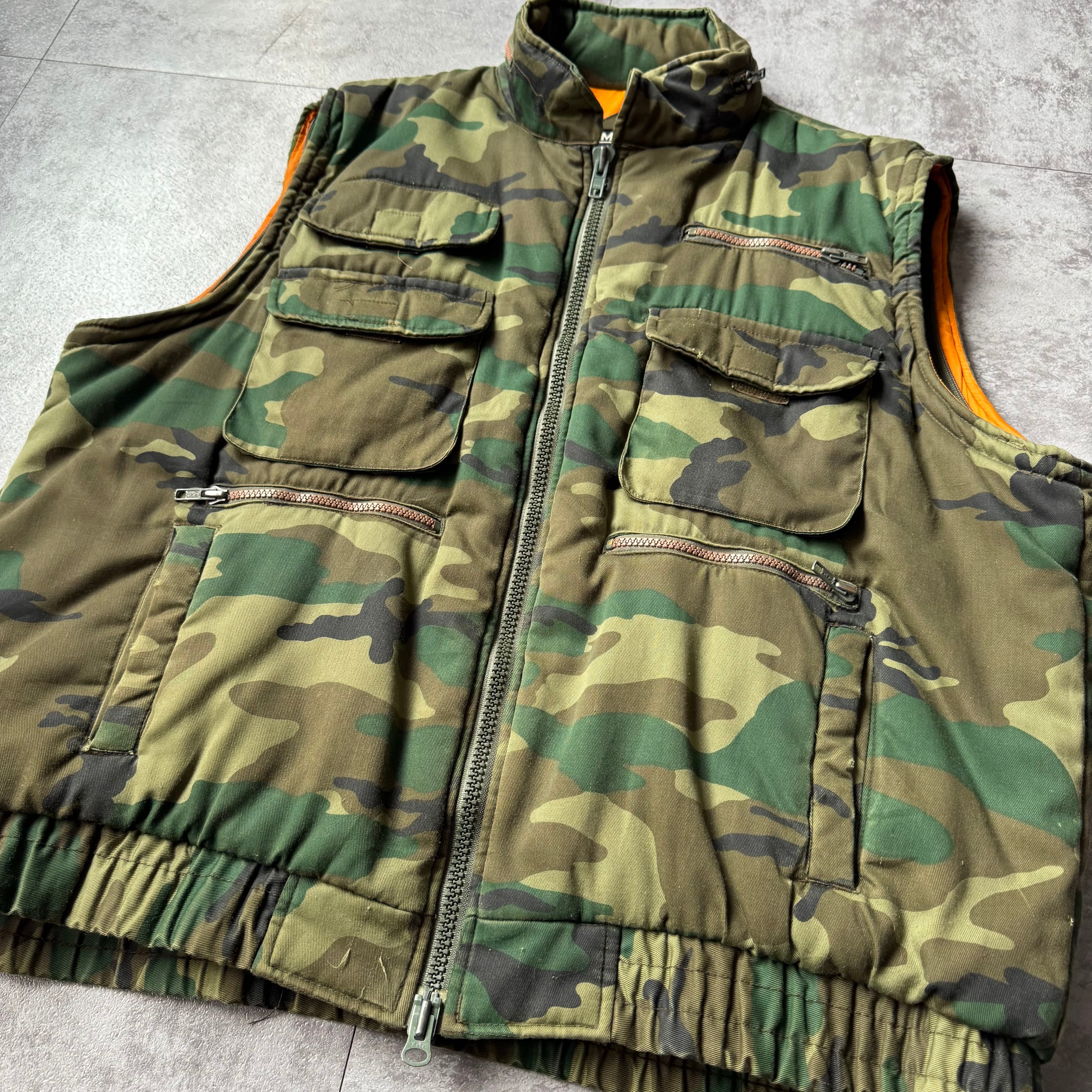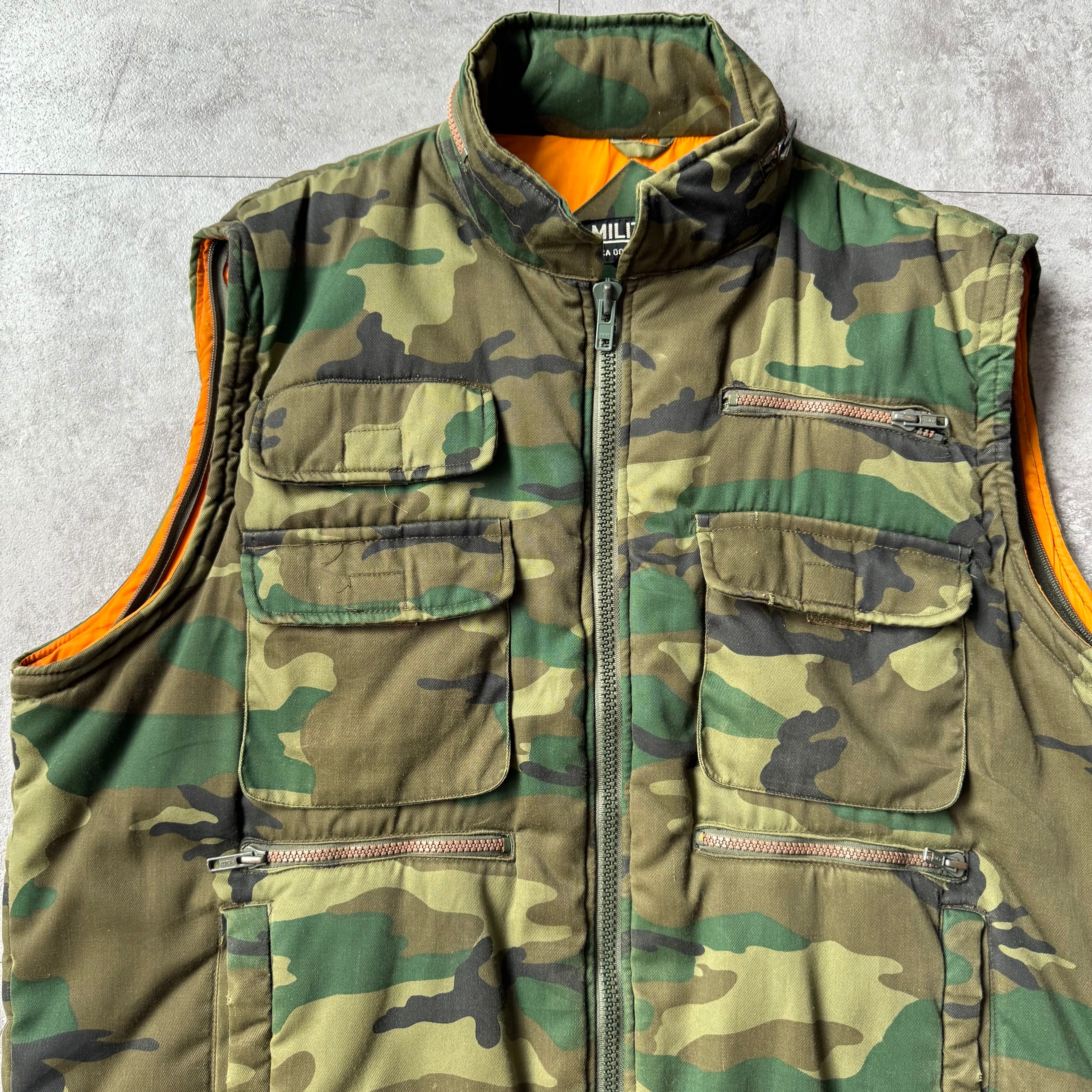 1990's "MIRITAIRE" Padded Camo Vest / 90年代 中綿 ウッドランドカモ ベスト マルチポケット