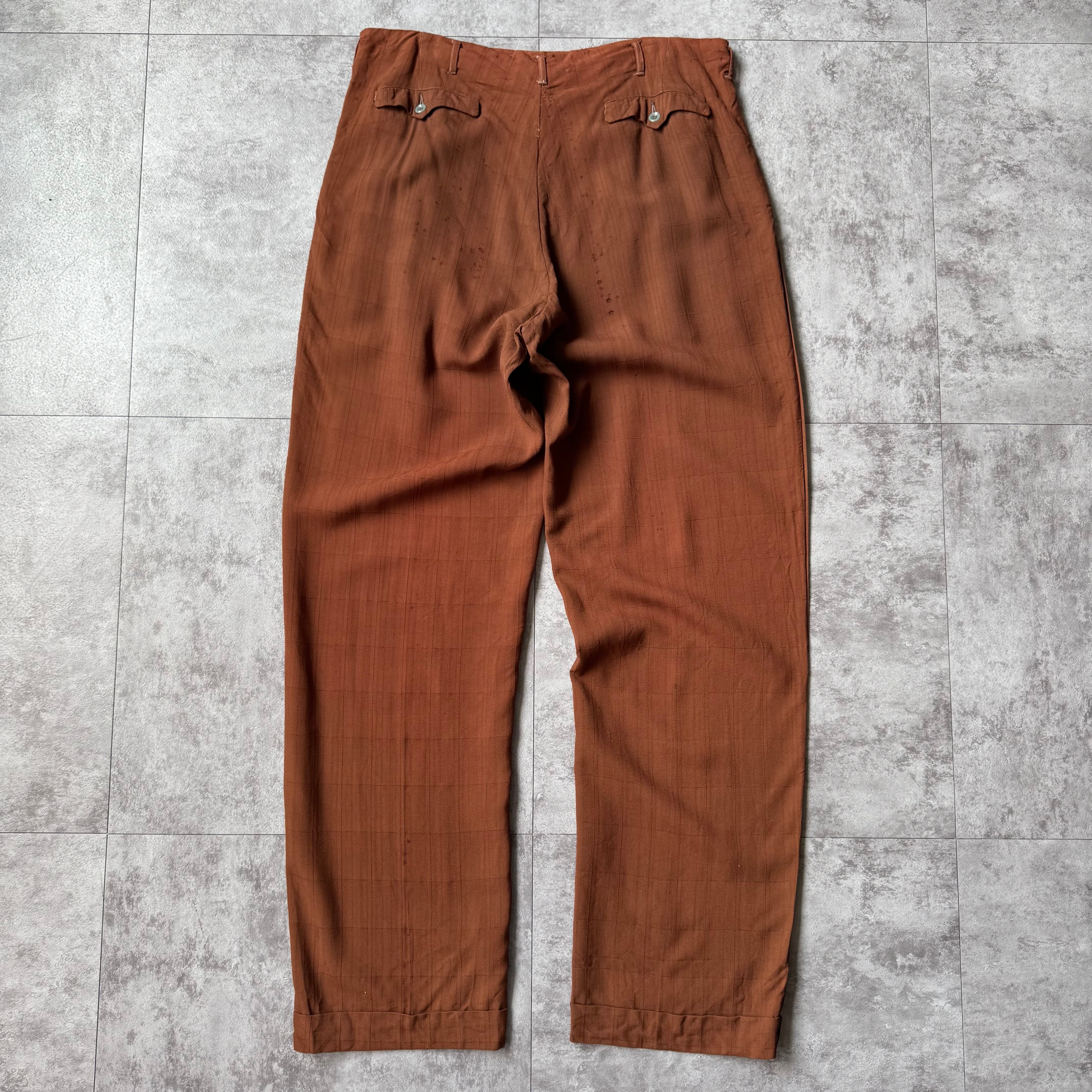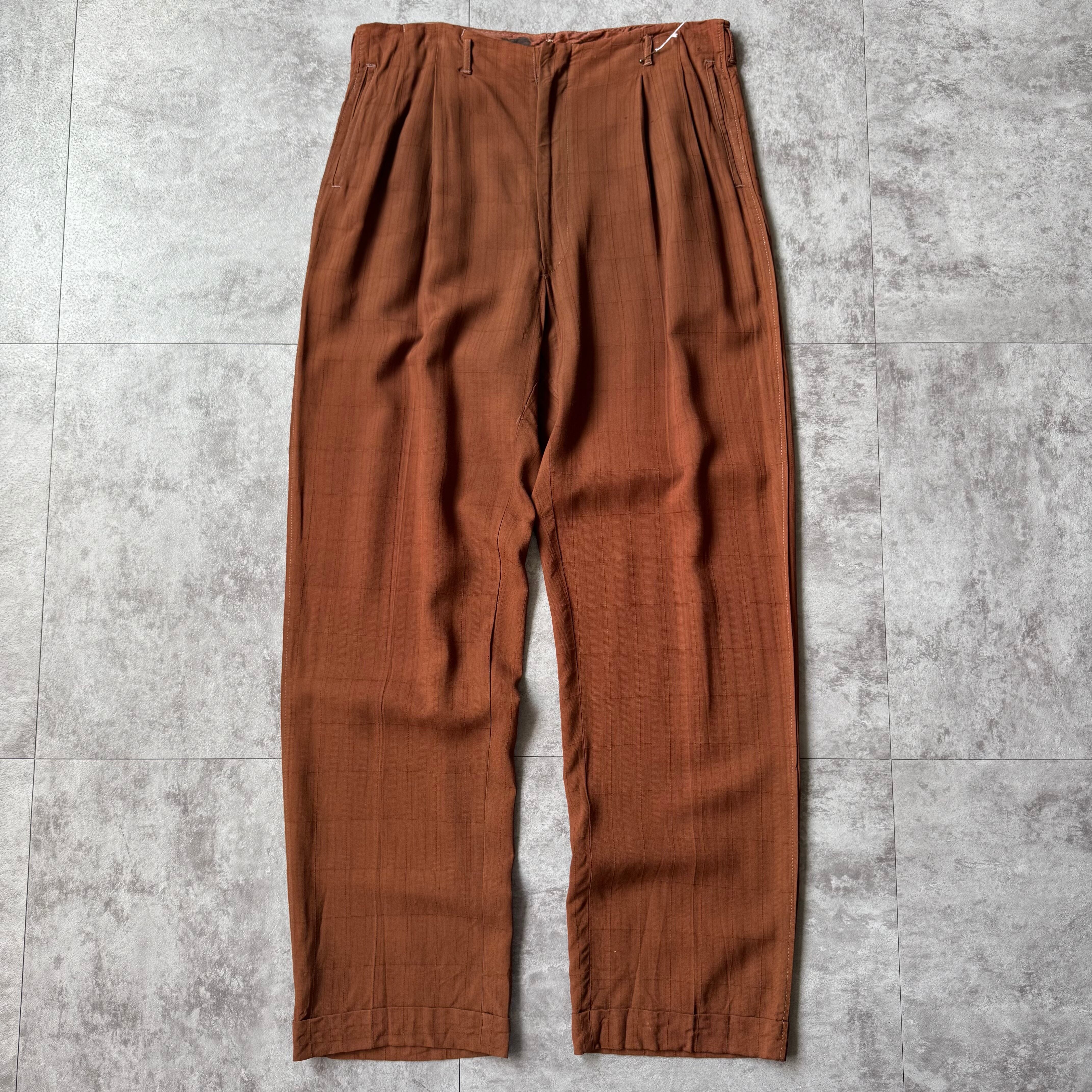 1950's US Vintage 2tuck Rayon Plaid Slacks / 50年代 " アメリカンビンテージ 2タック レーヨン チェック スラックス