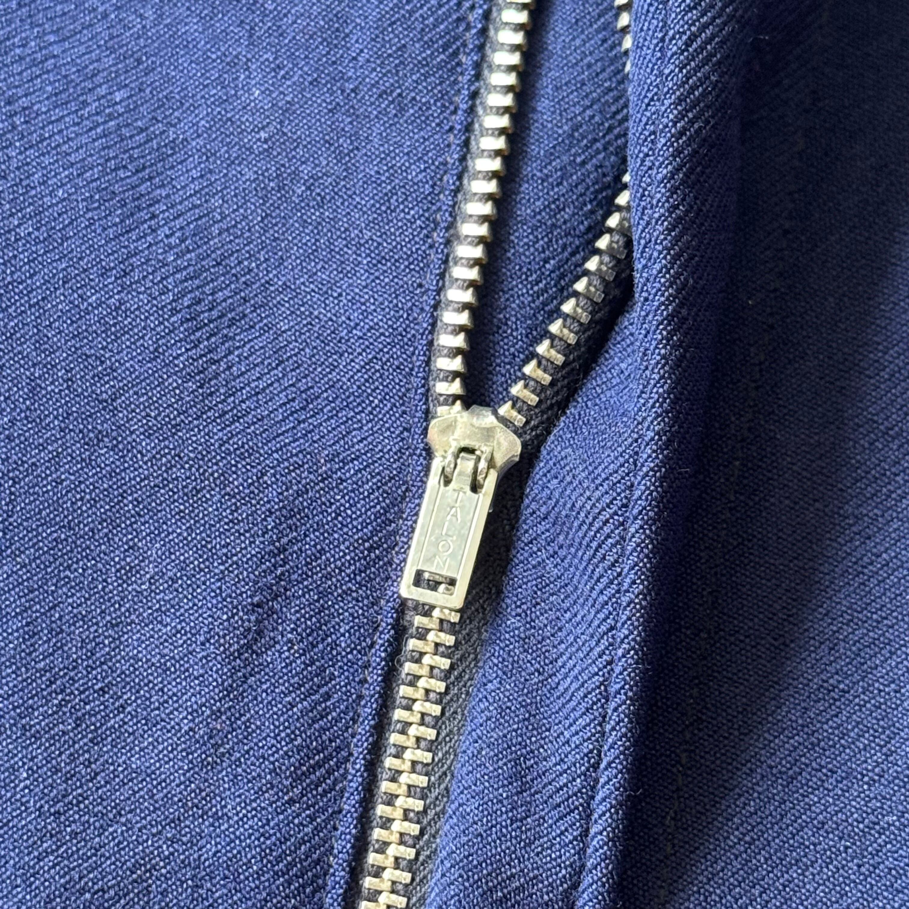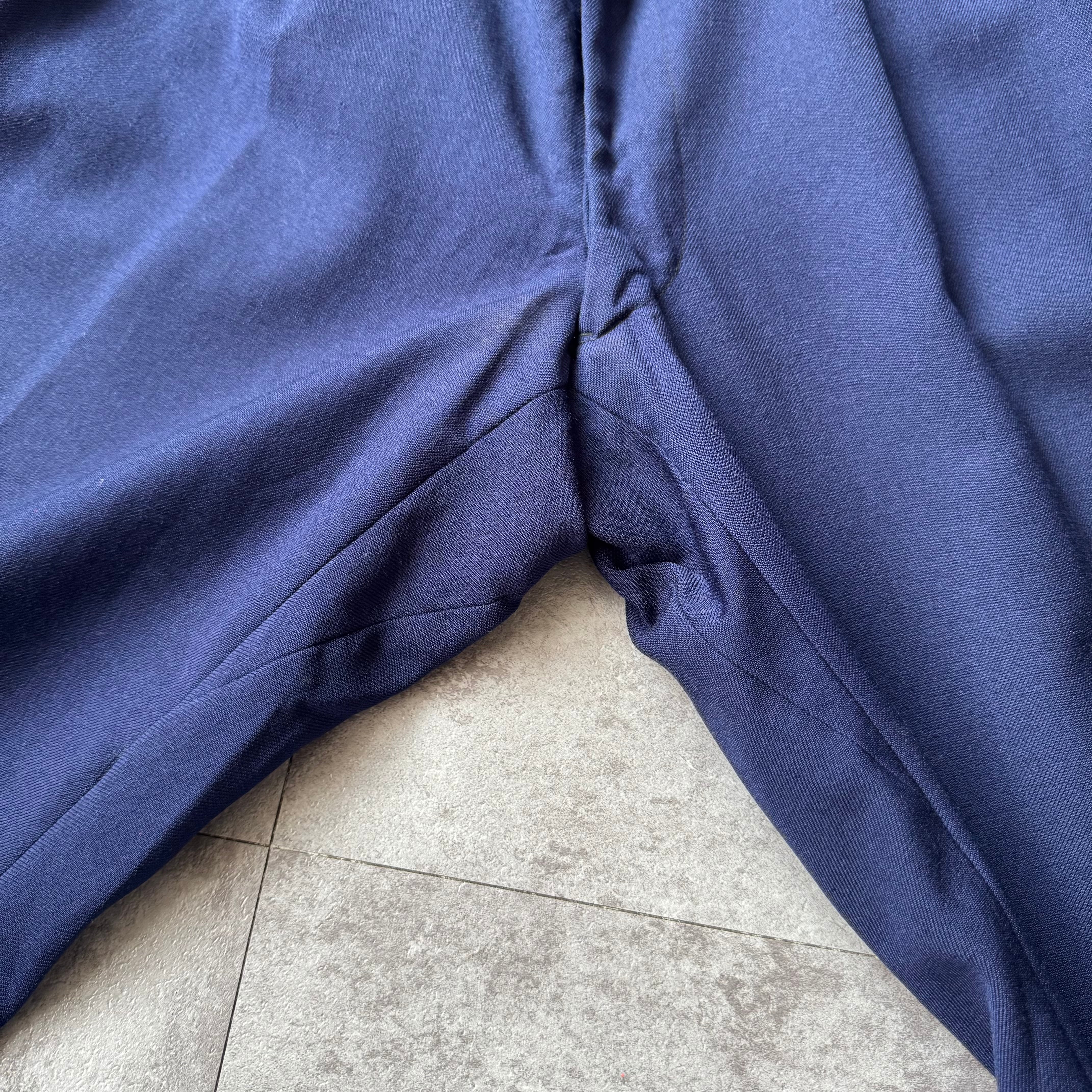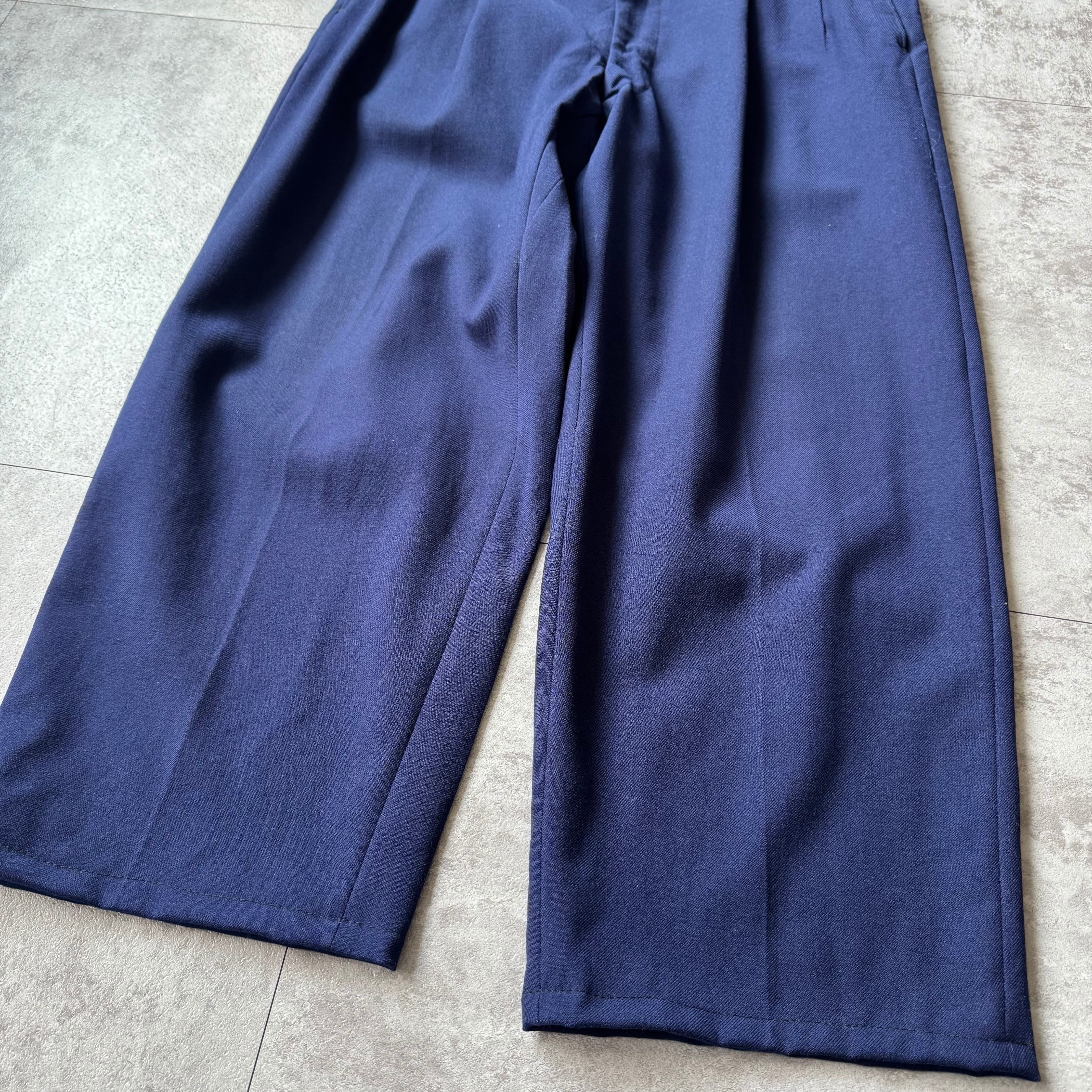 ネイビーカラーのウールギャバスラックス
