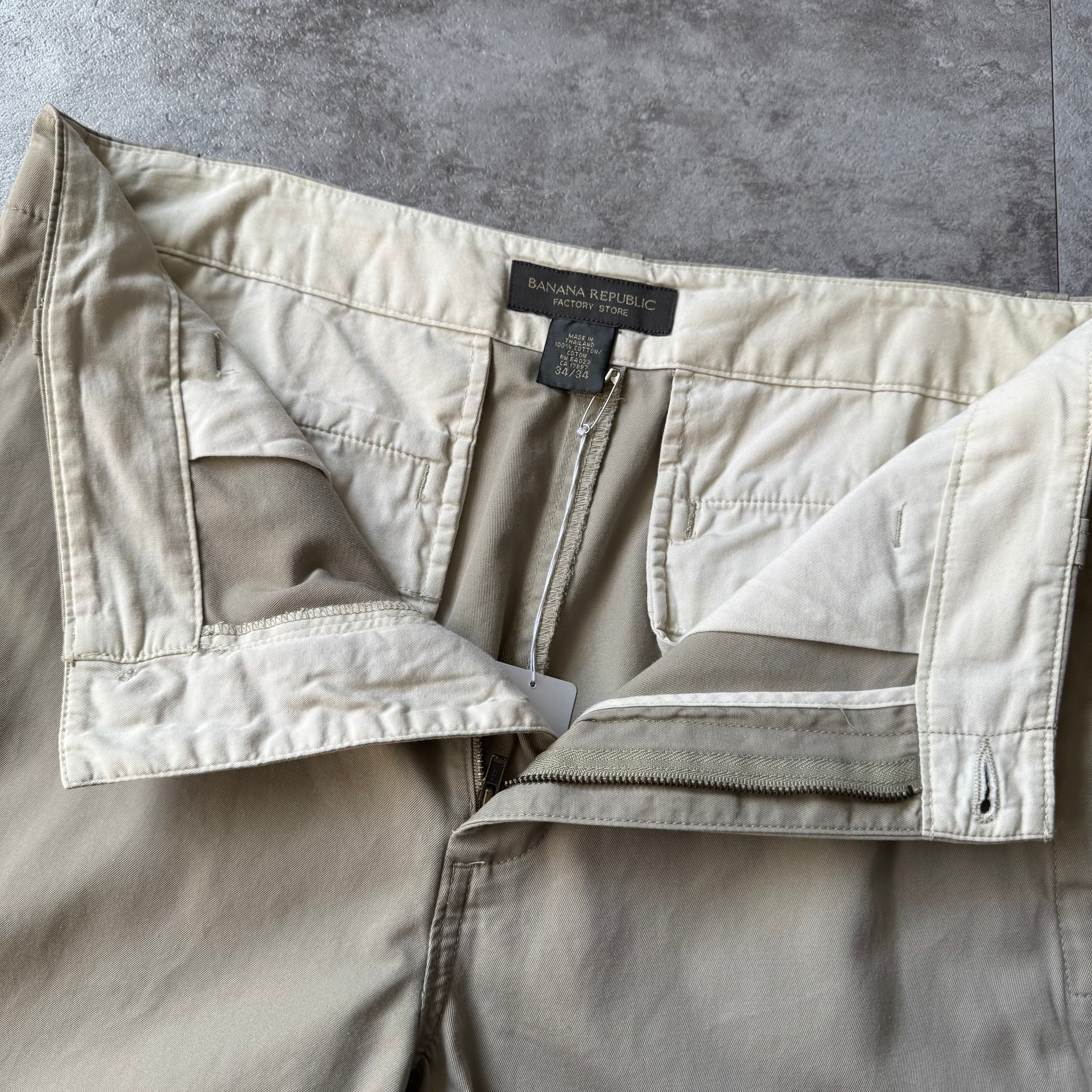 '02 "Banana Republic" Cotton Wide Straight Cargo Pants / 2002年製 "バナナリパブリック" コットン ポプリン ワイドストレート カーゴパンツ