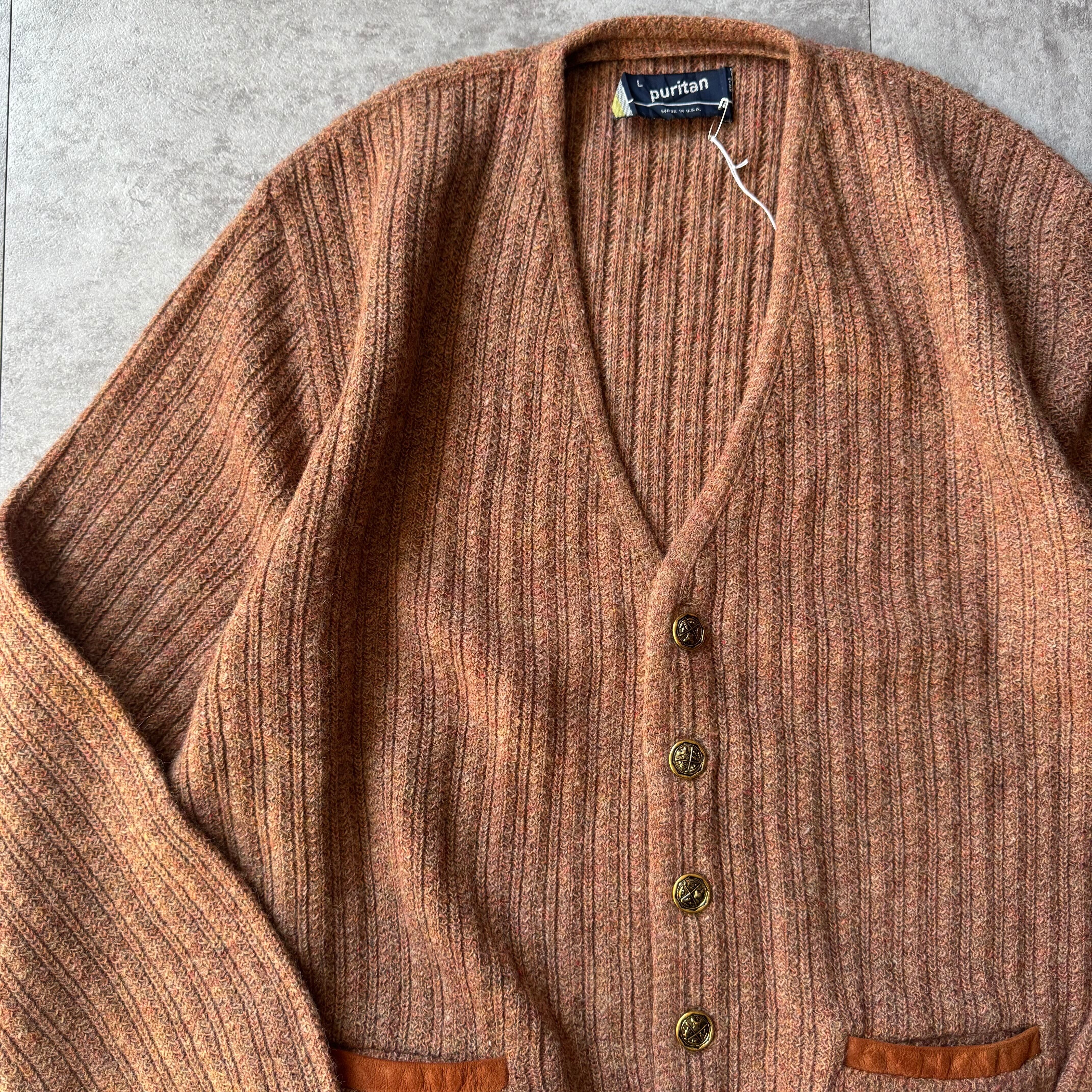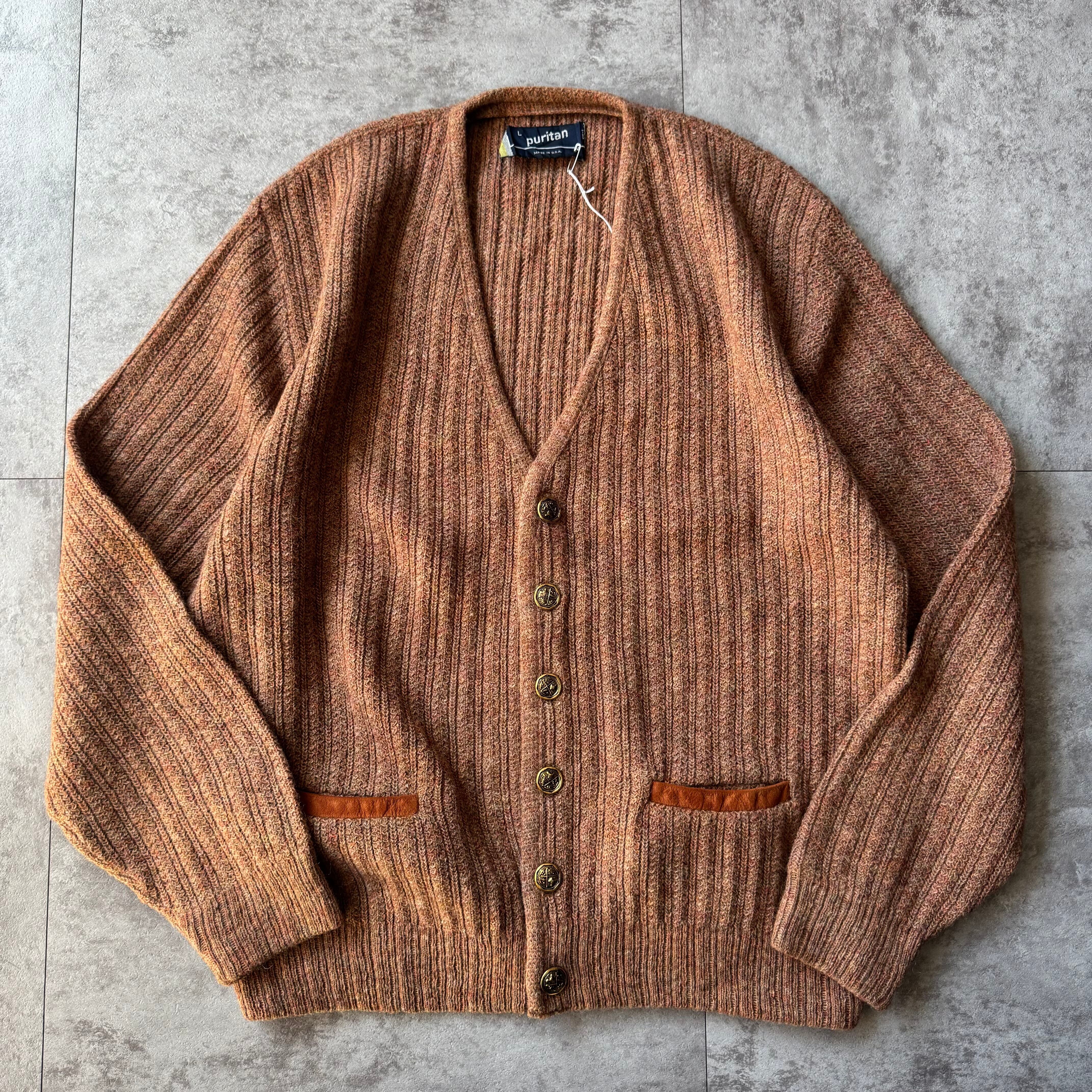 1980's "Puritan" Wool Cardigan made in USA / 80年代 "ピューリタン" ウールカーディガン アメリカ製 レザーパイピング