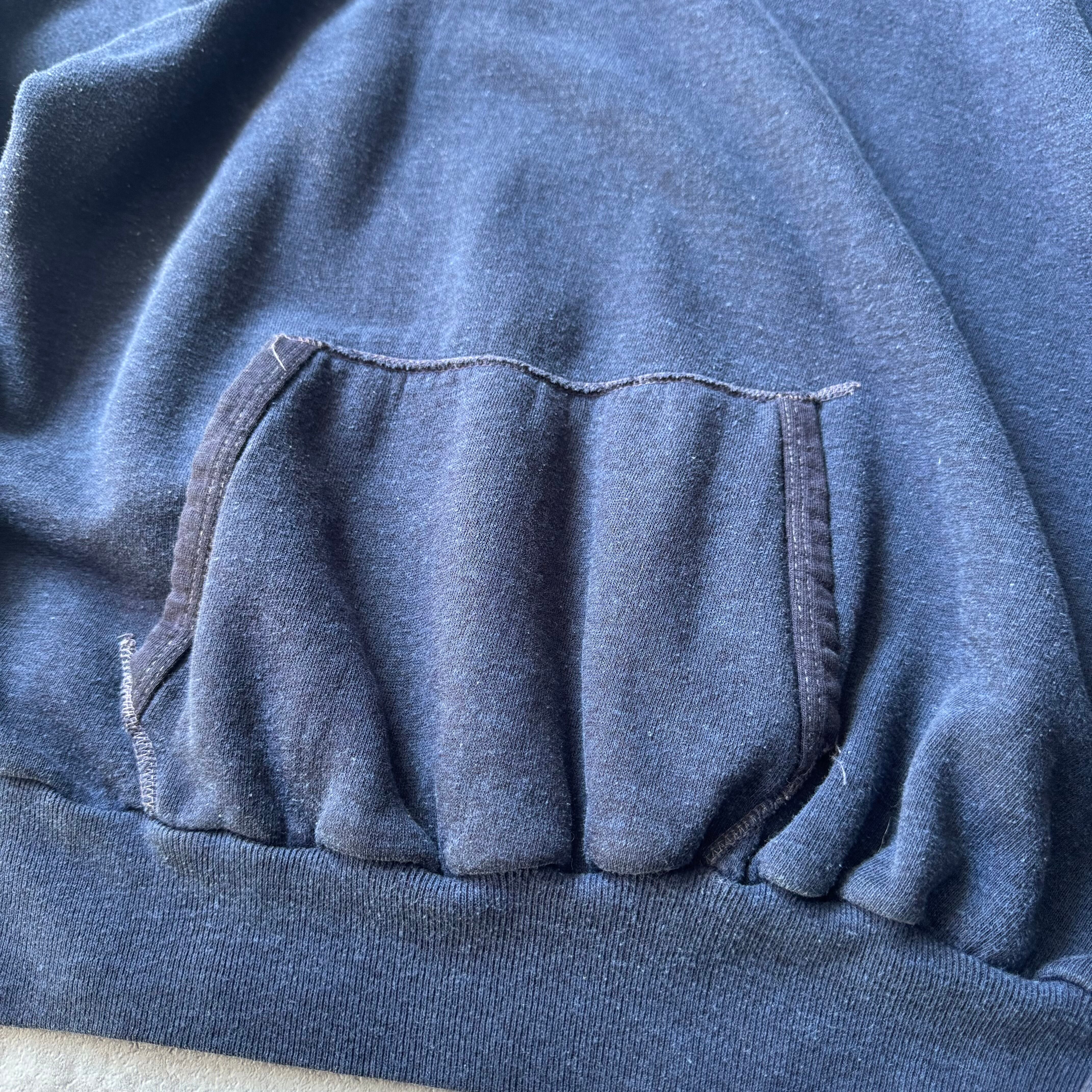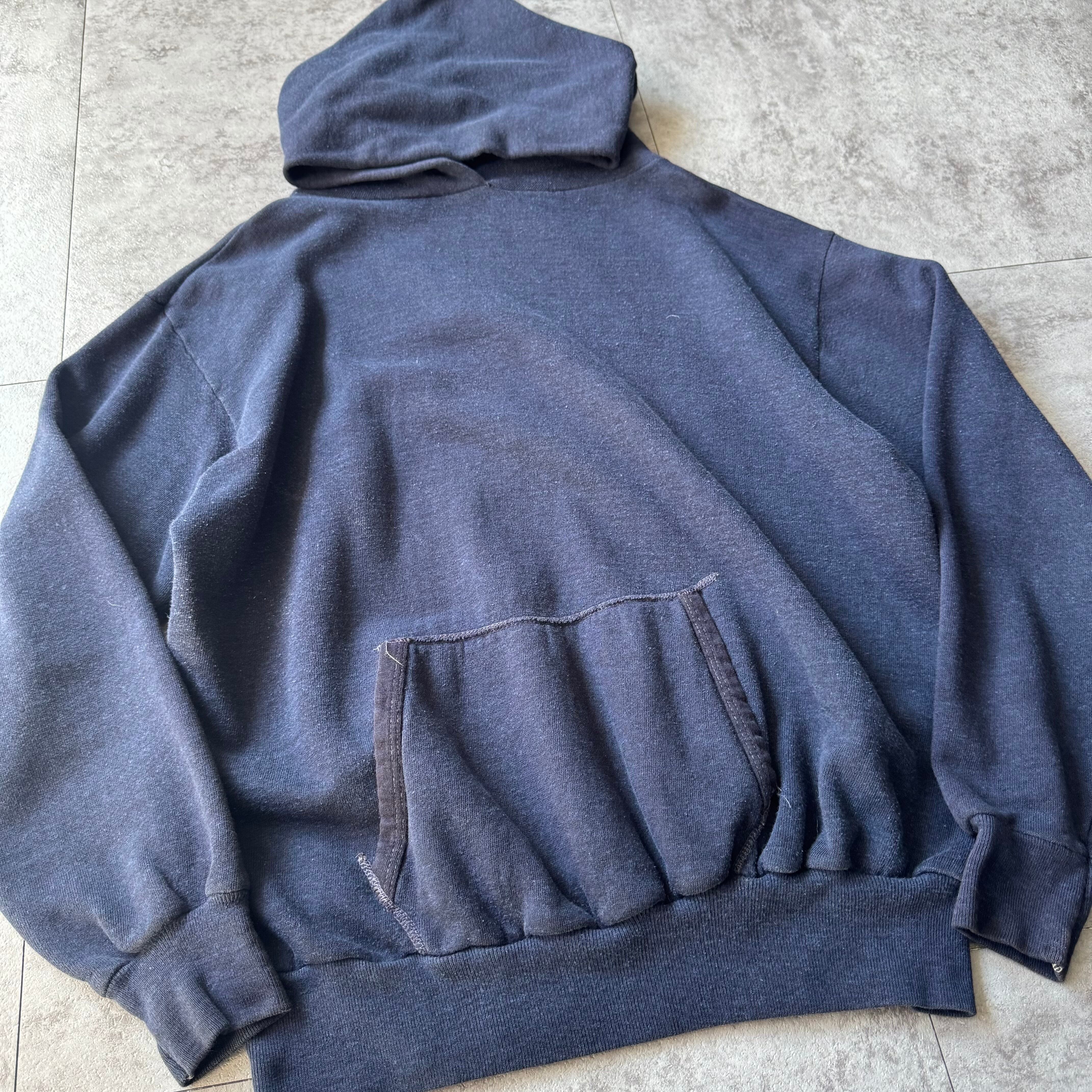 古いフーディー特有のカンガルーポケットの仕様、ムラのある