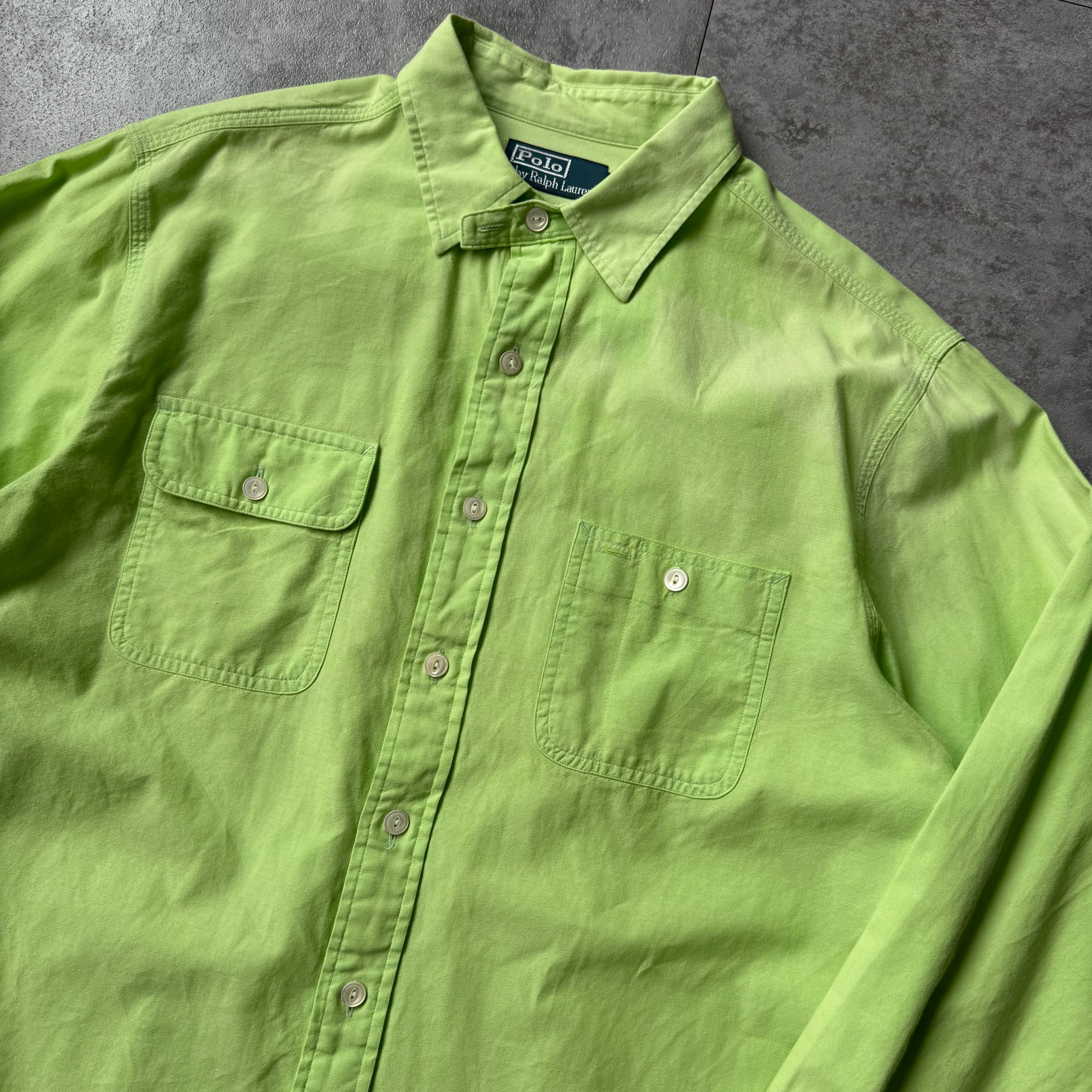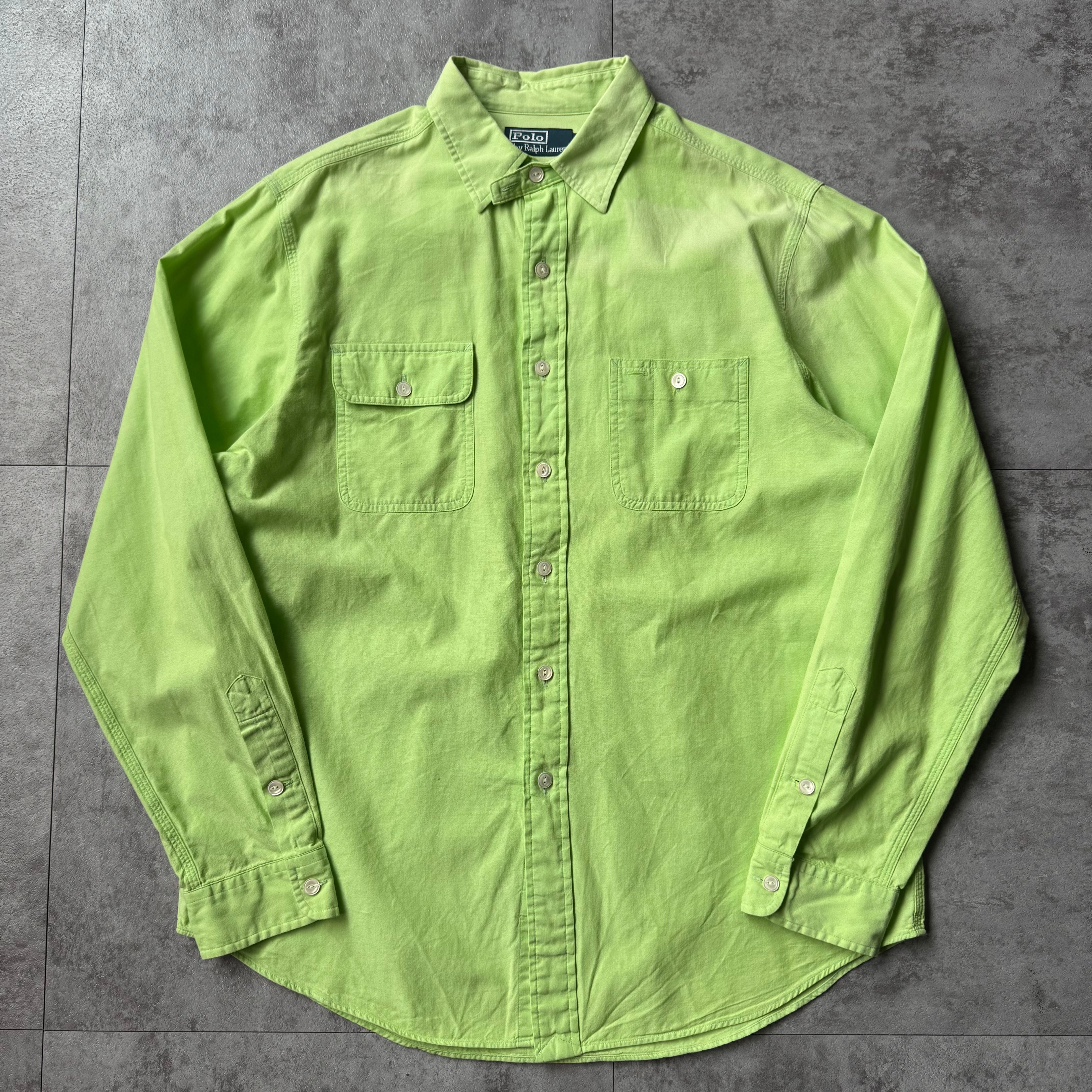 1990's "Polo by Ralph Lauren" Cotton Work Shirt / 90年代 "ポロバイラルフローレン" ワークシャツ チンスト ポニー無し 猫目ボタン