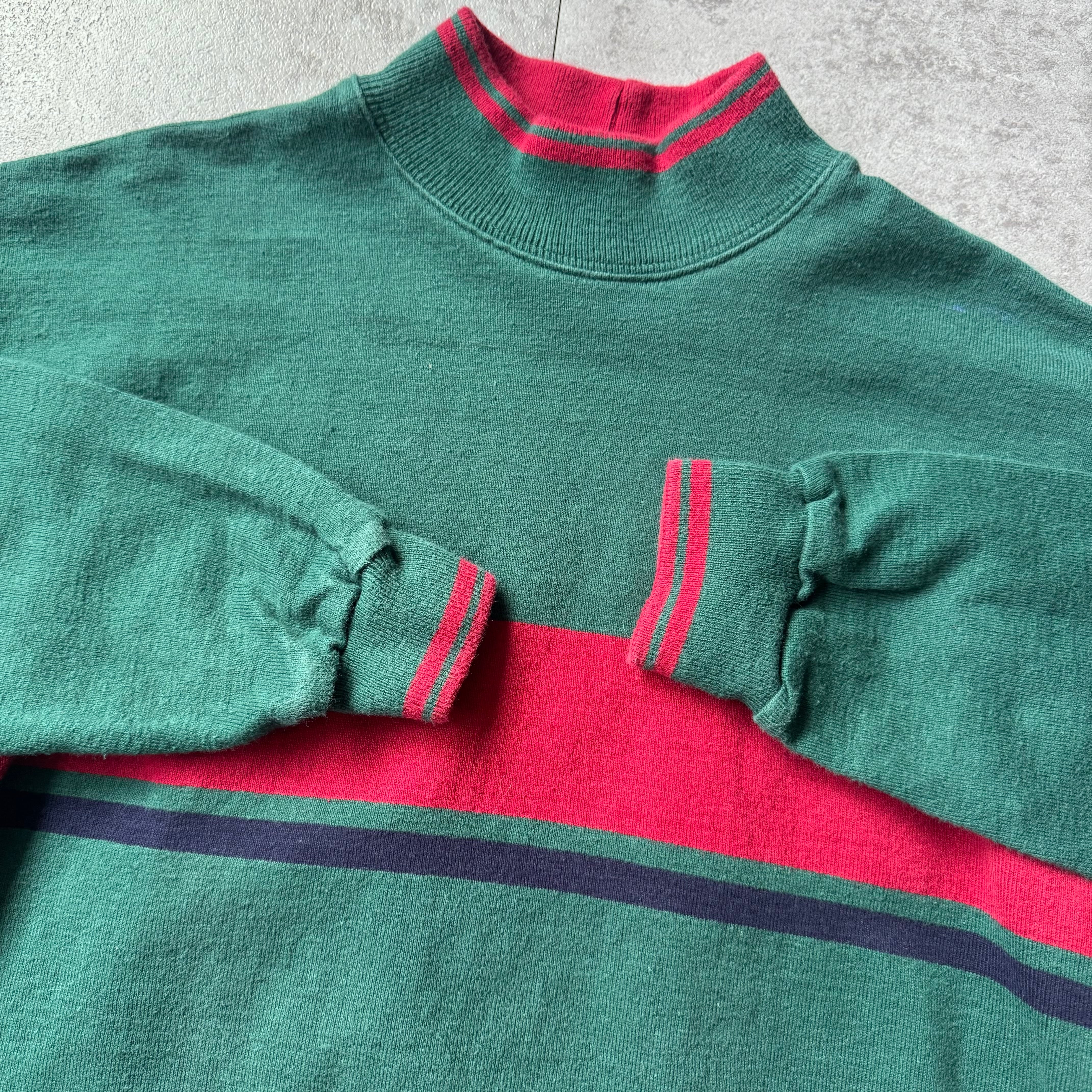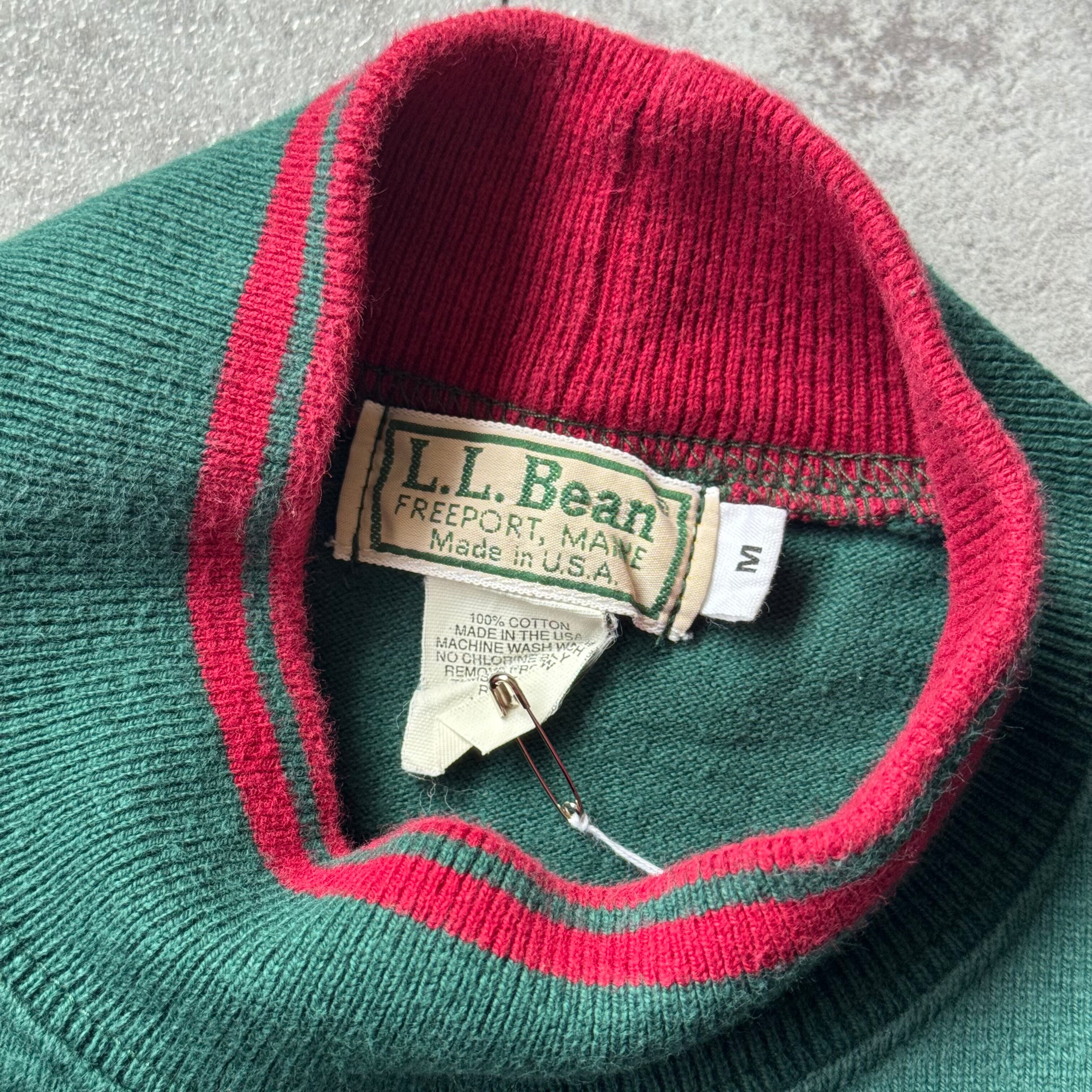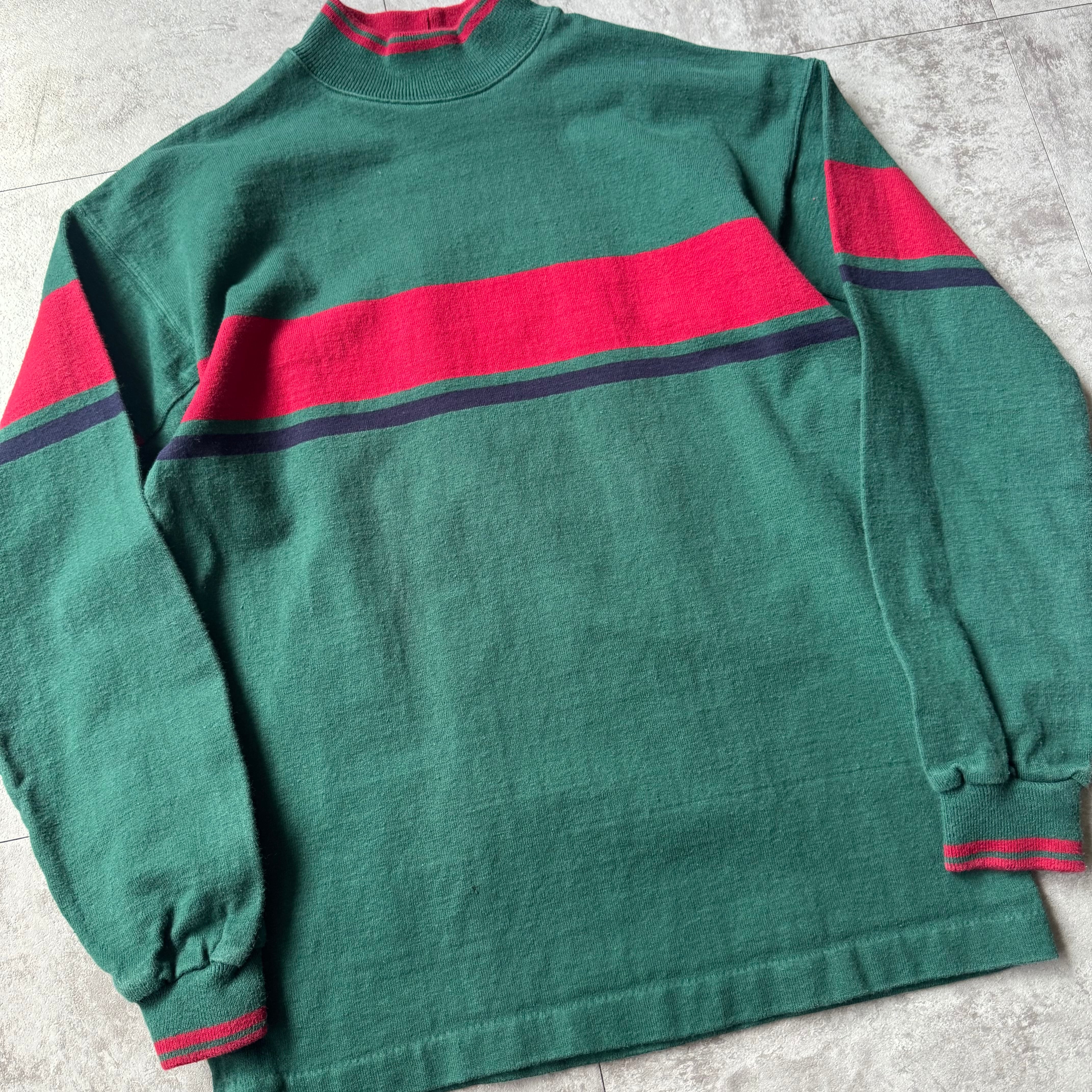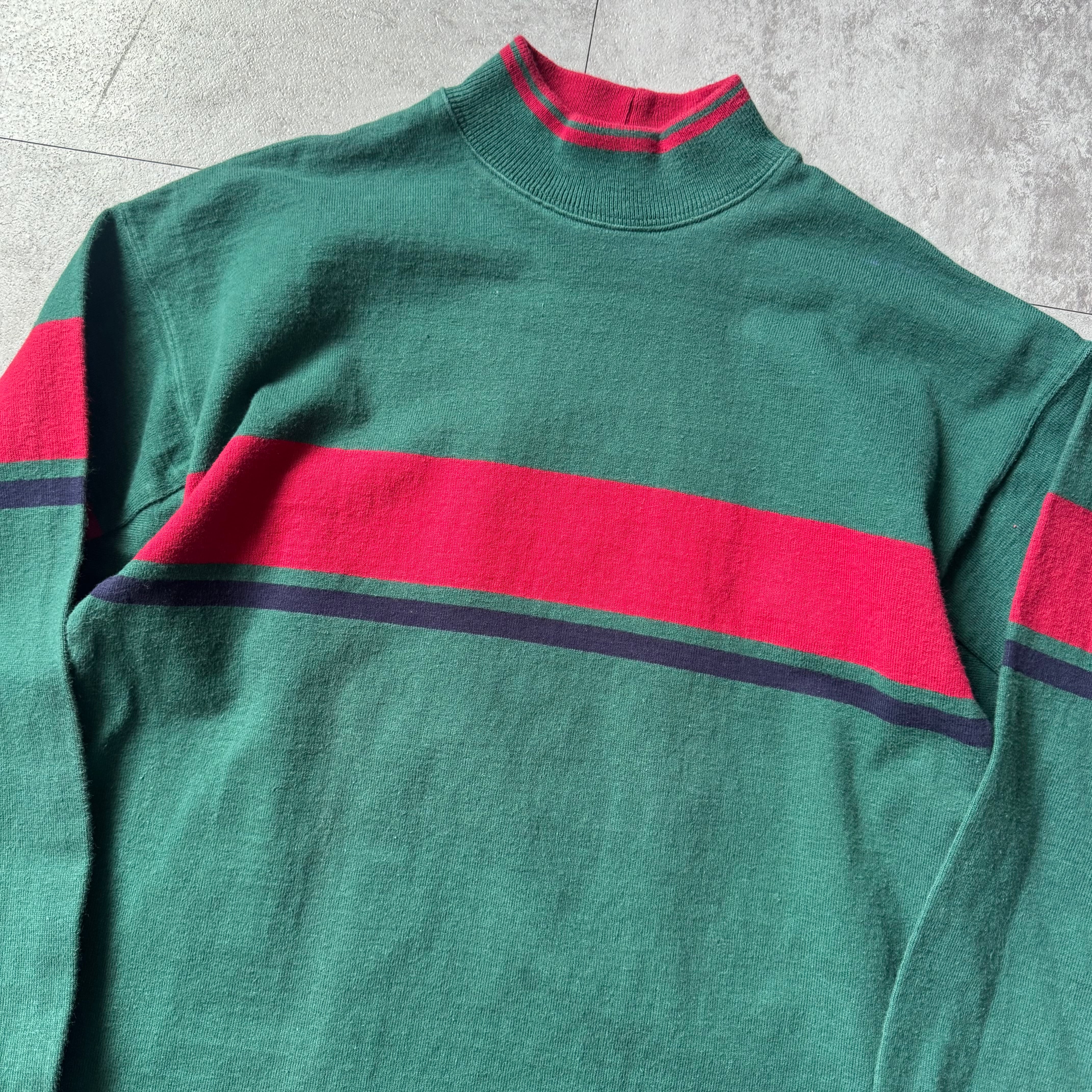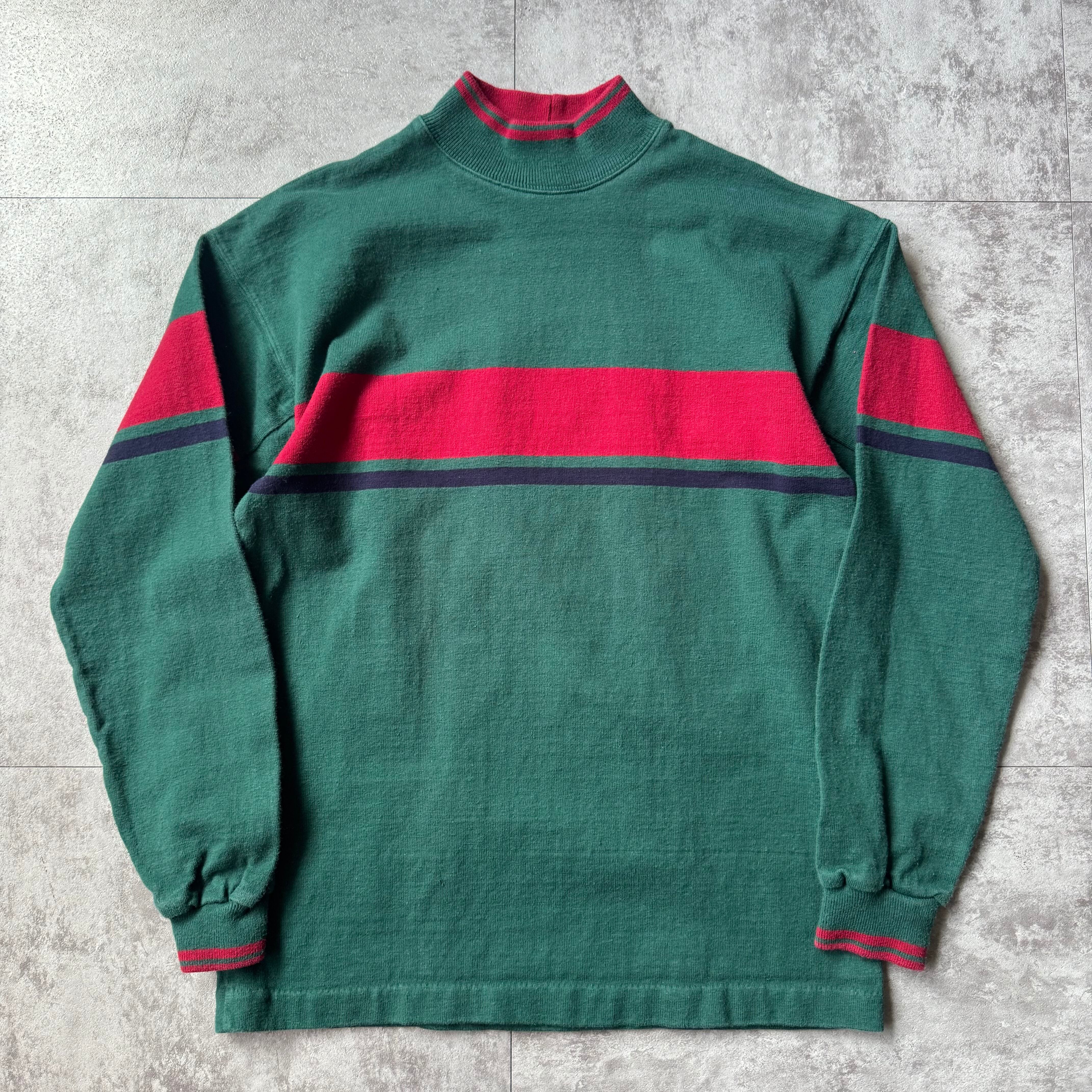 1980's "L.L.Bean" All Cotton High Neck made in USA / 80年代 "エルエルビーン" オールコットン ボーダー ハイネック アメリカ製 脇下ガゼット