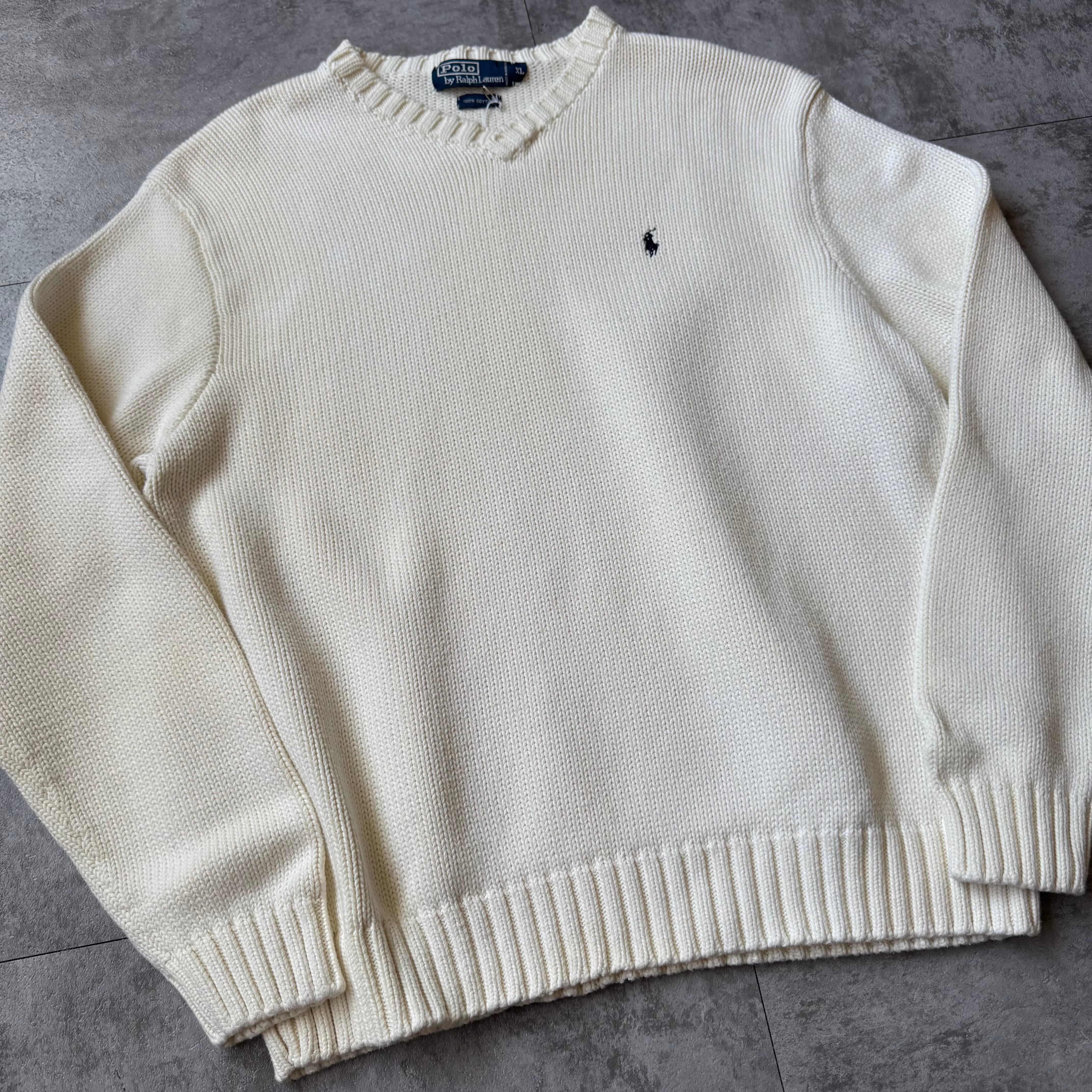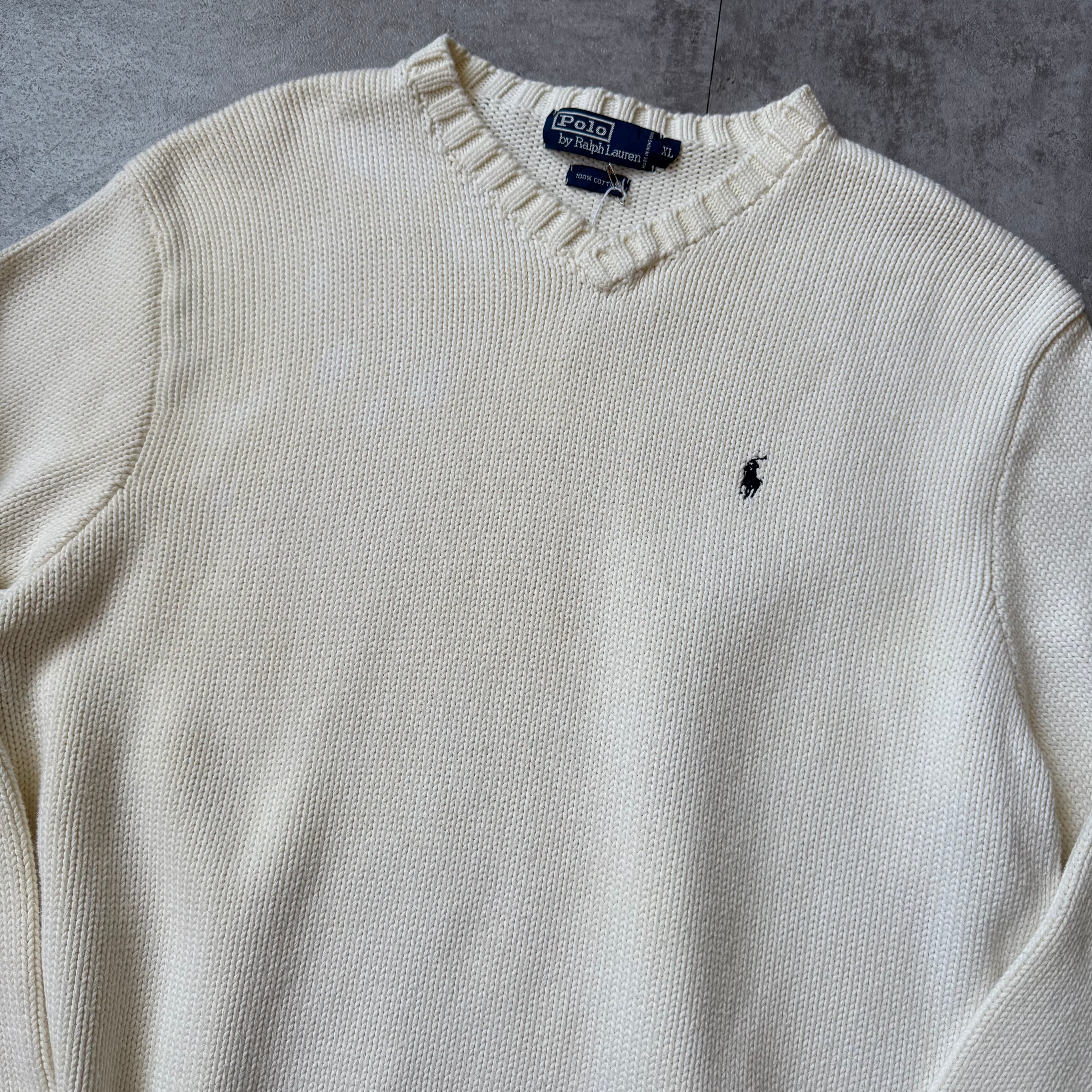 1990's "Polo by Ralph Lauren" Cotton Vneck Knit / 90年代 "ポロバイラルフローレン" Vネック コットンニット