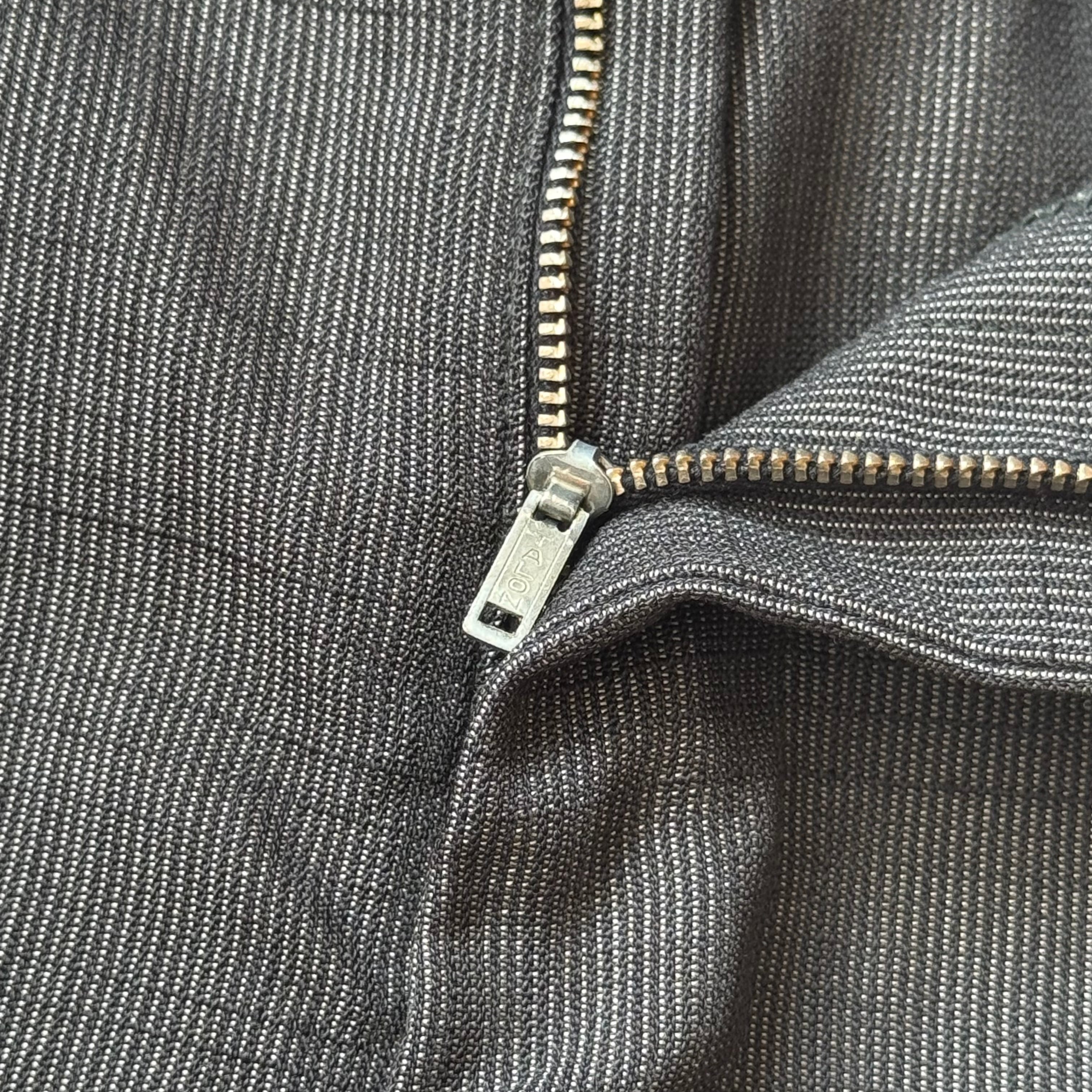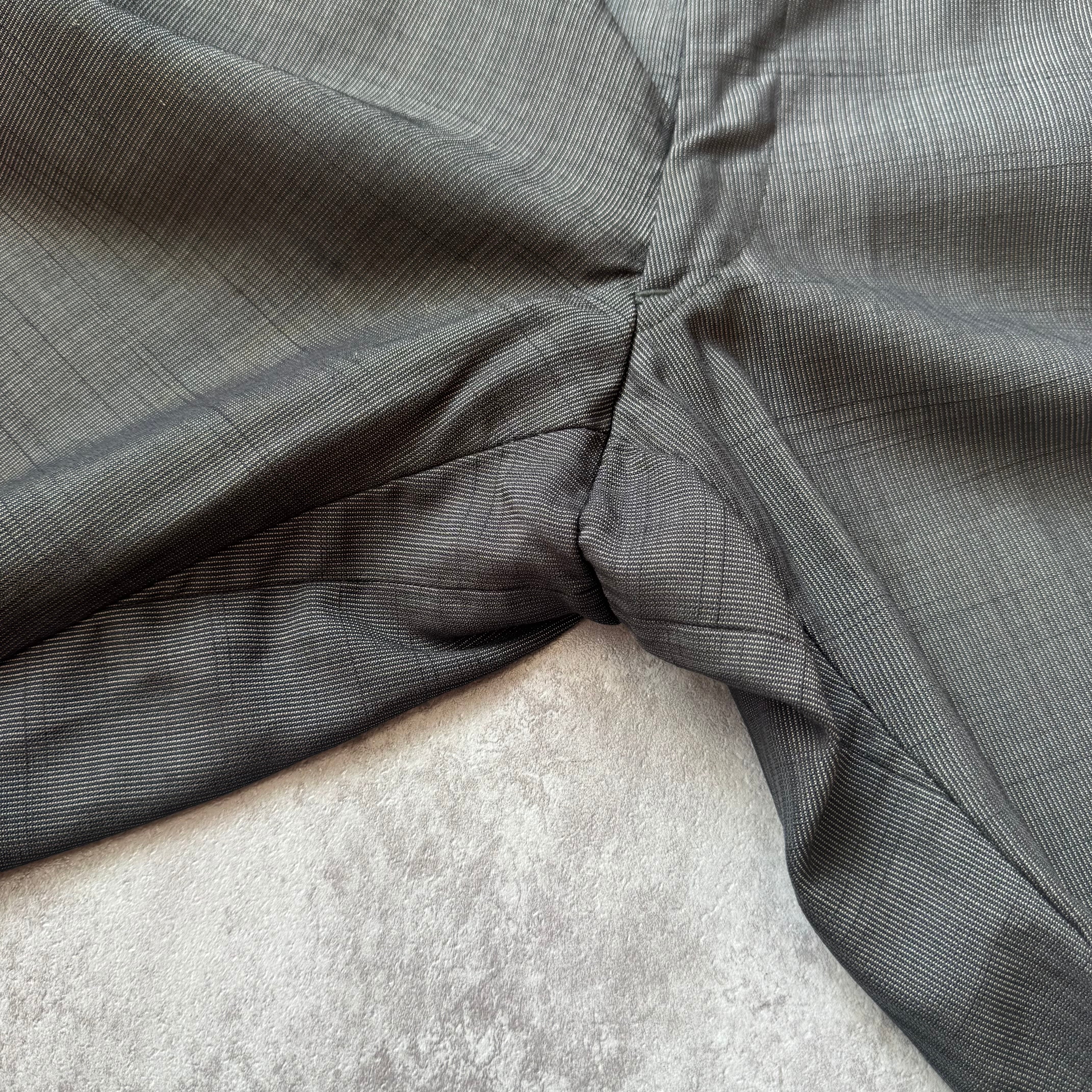 限りなくブラックに近いダークグレー系のカラーにウールベースですが起毛感の全く無いサラッとした混紡の一本