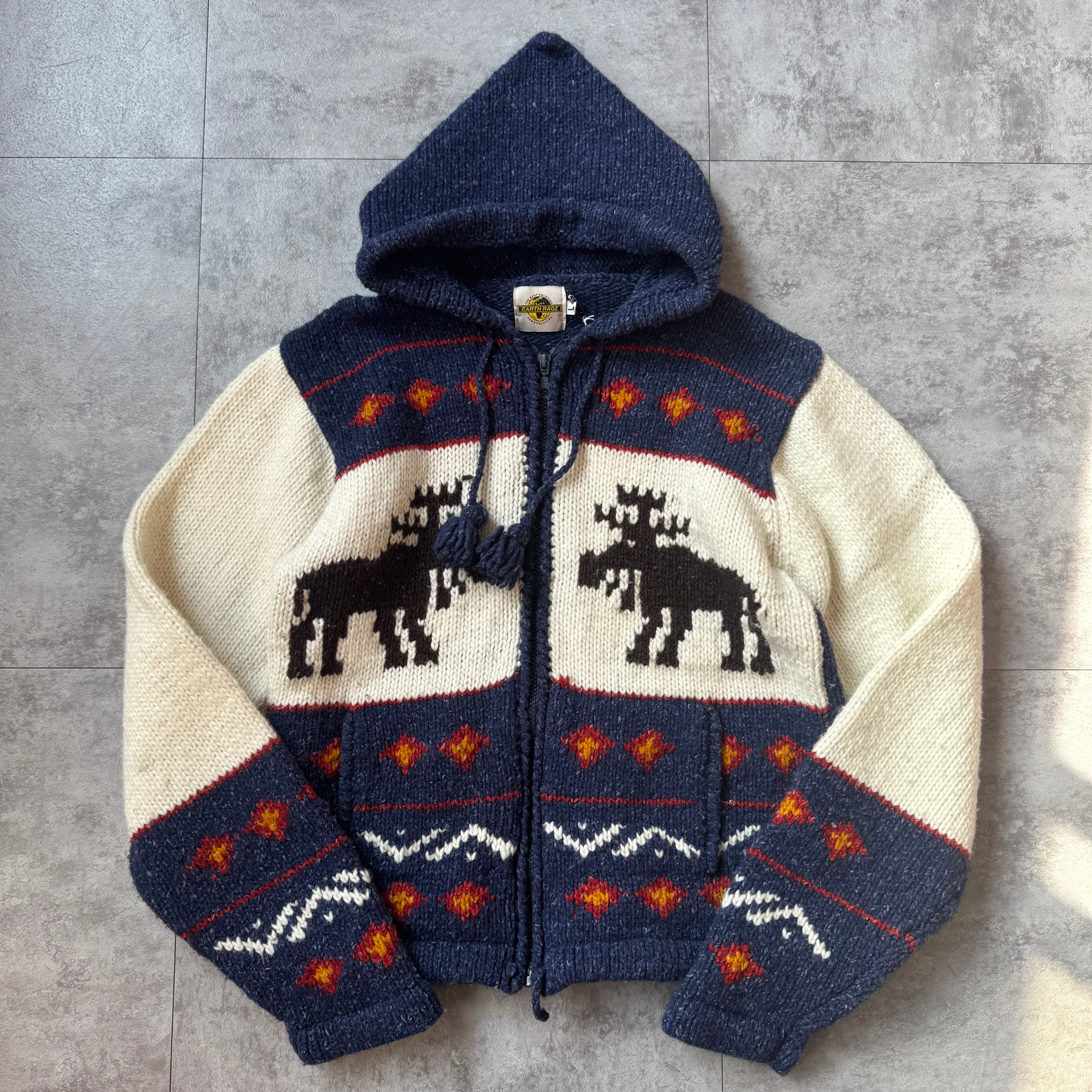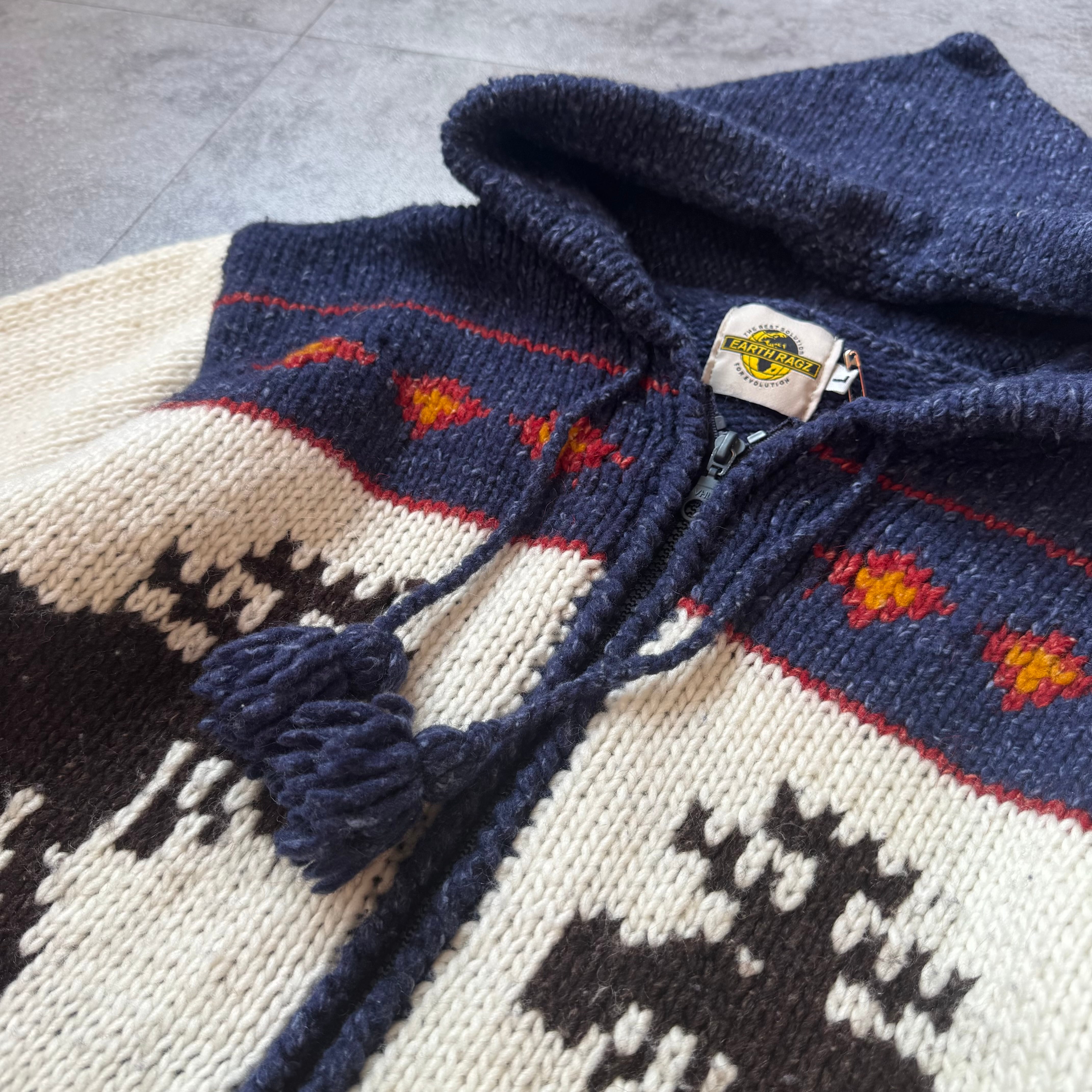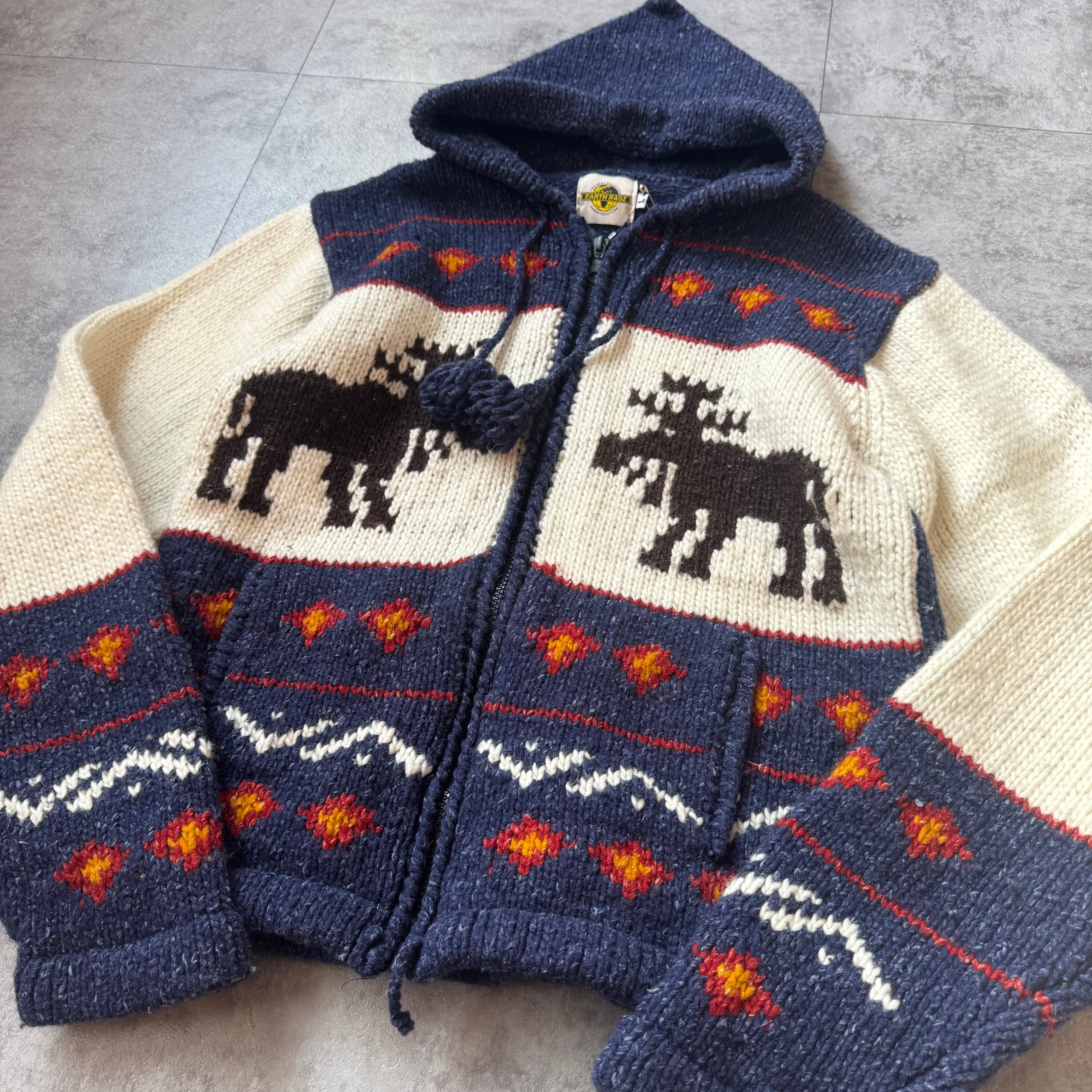 00's "Earth Ragz" Ecuador Knit Zip Parka / 2000年代 "アースラグズ" エクアドルニット ジップパーカー