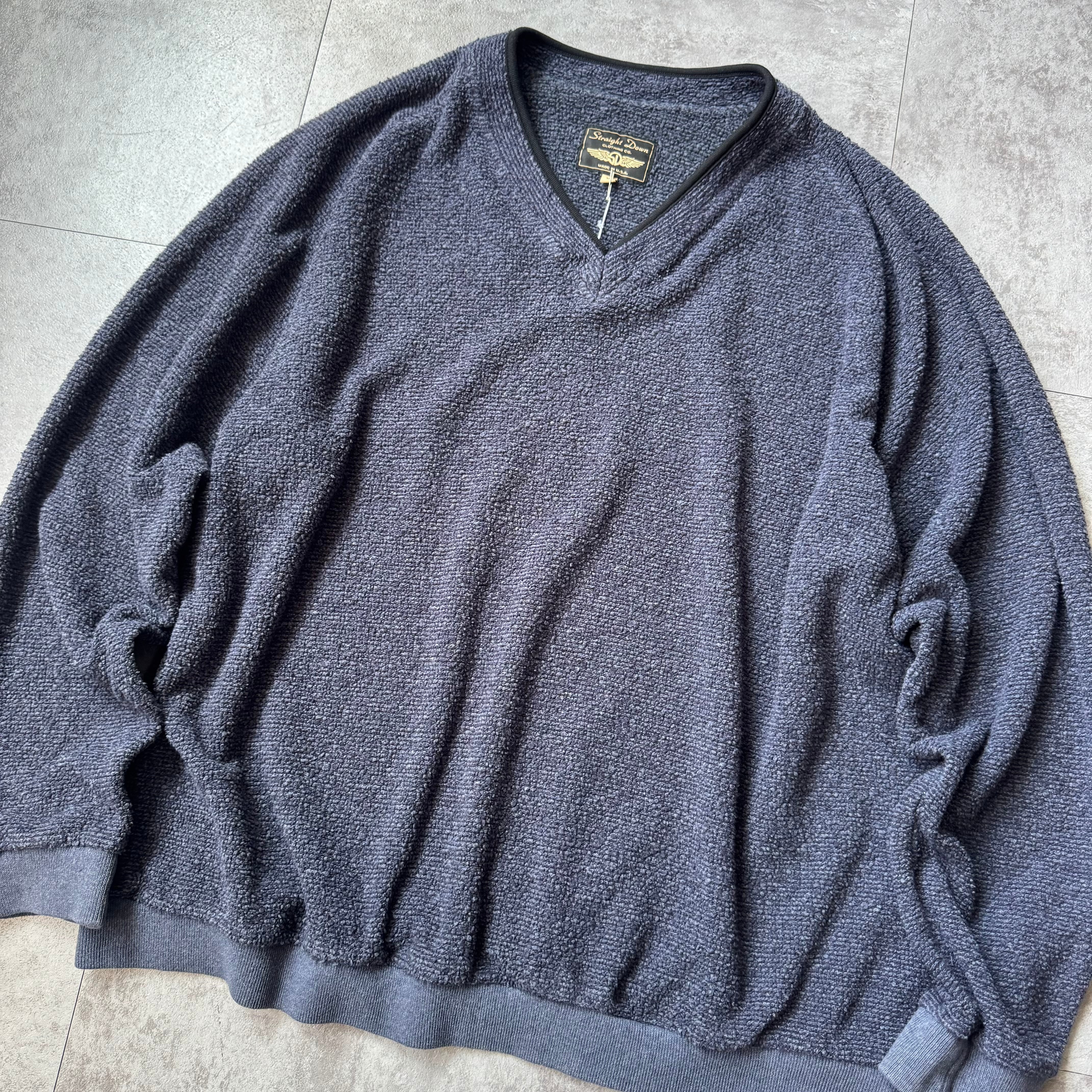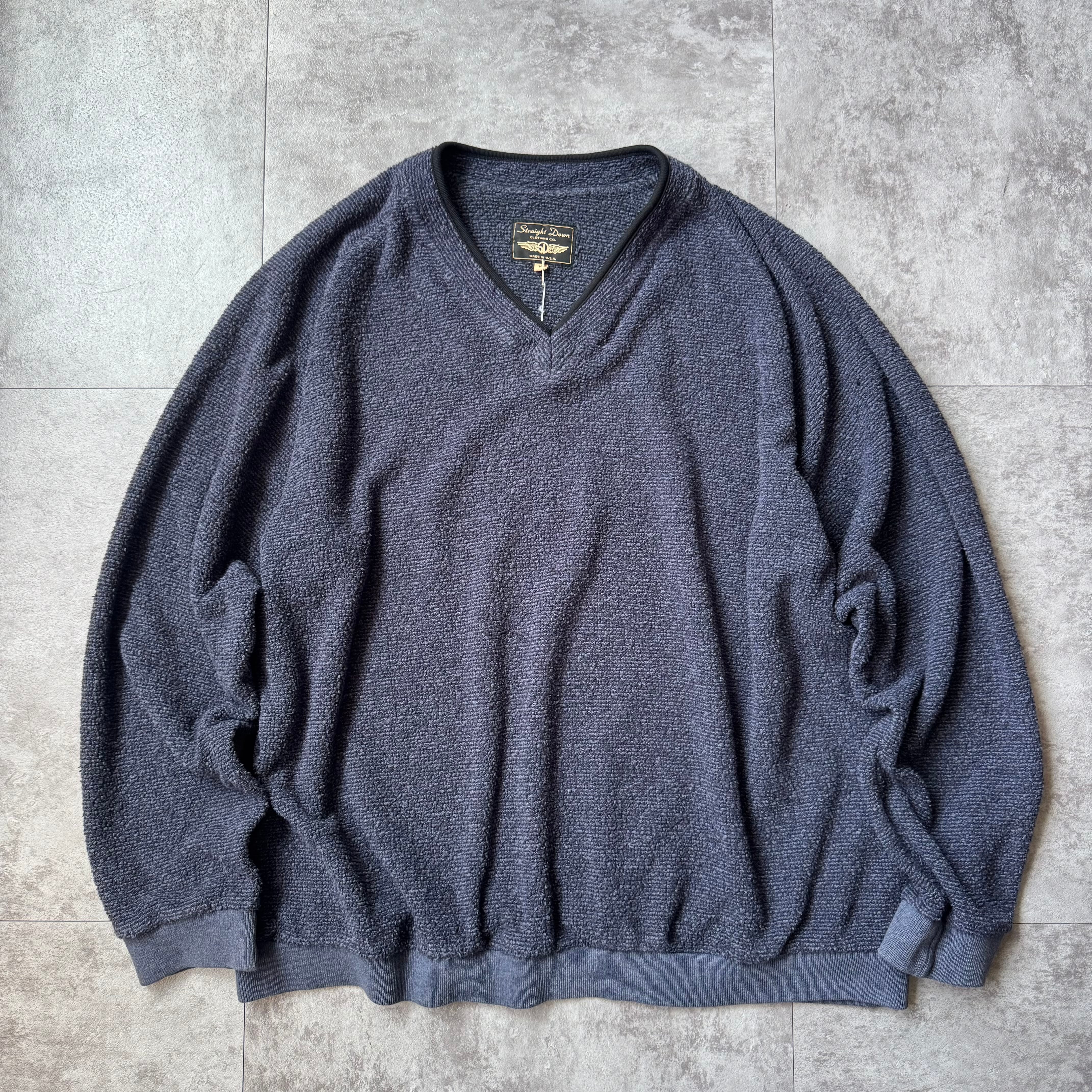 1990's "Straight Down" Toweling Raglan Vneck Sweat made in USA / 90年代 "ストレートダウン" タオル地 ラグラン Vネック スウェット アメリカ製