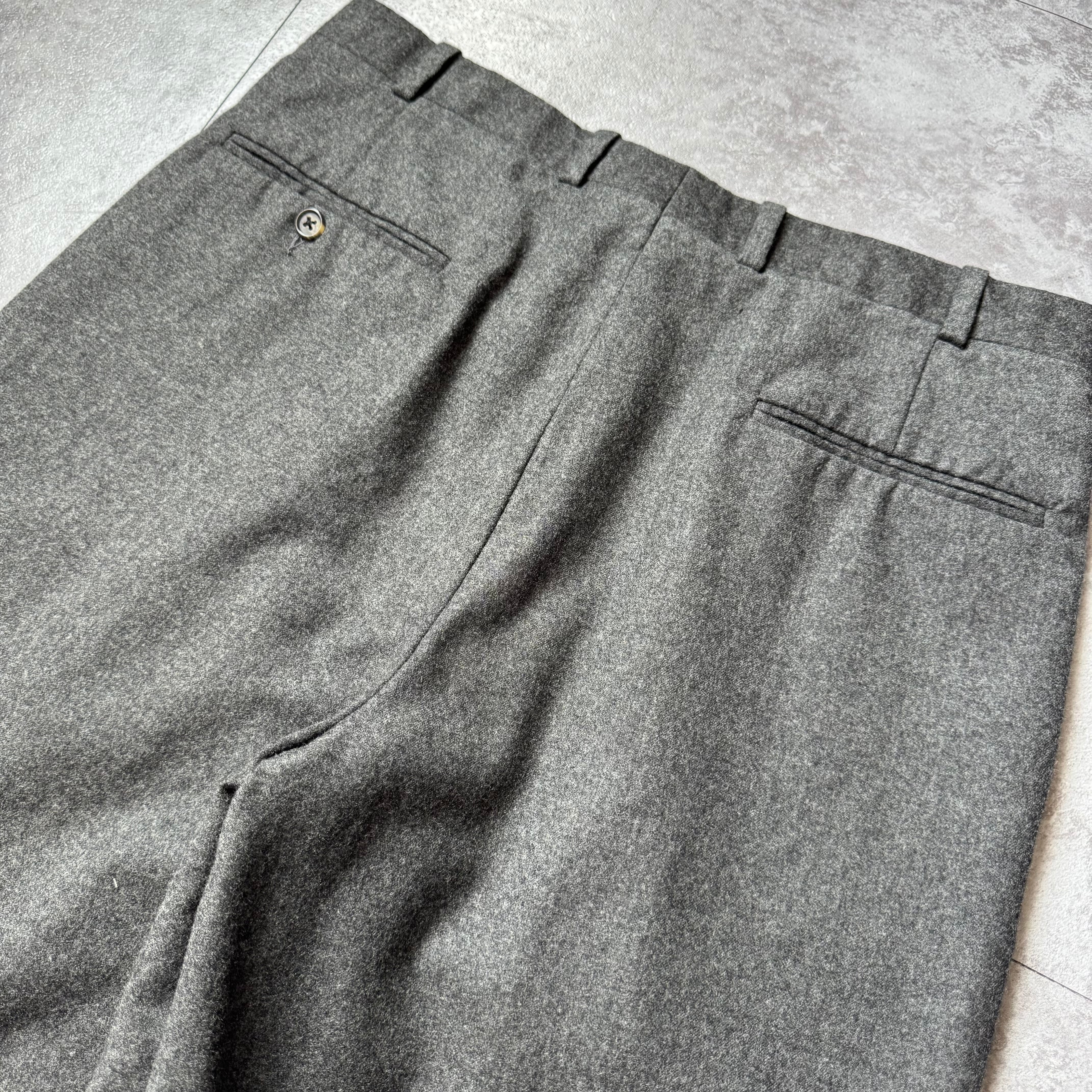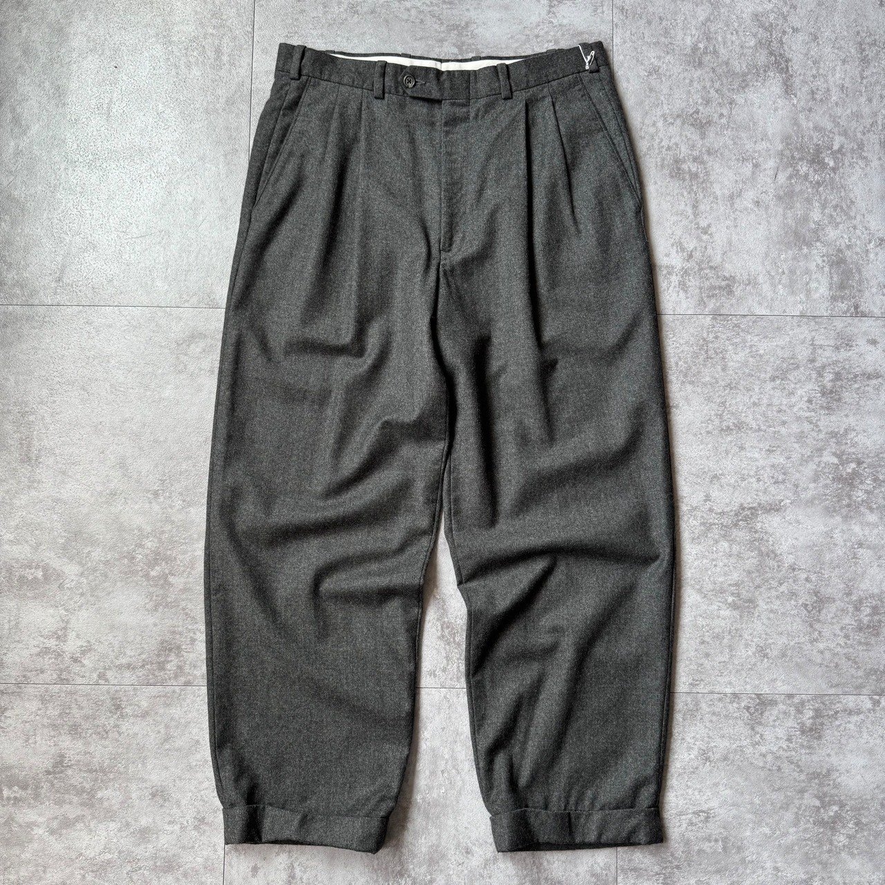 この年代のスラックスの中でもワイドなストレートシルエットかつ高級百貨店らしいハイクオリティな仕立てで定評のあるノードストロームから上品なチャコールカラーでの一本