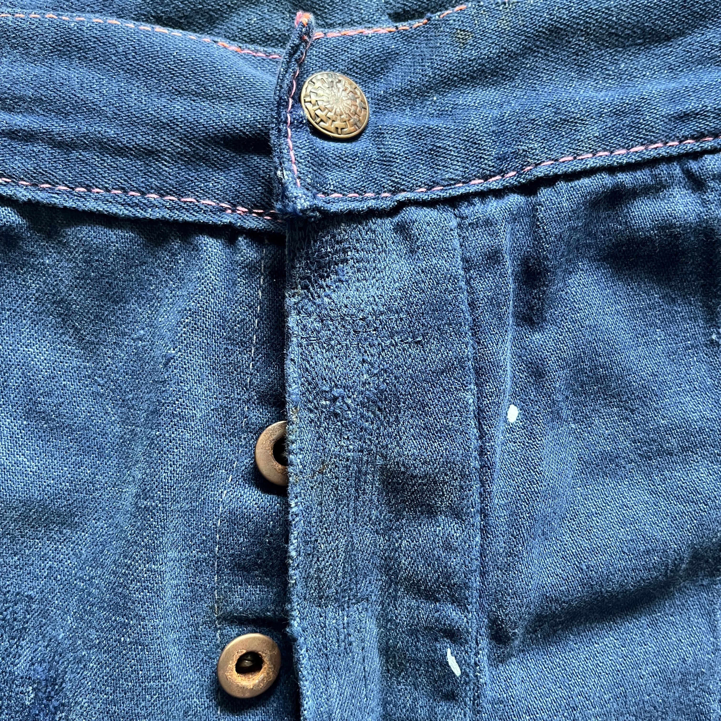 1940's〜 "unknown" painter denim / 1940's〜 ビンテージ ペインターパンツ ピンクステッチ ダブルステッチ ドーナツボタン ペンキ個体