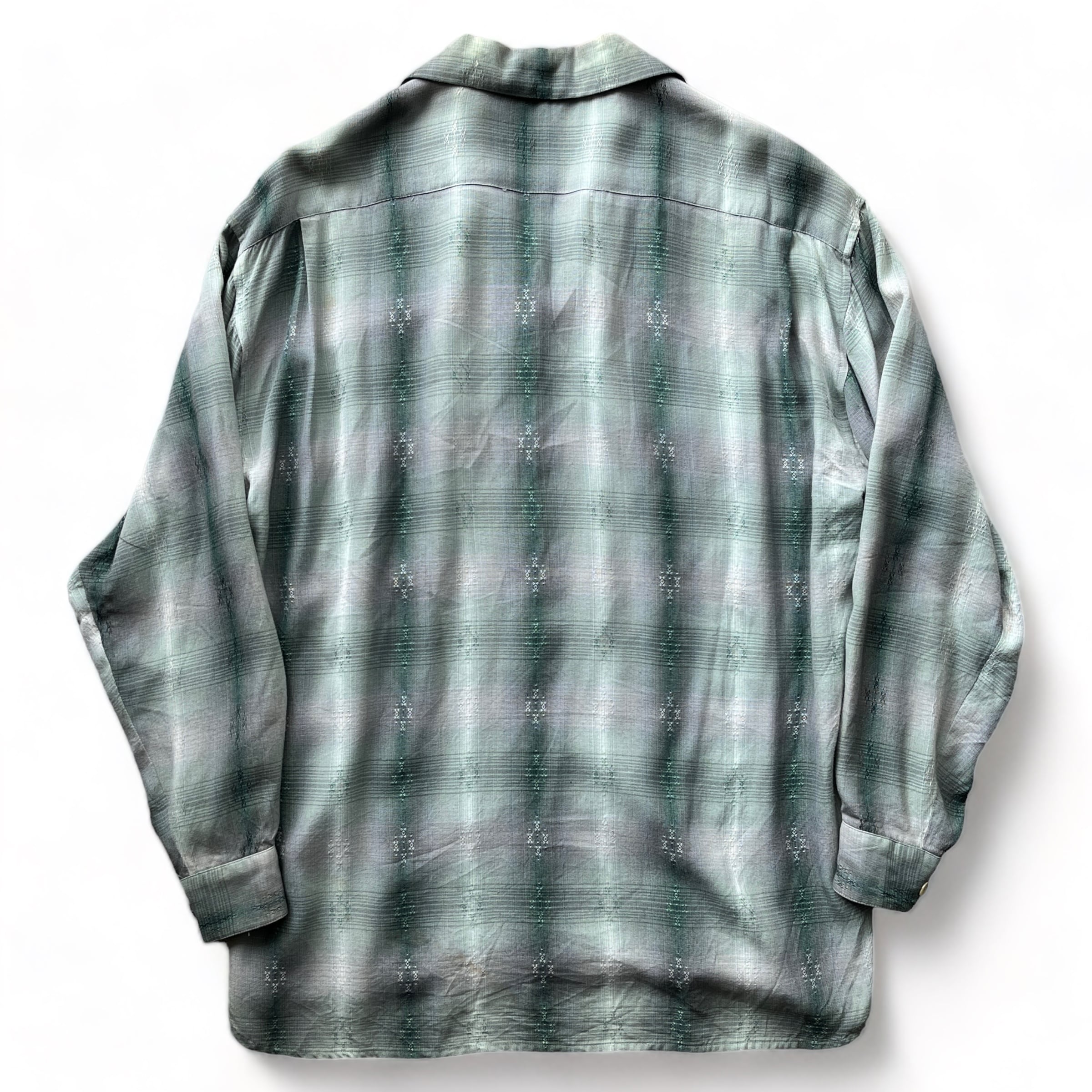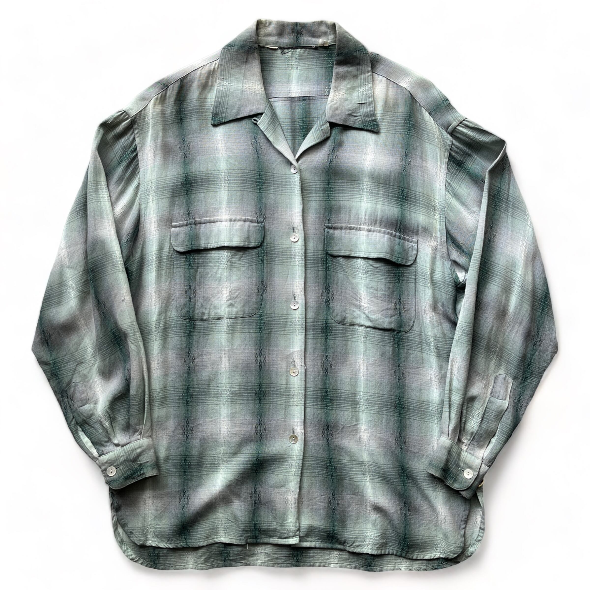 1960's vintage ombre rayon shirt / 60年代 ビンテージ オンブレシャドーチェック レーヨンシャツ ジェルボタン レディース合わせ